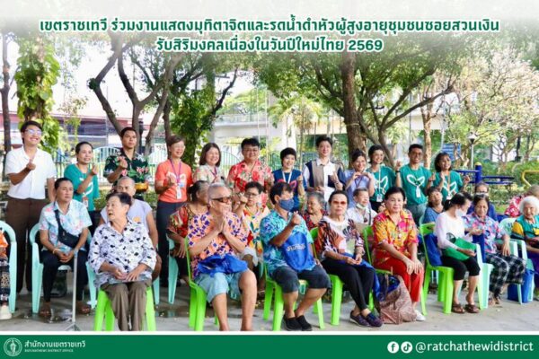 เขตราชเทวี ร่วมงานแสดงมุทิตาจิตและรดน้ำดำหัวผู้สูงอายุชุมชนซอยสวนเงิน รับสิริมงคลเนื่องในวันปีใหม่ไทย 2569 10 เมษายน 2026 อ่านต่อ »