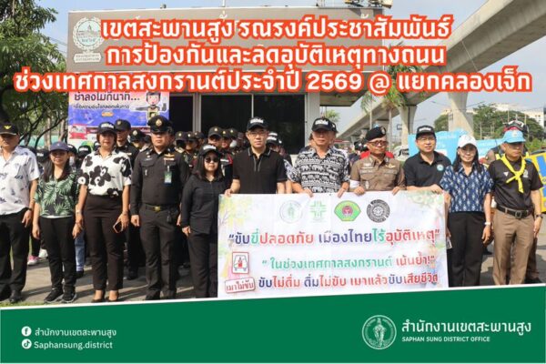 เขตสะพานสูง จัดกิจกรรมรณรงค์ประชาสัมพันธ์การป้องกันและลดอุบัติเหตุทางถนนในช่วงเทศกาลสงกรานต์ประจำปี 2569 9 เมษายน 2026 อ่านต่อ »