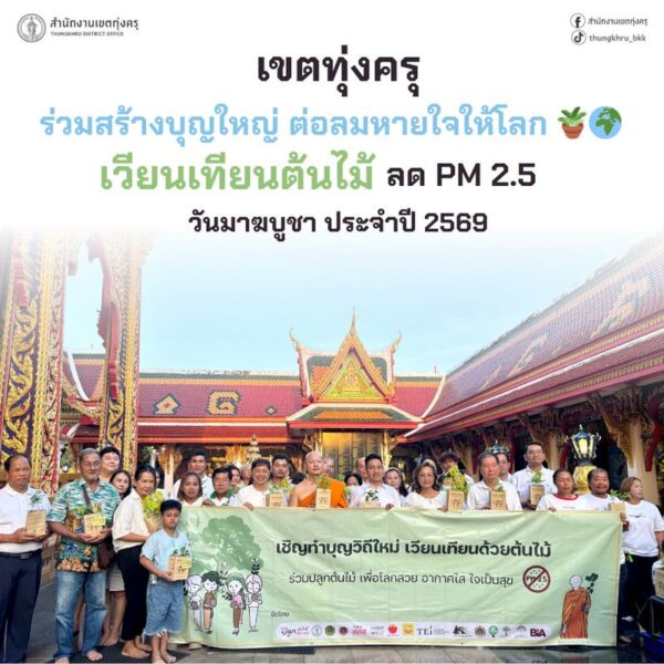 เขตมีนบุรี วัดคู่เมือง ทำบุญวิถีใหม่ ใส่ใจสิ่งแวดล้อม เวียนเทียนต้นไม้ ลดฝุ่นควันควบคู่กับการส่งเสริมพระพุทธศาสนา 3 มีนาคม 2026 อ่านต่อ »