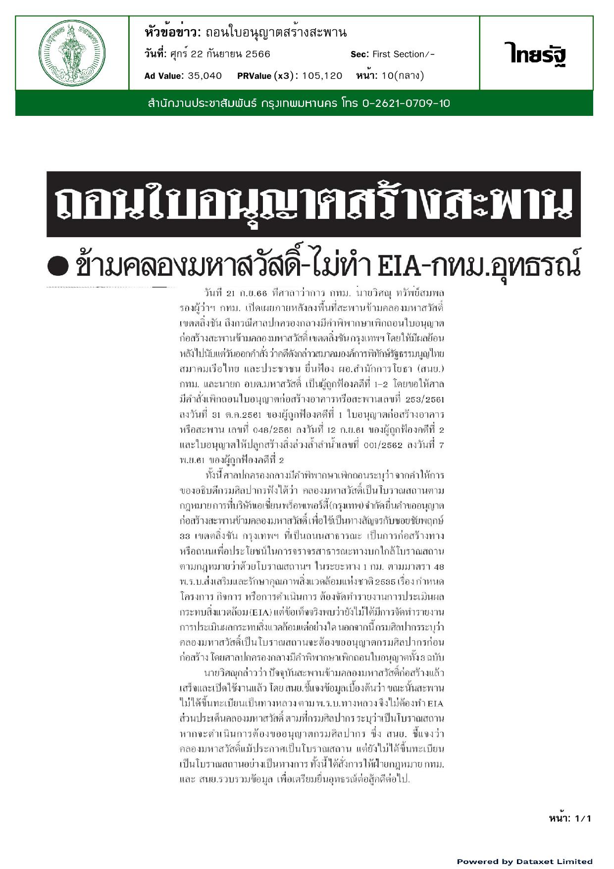 ข้ามคลองมหาสวัสดิ์-ไม่ทำ EIA-กทม.อุทธรณ์
