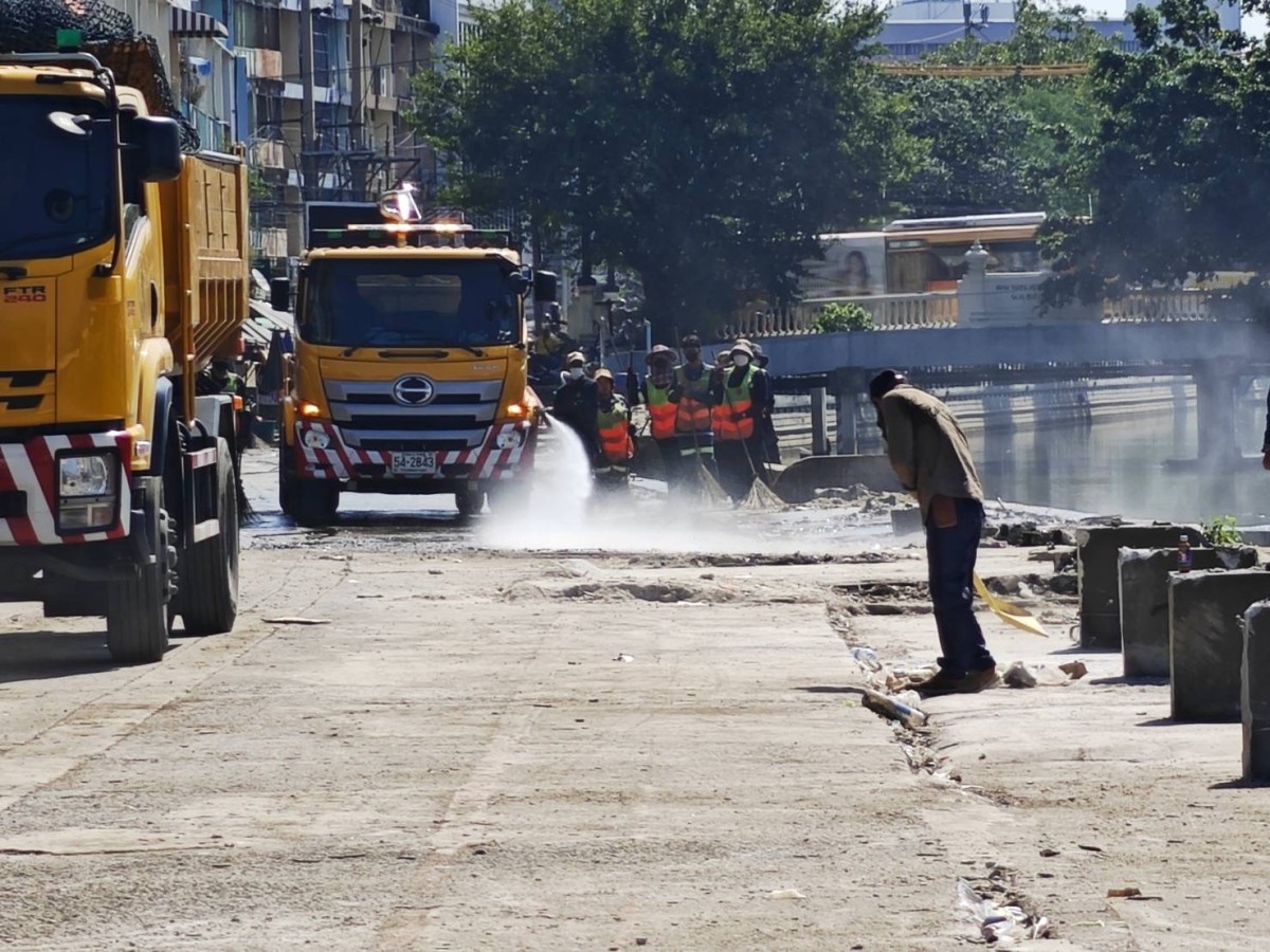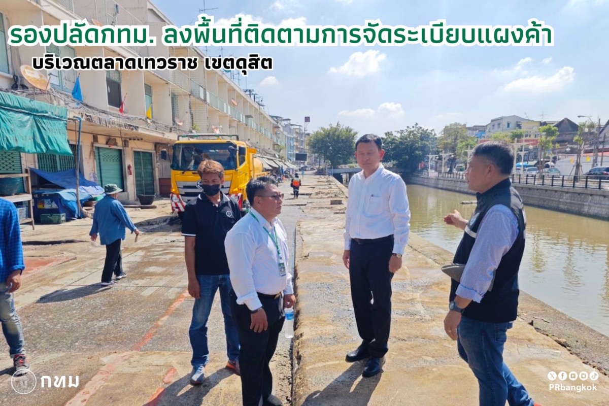 (24 พ.ย.66) นายณรงค์ เรืองศรี รองปลัดกรุงเทพมหานคร พร้อมด้วยนายมิพล ปุณวัชระพิศาล ผู้อำนวยการสำนักงานก่อสร้างและบูรณะ สำนักการโยธา และนายธงชัย เทพานนท์ ผู้อำนวยการตลาดชุมชน ลงพื้นที่ติดตามการจัดระเบียบแผงค้าริมน้ำบริเวณตลาดเทวราช เขตดุสิต โดยสำนักงานตลาดได้ย้ายแผงค้าเดิมบริเวณริมคลองผดุงกรุงเกษมไปยังพื้นที่ที่เหมาะสมที่จัดเตรียมไว้และได้รับความร่วมมือจากสำนักการโยธา สำนักสิ่งแวดล้อม และสำนักงานเขตพระนคร ช่วยดำเนินการรื้อย้ายและทำความสะอาดพื้นที่