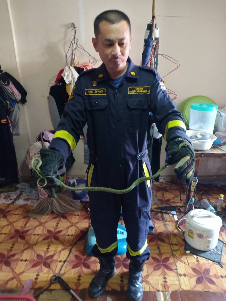 8. เจ้าหน้าที่ชุดปฏิบัติการที่ 1 จำนวน 2 นาย ช่วยเหลือประชาชนจับงูเขียวพระอินทร์ ความยาวประมาณ 50 เซนติเมตร สถานที่เกิดเหตุ บ้านเลขที่ 29 ซ.ประชาอุทิศ 71 แขวงทุ่งครุ เขตทุ่งครุ กทม.