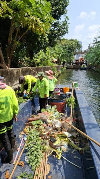 หน่วยงานรักษาความสะอาดคลอง(@เขตมีนบุรี)พื้นที่บำรุงรักษา 1กลุ่มงานบำรุงรักษาคลอง 3 กองระบบคลองจัดเจ้าหน้าที่เข้าดำเนินการจัดเก็บขยะและวัชพืชคลองลำบึงใหญ่ช่วงบริเวณร.ร. สุเหร่าทรายกองดินพื้นที่เขตมีนบุรี