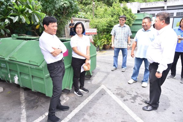เยี่ยมชมต้นแบบการคัดแยกขยะ ตลาดบุญเรือง (วัดตะกล่ำ) ถนนเฉลิมพระเกียรติ ร.9 ซอย 24 พื้นที่ 6 ไร่ 2 งาน มีผู้ค้า 250 แผง ผู้มาใช้บริการ 1,500 คน/วัน วิธีการคัดแยกขยะ โดยจำแนกตามประเภทของขยะ ดังนี้ 1.ขยะอินทรีย์ ผู้ค้าจะนำขยะเศษอาหาร มารวมที่จุดทิ้งขยะเฉพาะเศษอาหาร บริเวณจุดพักขยะรวม โดยมีเกษตรกรมารับไปเป็นอาหารเลี้ยงปลา ส่วนเศษผักและก้านดอกไม้ จะนำใส่ถังที่เขตฯ จัดวางไว้ เมื่อขยะเต็มถังเจ้าหน้าที่ของตลาดจะแจ้งให้เขตฯ จัดเก็บ เพื่อนำไปทำปุ๋ยที่ศูนย์กำจัดขยะมูลฝอยอ่อนนุช 2.ขยะรีไซเคิล ผู้ค้าจะนำขยะรีไซเคิล มาทิ้งที่จุดทิ้งขยะรีไซเคิล เจ้าหน้าที่ของตลาดจะคัดแยกขยะแต่ละประเภท เพื่อนำไปจำหน่าย 3.ขยะทั่วไป ผู้ค้าจะนำขยะทั่วไปทิ้งในถังคอนเทนเนอร์ของเขตฯ 4.ขยะอันตราย เจ้าหน้าที่ของตลาดจะรวบรวมไว้บริเวณจุดพักขยะอันตราย แจ้งให้เขตฯ จัดเก็บ สำหรับปริมาณขยะก่อนคัดแยกและหลังคัดแยก ดังนี้ ขยะทั่วไปก่อนคัดแยก 13,700 กิโลกรัม/เดือน หลังคัดแยก 6,000 กิโลกรัม/เดือน ขยะรีไซเคิลหลังคัดแยก 600 กิโลกรัม/เดือน ขยะอินทรีย์หลังคัดแยก 7,100 กิโลกรัม/เดือน ขยะอันตรายก่อนคัดแยก 50 กิโลกรัม/เดือน ทั้งนี้ รองผู้ว่าราชการกรุงเทพมหานคร ได้ให้คำแนะนำในการคัดแยกประเภทต่าง ๆ เพื่อให้การจัดเก็บขยะมีประสิทธิภาพมากยิ่งขึ้น โดยเฉพาะขยะประเภทถุงพลาสติกที่ยังปะปนอยู่กับขยะทั่วไป ซึ่งปริมาณขยะที่คัดแยกจะมีผลต่ออัตราค่าธรรมเนียมในการจัดการสิ่งปฏิกูลหรือมูลฝอยฉบับใหม่