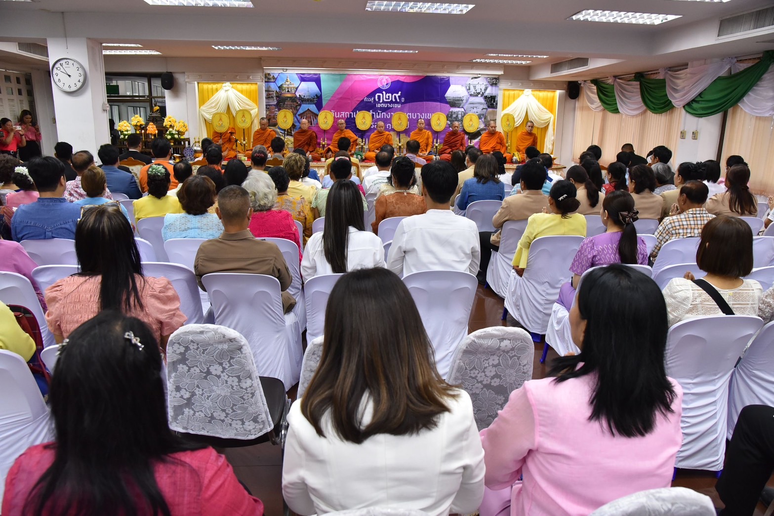 โดยในเวลา 07.19 น. พิธีสักการะบูชาสิ่งศักดิ์สิทธิภายในสำนักงานเขตบางเขน ประกอบด้วย พระพุทธรูปประจำสำนักงานเขตบางเขน “พระธรรมิศราธิบดี ศากยมุนีศรีบางเขน” ศาลพระพรหมประจำเขตบางเขน ศาลพระภูมิเจ้าที่ ศาลตา-ยาย และพระอินทร์ทรงช้างเอราวัณ ภายในบริเวณสำนักงานเขตบางเขน จากนั้น เวลา 09.00 น. พิธีสวดเจริญพระพุทธมนต์ ณ ห้องประชุมชั้น 4 อาคารนรกิจบริหาร สำนักงานเขตบางเขน