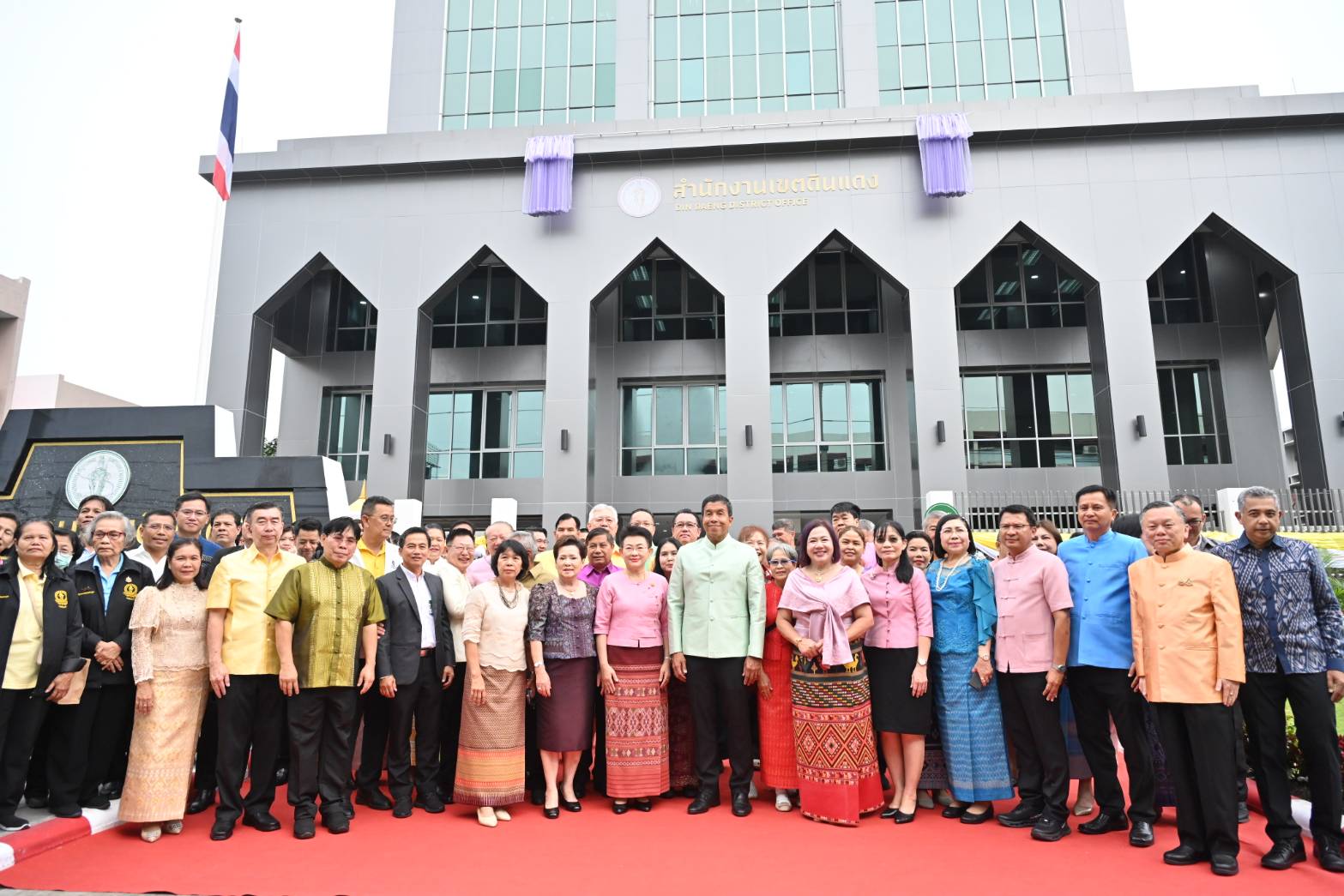 อาคารสำนักงานเขตดินแดงแห่งใหม่บนถนนประชาสงเคราะห์ โดดเด่นด้วยสถาปัตยกรรมที่ถอดแบบมาจากอาคารธานีนพรัตน์ ศาลาว่าการกรุงเทพมหานคร 2 ดินแดง ซึ่งสะท้อนถึงเอกลักษณ์ของกรุงเทพมหานคร อาคารนี้สร้างขึ้นเพื่อยกระดับการให้บริการประชาชนและปรับปรุงสภาพแวดล้อมการทำงานของบุคลากร โดยสำนักการโยธาเป็นผู้ออกแบบและดูแลการก่อสร้าง รวมถึงติดตั้งระบบไฟฟ้าและปรับอากาศที่ทันสมัย อาคารแห่งนี้มีความแข็งแรงทนทานต่อเหตุการณ์แผ่นดินไหว และมีระบบป้องกันอัคคีภัยตามมาตรฐาน นอกจากนี้ สำนักดิจิทัลกรุงเทพมหานคร ยังได้ดำเนินการติดตั้งระบบเครือข่ายอินเทอร์เน็ตความเร็วสูง เพื่อรองรับเทคโนโลยี 5G และอำนวยความสะดวกในการทำงานของบุคลากร รวมถึงการเข้าถึงข้อมูลและบริการสำหรับประชาชน ที่สำคัญอาคารแห่งนี้ยังเน้นการออกแบบเพื่อคนพิการ โดยจัดให้มีทางลาดและลิฟต์สำหรับผู้พิการ เพื่อให้ทุกคน โดยเฉพาะผู้สูงอายุ ผู้พิการ และผู้ที่มีข้อจำกัด สามารถเข้าถึงและใช้งานได้อย่างสะดวก ปลอดภัย และเป็นอิสระ