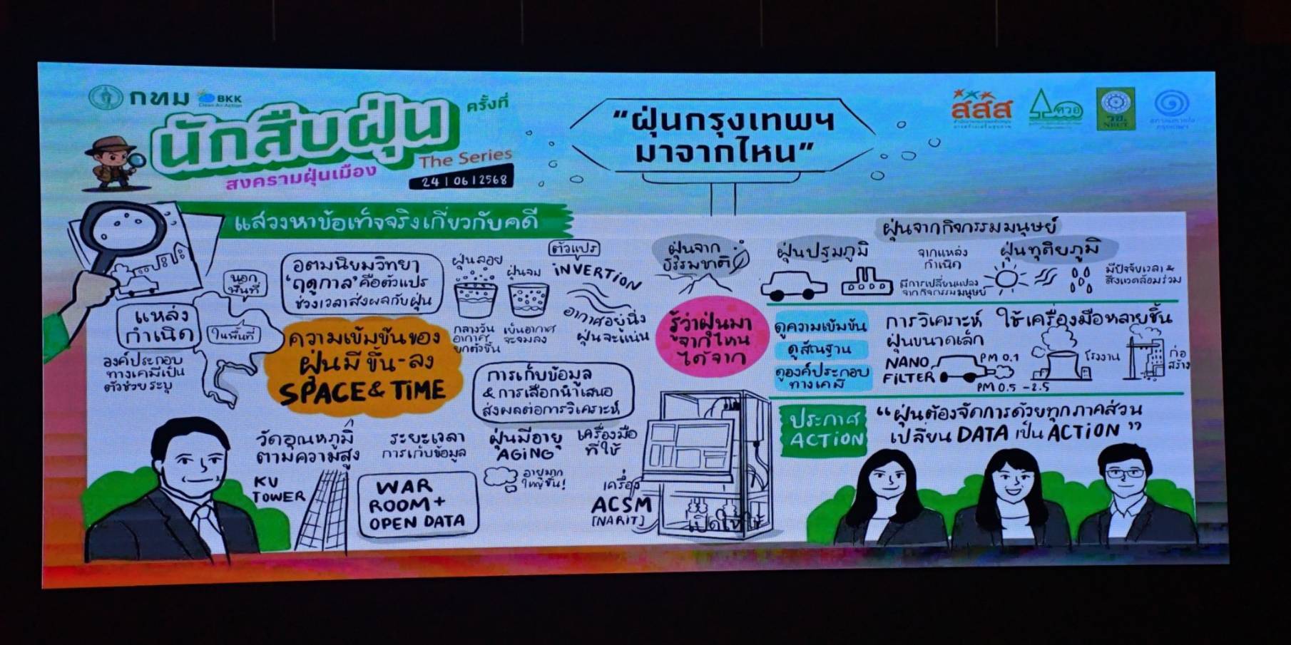 กรุงเทพมหานคร ร่วมกับภาคีเครือข่าย จัดกิจกรรม “นักสืบฝุ่น The Series” ภายใต้แผนปฏิบัติการป้องกันและแก้ไขปัญหาฝุ่นละออง PM2.5 ในพื้นที่กรุงเทพมหานคร เพื่อประสานความร่วมมือกับสถาบันการศึกษา หรือหน่วยงานที่เกี่ยวข้องทั้งในและต่างประเทศ ในการศึกษาต้นตอของฝุ่นในพื้นที่กรุงเทพมหานคร รวมถึงการแลกเปลี่ยนองค์ความรู้ นวัตกรรม หรือเทคโนโลยีที่เกี่ยวข้องกับมลพิษทางอากาศ สำหรับใช้ประกอบการพิจารณา กำหนดมาตรการทั้งในระยะสั้นและระยะยาว เพื่อป้องกันและบรรเทาผลกระทบ ต่อสุขภาพอนามัยของประชาชน