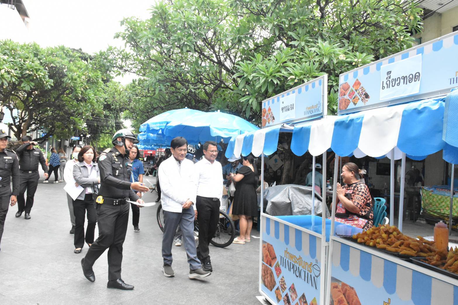 ติดตามการจัดระเบียบพื้นที่ทำการค้า บริเวณท่าพระจันทร์ (บนลานท่าพระจันทร์) ผู้ค้า 22 ราย ปัจจุบัน เขตฯ มีพื้นที่ทำการค้า จำนวน 24 จุด รวมผู้ค้าทั้งสิ้น 1,919 ราย ดังนี้ 1.ซอยแพร่งนรา ผู้ค้า 16 ราย 2.ถนนอัษฎางค์ ผู้ค้า 43 ราย 3.ถนนสามเสน ผู้ค้า 13 ราย 4.ถนนไกรสีห์ ผู้ค้า 224 ราย 5.ถนนตานี ผู้ค้า 228 ราย 6.ถนนพาหุรัด ผู้ค้า 270 ราย 7.ถนนข้าวสาร ผู้ค้า 178 ราย 8.ถนนจักรพงษ์ (หน้าทางเข้ามัสยิดจักรพงษ์) ผู้ค้า 30 ราย 8.ถนนสามเสน ผู้ค้า 96 ราย 10.ท่าพระจันทร์ (บนลานท่าพระจันทร์) ผู้ค้า 22 ราย 11.ตลาดตรอกหม้อ ผู้ค้า 219 ราย 12.ซอยท่ากลาง ผู้ค้า 35 ราย 13.ซอยทิพย์วารี ผู้ค้า 61 ราย 14.ซอยจินดามณี ผู้ค้า 36 ราย 15.ซอยรามบุตรี ผู้ค้า 46 ราย 16.ถนนรามบุตรี ผู้ค้า 11 ราย 17.ถนนสิบสามห้าง (กลางคืน) ผู้ค้า 50 ราย 18.ถนนรามบุตรี ฝั่งโรงแรมไอบิท (กลางคืน) ผู้ค้า 26 ราย 19.ถนนรามบุตรี ผู้ค้า 51 ราย 20.ถนนเฟื่องนคร (ถนนบุญศิริ ถนนตรีทอง ถนนตะนาว) ผู้ค้า 44 ราย 21.อนุสรณ์สถาน 14 ตุลา ผู้ค้า 99 ราย 22.ปากคลองตลาด (กลางคืน) ผู้ค้า 50 ราย 23.ท่าพระจันทร์ ถนนมหาราช (กลางคืน) ผู้ค้า 44 ราย 24.ถนนราชินี (กลางคืน) ผู้ค้า 27 ราย ซึ่งในปี 2568 เขตฯ ยกเลิกจุดทำการค้า จำนวน 6 จุด ได้แก่ 1.ถนนบ้านหม้อ ผู้ค้า 10 ราย 2.ถนนจักรเพชร ผู้ค้า 6 ราย ยกเลิกเมื่อวันที่ 1 ม.ค. 68 3.ถนนจักรพงษ์ (หน้าทางเข้ามัสยิดจักรพงษ์) ถนนพระอาทิตย์ ถนนพระสุเมรุ (แยกสะพานเฉลิมวันชาติ) ถนนพระสุเมรุ (แยกบางลำพู-ป้อมพระสุเมรุ) ผู้ค้า 25 ราย 4.ถนนพระสุเมรุ (แยกสิบสามห้าง-แยกบางลำพู ผู้ค้า 7 ราย ยกเลิกเมื่อวันที่ 1 พ.ค. 68 5.ถนนราชินี ผู้ค้า 11 ราย ยกเลิกเมื่อวันที่ 10 มี.ค. 68 6.ถนนมหาไชย ผู้ค้า 18 ราย ยกเลิกเมื่อวันที่ 1 มี.ค. 68 ที่ผ่านมา เขตฯ ได้จัดทำ Hawker Center (ศูนย์อาหาร) บริเวณริมคลองบางลำพู ผู้ค้า 26 ราย ช่วงเวลาทำการค้า 05.00-20.00 น. รวมถึงจัดทำ Hawker Center บริเวณข้างศาลาว่าการกรุงเทพมหานคร ริมคลองหลอดวัดราชนัดดา ผู้ค้า 60 ราย ช่วงเวลาทำการค้า 05.00-14.00 น. ทั้งนี้ รองผู้ว่าราชการกรุงเทพมหานคร ได้มอบหมายให้เขตฯ ติดตามการจัดระเบียบพื้นที่ทำการค้าอย่างต่อเนื่องให้เป็นไปตามหลักเกณฑ์และเงื่อนไขทำการค้าปี 67 กำชับผู้ค้าไม่ให้ตั้งวางสิ่งของรุกล้ำเข้ามาในพื้นที่ทางเท้า กวดขันไม่ให้ผู้ค้ารถเข็นเร่ขายของเข้ามาจอดทำการค้าในจุดที่เขตฯ ยกเลิกไปแล้ว เพื่อความเป็นระเบียบเรียบร้อยในพื้นที่