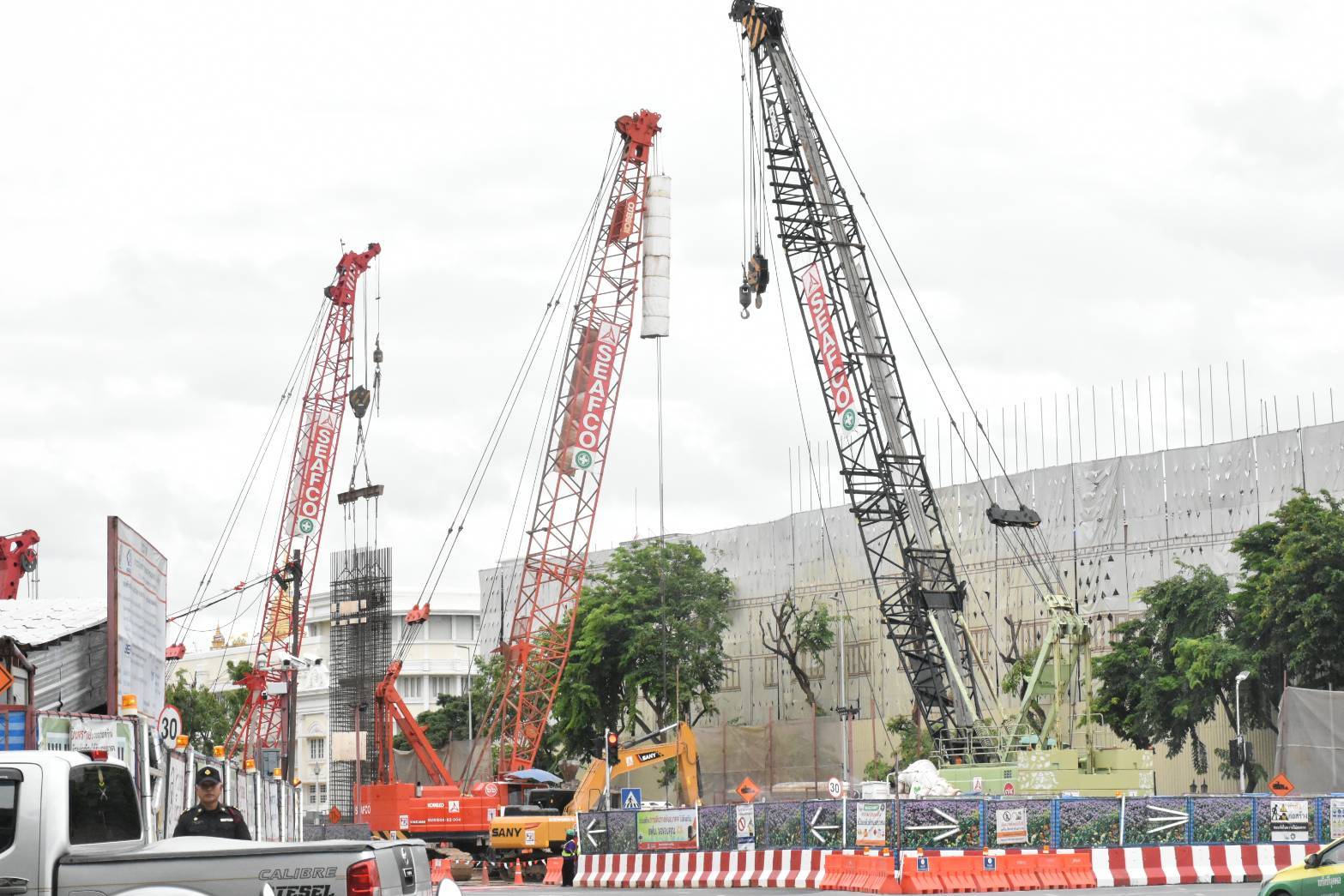 ติดตามมาตรการป้องกันและแก้ไขปัญหาฝุ่น PM2.5 โครงการก่อสร้างรถไฟฟ้าสายสีส้ม ช่วงบางขุนนนท์-ศูนย์วัฒนธรรมแห่งประเทศไทย บริเวณอนุสาวรีย์ประชาธิปไตย ทั้งนี้ รองผู้ว่าราชการกรุงเทพมหานคร มอบหมายให้เขตฯ กำชับผู้ประกอบการให้ดำเนินการตามมาตรการป้องกันฝุ่น PM2.5 อย่างเคร่งครัด ล้างทำความสะอาดล้อรถบรรทุกก่อนออกจากพื้นที่ก่อสร้าง ล้างทำความสะอาดถนนตลอดแนวพื้นที่ก่อสร้างเป็นประจำ เปิดเครื่องพ่นละอองน้ำป้องกันการฟุ้งกระจายของฝุ่นละอองในพื้นที่ก่อสร้าง ติดตั้งผ้าใบคลุมรถบรรทุกที่ใช้ขนดินและขนส่งวัสดุก่อสร้าง จัดให้มีสิ่งปกคลุมกองวัสดุที่ก่อให้เกิดฝุ่นละอองภายในพื้นที่โครงการ นอกจากนี้ เขตฯ ได้จัดทำแผนปฏิบัติการตรวจสอบสถานประกอบการที่ก่อให้เกิดปัญหาฝุ่น PM2.5 ตามมาตรการควบคุมมลพิษทางอากาศและมาตรการด้านความปลอดภัยในพื้นที่อย่างต่อเนื่อง อาทิ ประเภทหล่อหลอมโลหะ 5 แห่ง ประเภทสถานที่ก่อสร้าง 8 แห่ง ประเภทตรวจวัดควันดำเรือโดยสารสาธารณะในสถานที่ต้นทาง 3 แห่ง โดยเน้นย้ำให้สถานประกอบการในพื้นที่ปฏิบัติตามแนวทางแก้ไขปัญหาฝุ่น PM2.5 อย่างเคร่งครัด เพื่อลดมลพิษทางอากาศและลดผลกระทบต่อสิ่งแวดล้อมอย่างยั่งยืน