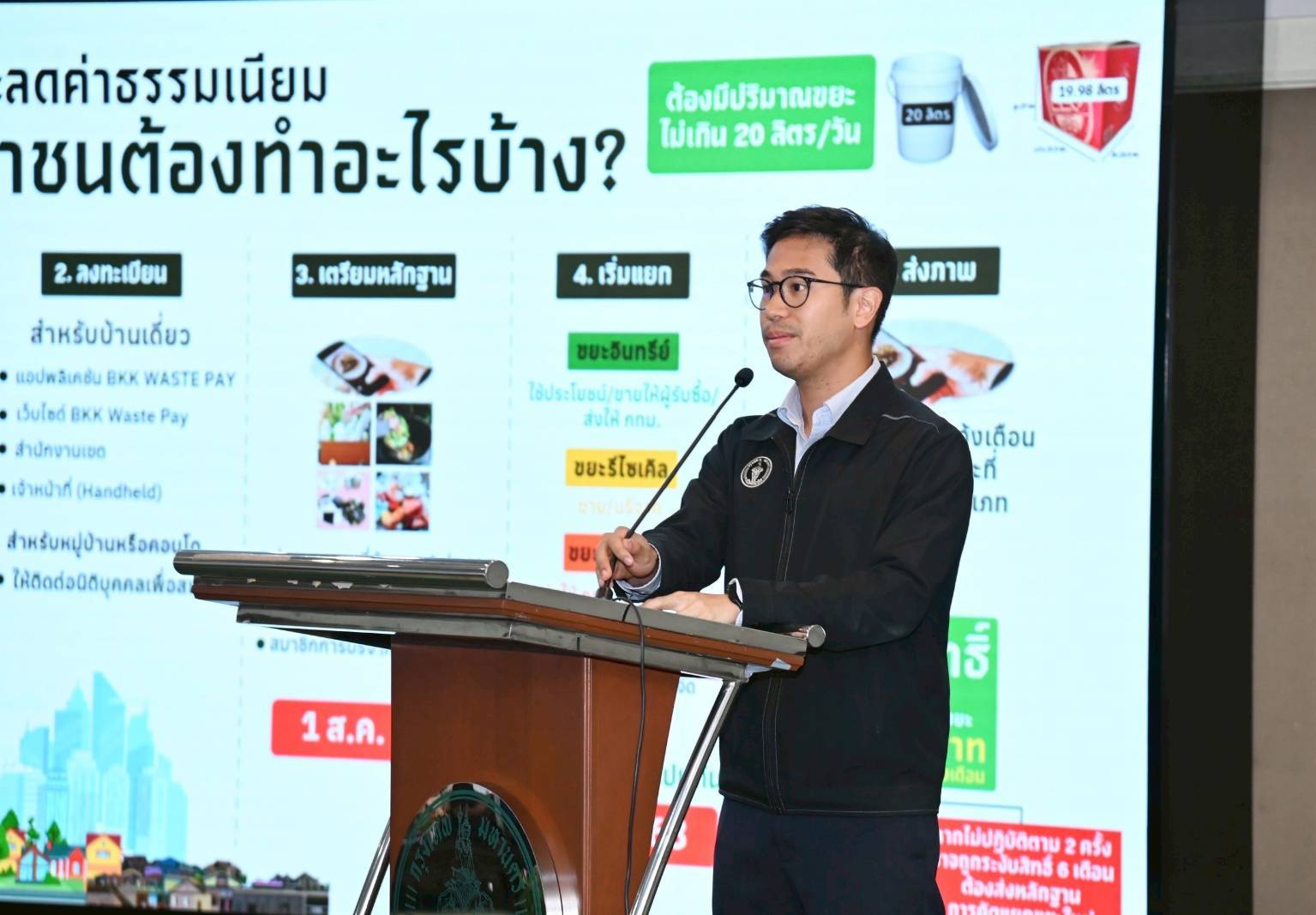 (30 ก.ค. 68) นายพรพรหม วิกิตเศรษฐ์ ที่ปรึกษาของผู้ว่าราชการกรุงเทพมหานคร และผู้บริหารด้านความยั่งยืนของกรุงเทพมหานคร เปิดเผยว่า หลังจากที่กรุงเทพมหานครได้ตราข้อบัญญัติกรุงเทพมหานคร เรื่อง ค่าธรรมเนียมการให้บริการในการจัดการสิ่งปฏิกูลและมูลฝอยตามกฎหมายว่าด้วยการสาธารณสุข พ.ศ. 2568 เพื่อเพิ่มประสิทธิภาพการจัดการขยะ เน้นนำขยะมาใช้ประโยชน์ ลดการใช้ทรัพยากรและลดผลกระทบต่อสุขภาพอนามัยของประชาชน โดยใช้กลไกสร้างแรงจูงใจให้ประชาชน รวมถึงผู้ประกอบการร่วมมือลดและคัดแยกขยะที่แหล่งกำเนิด สอดคล้องกับสภาวการณ์และค่าใช้จ่ายในปัจจุบัน โดยจะเริ่มจัดเก็บค่าธรรมเนียมขยะอัตราใหม่จากเดิม 20 บาทต่อเดือน เป็น 60 บาทต่อเดือน ตั้งแต่เดือนตุลาคม 2568 เป็นต้นไป พร้อมกันนั้น กทม. ได้เชิญชวนประชาชนเข้าร่วมโครงการบ้านนี้ไม่เทรวม : แยกขยะลดค่าธรรมเนียม โดยเชิญชวนประชาชนลงทะเบียนเข้าร่วมโครงการฯ ผ่านทางแอปพลิเคชัน BKK WASTE PAY ล่าสุด กทม. ได้อัปเวอร์ชันแอปฯ ใหม่ ปรับไอคอนของแอปพลิเคชัน พร้อมปรับปรุงระบบเพื่อรองรับการให้บริการเกี่ยวกับการชำระค่าธรรมเนียมขยะอย่างเต็มรูปแบบ อีกทั้งเพิ่มฟีเจอร์ที่อำนวยความสะดวกให้ประชาชนสามารถใช้งานได้อย่างสะดวกมากขึ้น ซึ่งประชาชนที่สมัครเข้าร่วมโครงการฯ แล้ว สามารถส่งภาพการแยกขยะ 4 ประเภท ประกอบด้วย ขยะเศษอาหาร ขยะรีไซเคิล ขยะอันตราย (ถ้ามี) และขยะทั่วไป ได้ตั้งแต่วันที่ 1 สิงหาคม 2568 เป็นต้นไป