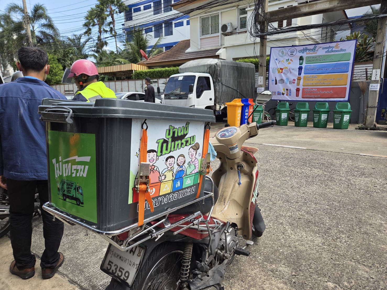 เยี่ยมชมต้นแบบการคัดแยกขยะ หมู่บ้านศรีไทยวิลล่า ซอยเจริญราษฎร์ 7 แยก 35-3 บ้านเรือน 173 หลัง เข้าร่วมโครงการบ้านนี้ไม่เทรวม 100 หลัง เข้าร่วมโครงการคัดแยกขยะ ตั้งแต่เดือนเมษายน 2568 วิธีการคัดแยกขยะ โดยจำแนกตามประเภทของขยะ ดังนี้ 1.ขยะทั่วไป ตั้งวางถังรองรับขยะทั่วไป บริเวณจุดทิ้งขยะรวมของหมู่บ้าน เขตฯ จัดเก็บทุกวัน 2.ขยะรีไซเคิล ตั้งวางถังรองรับขยะรีไซเคิล บริเวณจุดทิ้งขยะรวมของหมู่บ้าน เขตฯ จัดเก็บอาทิตย์ละ 1 ครั้ง บางส่วนหมู่บ้านนำไปบริหารจัดการเอง 3.ขยะอินทรีย์ ตั้งวางถังรองรับขยะเศษอาหาร เศษผัก เศษผลไม้ บริเวณจุดทิ้งขยะรวมของหมู่บ้าน เขตฯ จัดเก็บทุกวัน 4.ขยะอันตราย ตั้งวางถังรองรับขยะอันตราย บริเวณจุดทิ้งขยะรวมของหมู่บ้าน เขตฯ จัดเก็บเดือนละ 1 ครั้ง สำหรับปริมาณขยะก่อนคัดแยกและหลังคัดแยก ดังนี้ ขยะทั่วไปก่อนคัดแยก 15,000 กิโลกรัม/เดือน หลังคัดแยก 14,677 กิโลกรัม/เดือน ขยะรีไซเคิลหลังคัดแยก 80 กิโลกรัม/เดือน ขยะอินทรีย์หลังคัดแยก 241 กิโลกรัม/เดือน ขยะอันตรายหลังคัดแยก 1 กิโลกรัม/เดือน ทั้งนี้ รองผู้ว่าราชการกรุงเทพมหานคร ได้ให้คำแนะนำในการคัดแยกขยะประเภทต่างๆ เพื่อให้การจัดเก็บมีประสิทธิภาพมากยิ่งขึ้น พร้อมทั้งมอบหมายให้เขตฯ ลงพื้นที่ตามบ้านเรือน ชุมชน ร้านอาหาร เพื่อประชาสัมพันธ์เชิญชวนประชาชนและผู้ประกอบการลงทะเบียนผ่านแอปพลิเคชัน BKK WASTE PAY เข้าร่วมโครงการ “บ้านนี้ไม่เทรวม : แยกขยะลดค่าธรรมเนียม” ซึ่งปริมาณขยะที่คัดแยกจะมีผลต่ออัตราค่าธรรมเนียมในการจัดการมูลฝอยฉบับใหม่ โดยจะมีผลบังคับใช้ในเดือนตุลาคม 2568
