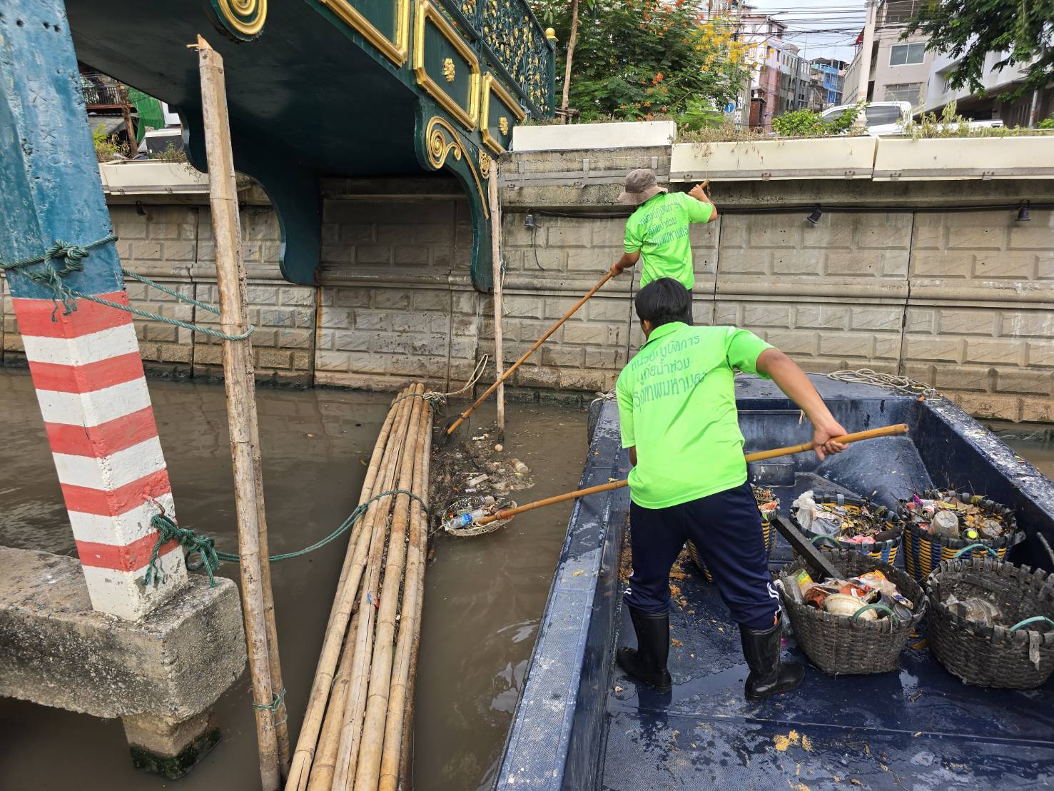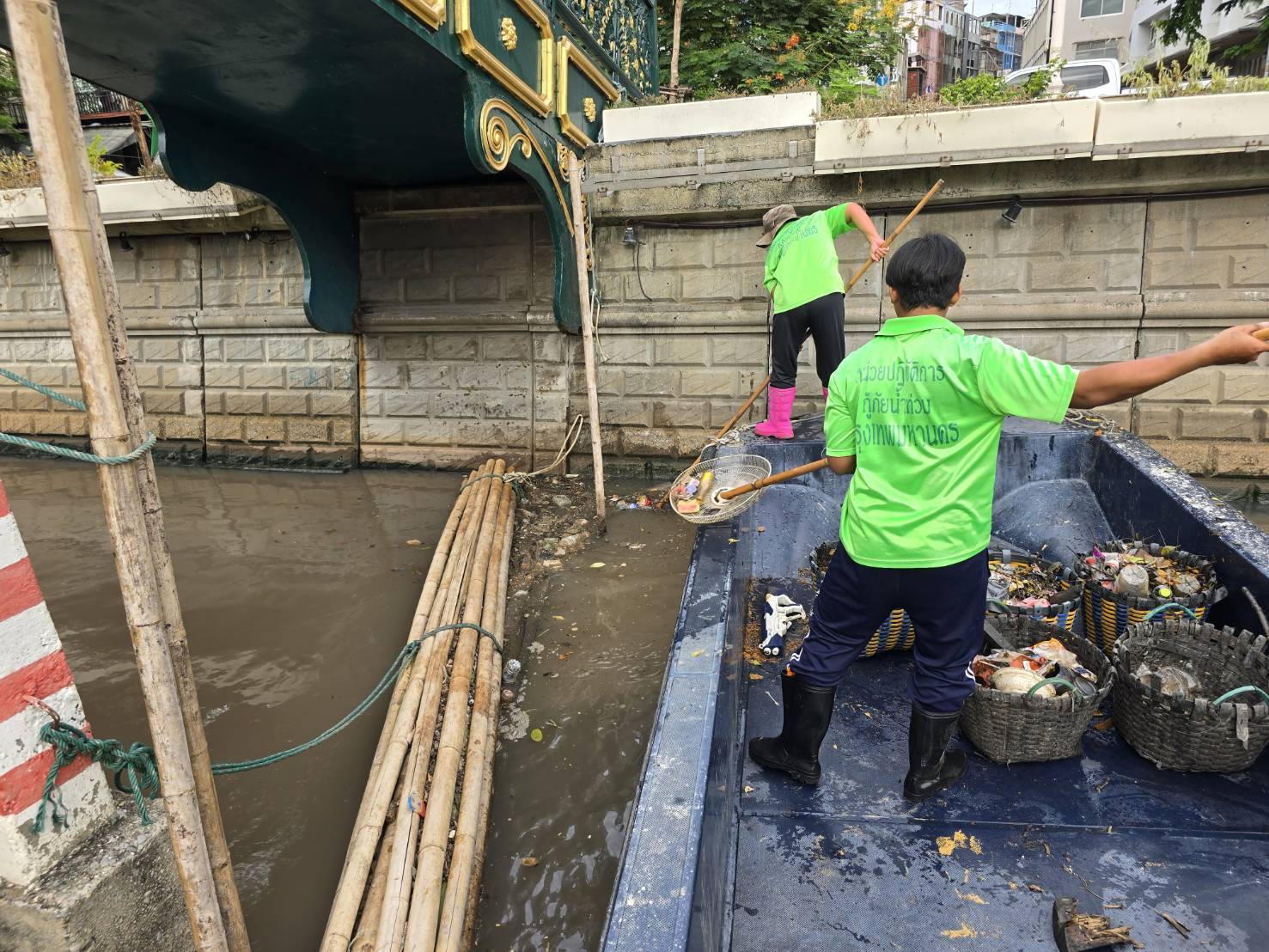 พื้นที่ 2 กลุ่ม 1 กรบ.หน่วยวานคลองผดุงกรุงเกษม(หัวลำโพง)พร้อมเจ้าหน้าที่เก็บขยะช่วงสถานีสูบน้ำกรุงเกษมสะพานเจริญสวัสดิ์สะพานนพวงศ์สะพานกษัตริย์ศึกหน้าตลาดโบ้เบ๊ถึงสี่แยกมหานาคเขตปทุมวันและป้อมปราบขยะนำขึ้ยรถไปทิ้งทำลายปริมาณขยะ0.2ตันค่ะ