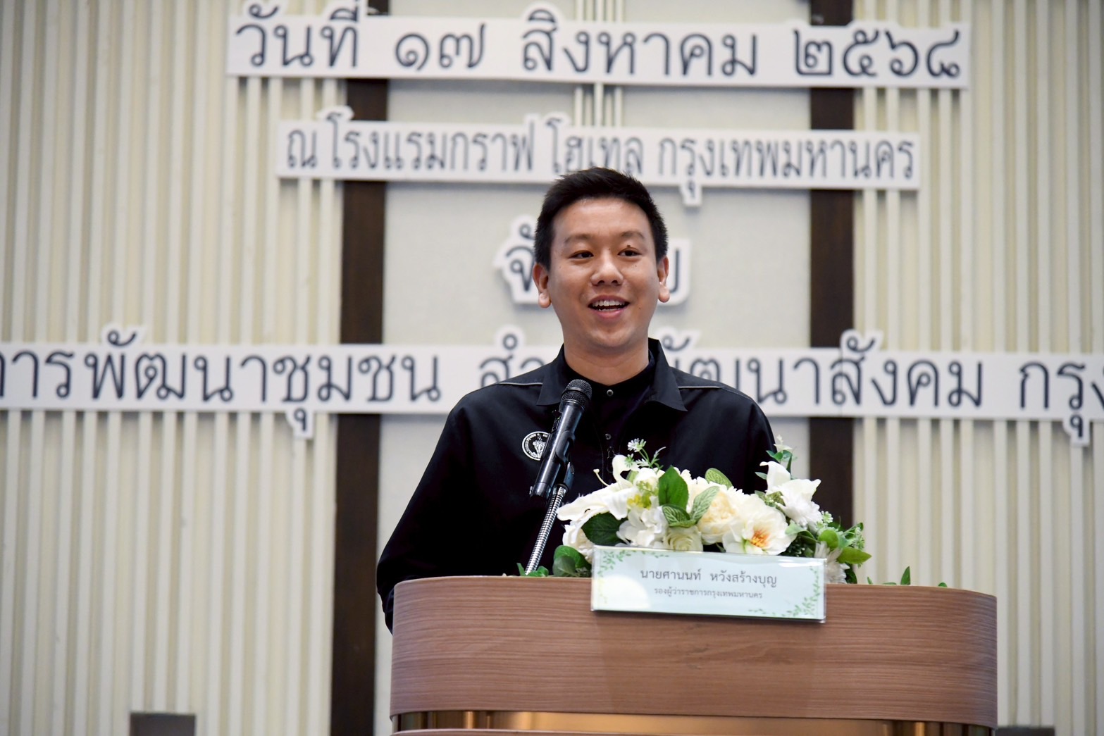 (17 ส.ค. 68) นายศานนท์ หวังสร้างบุญ รองผู้ว่าราชการกรุงเทพมหานคร ประธานเปิดกิจกรรมอาสาสมัครพัฒนาชุมชนต้นแบบ ในโครงการจ้างอาสาสมัครพัฒนาชุมชน ประจำปีงบประมาณ พ.ศ.2568 และมอบรางวัลให้อาสาสมัครพัฒนาชุมชนต้นแบบดีเด่น จำนวน 12 คน ณ โรงแรมกราฟ เขตห้วยขวาง