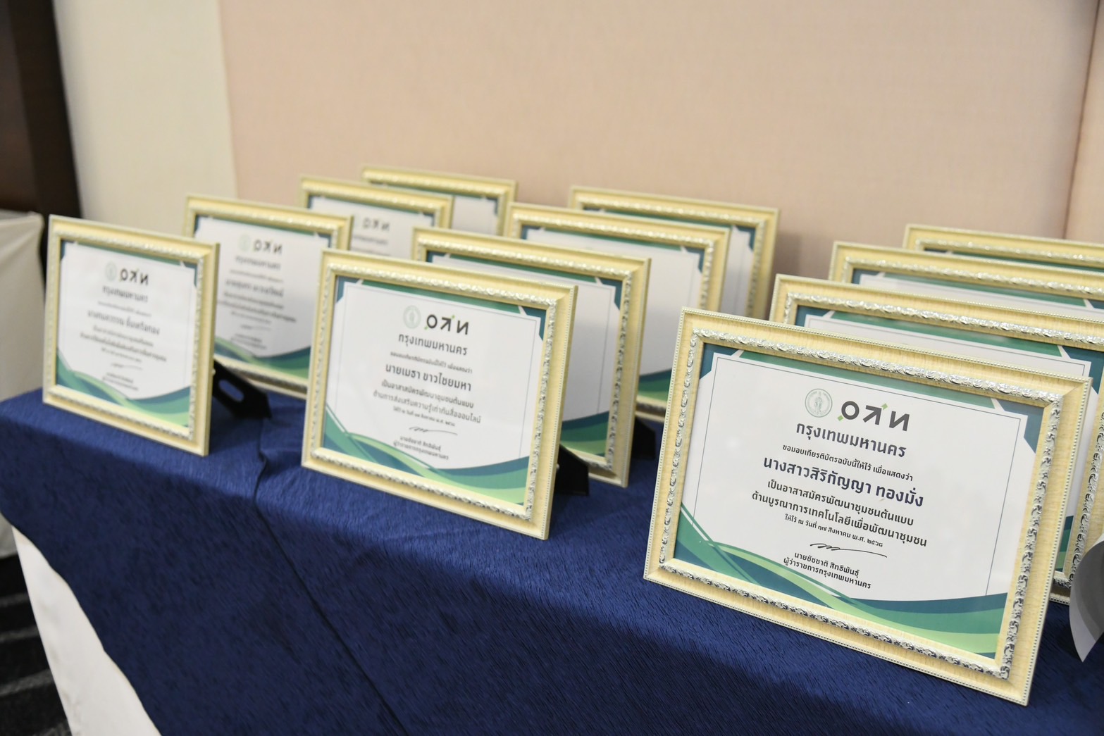 ทั้งนี้ สำนักพัฒนาสังคมได้จัดทำช่องทางการเข้าถึง การเผยแพร่ผลิตภัณฑ์ในพื้นที่ สู่ตลาดออนไลน์ตลอดจนการจัดทำข้อมูลแผนที่ และแผนผังชุมชนให้เป็นปัจจุบัน ซึ่งในขณะนี้ มีอาสาสมัครพัฒนาชุมชน จาก 50 เขต จำนวนทั้งสิ้น 628 คน ลงพื้นที่ปฏิบัติงานตามภารกิจ ด้านเทคโนโลยีในชุมชนของกรุงเทพมหานคร เพื่อให้อาสาสมัครพัฒนาชุมชนเกิดความภาคภูมิใจ ที่เป็นส่วนหนึ่งในการพัฒนาชุมชน และสร้างภาพลักษณ์ที่ดี ในการเป็นอาสาสมัครของกรุงเทพมหานคร สำหรับรางวัลอาสาสมัครพัฒนาชุมชนต้นแบบดีเด่น จำนวน 12 คน ใน 5 ด้าน ได้แก่ 1. ด้านการใช้เทคโนโลยีเพื่อส่งเสริมการสื่อสารชุมชน จำนวน 2 คน
