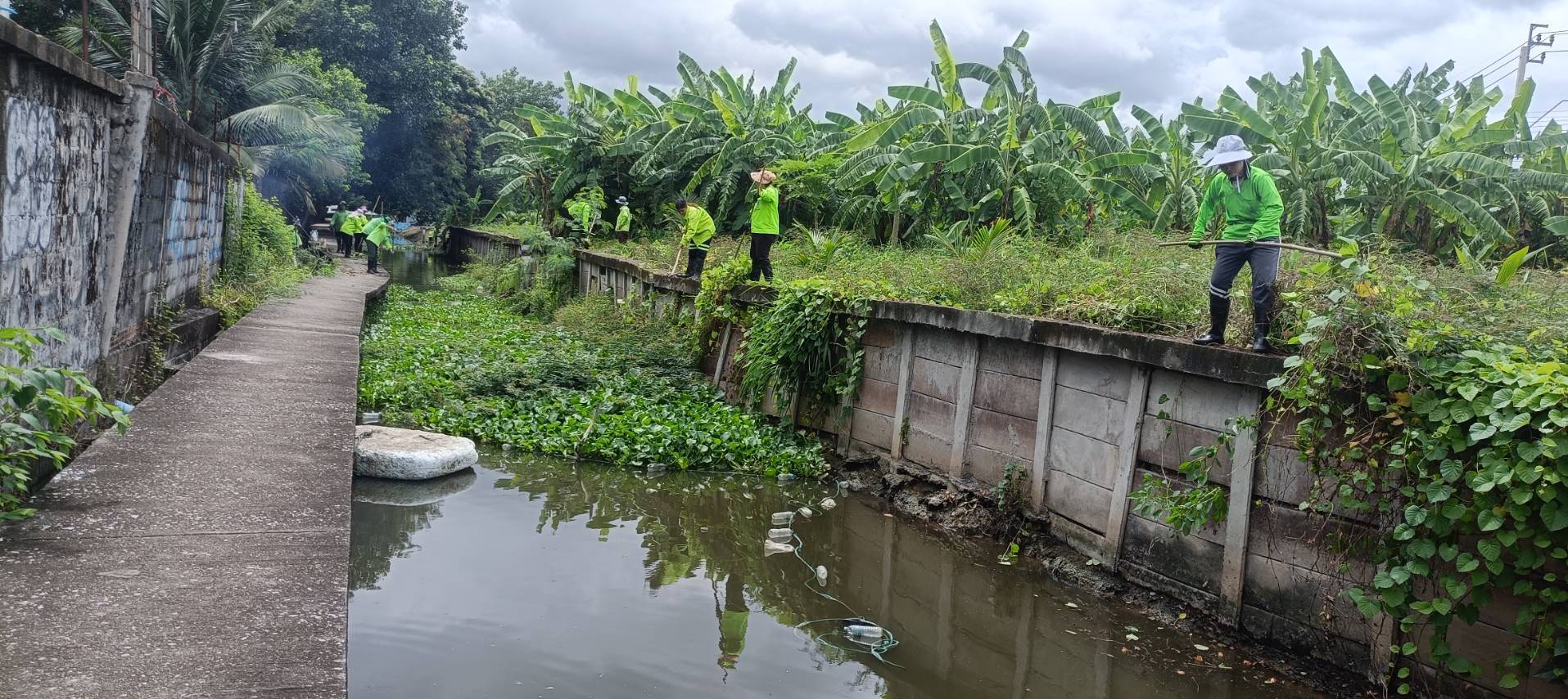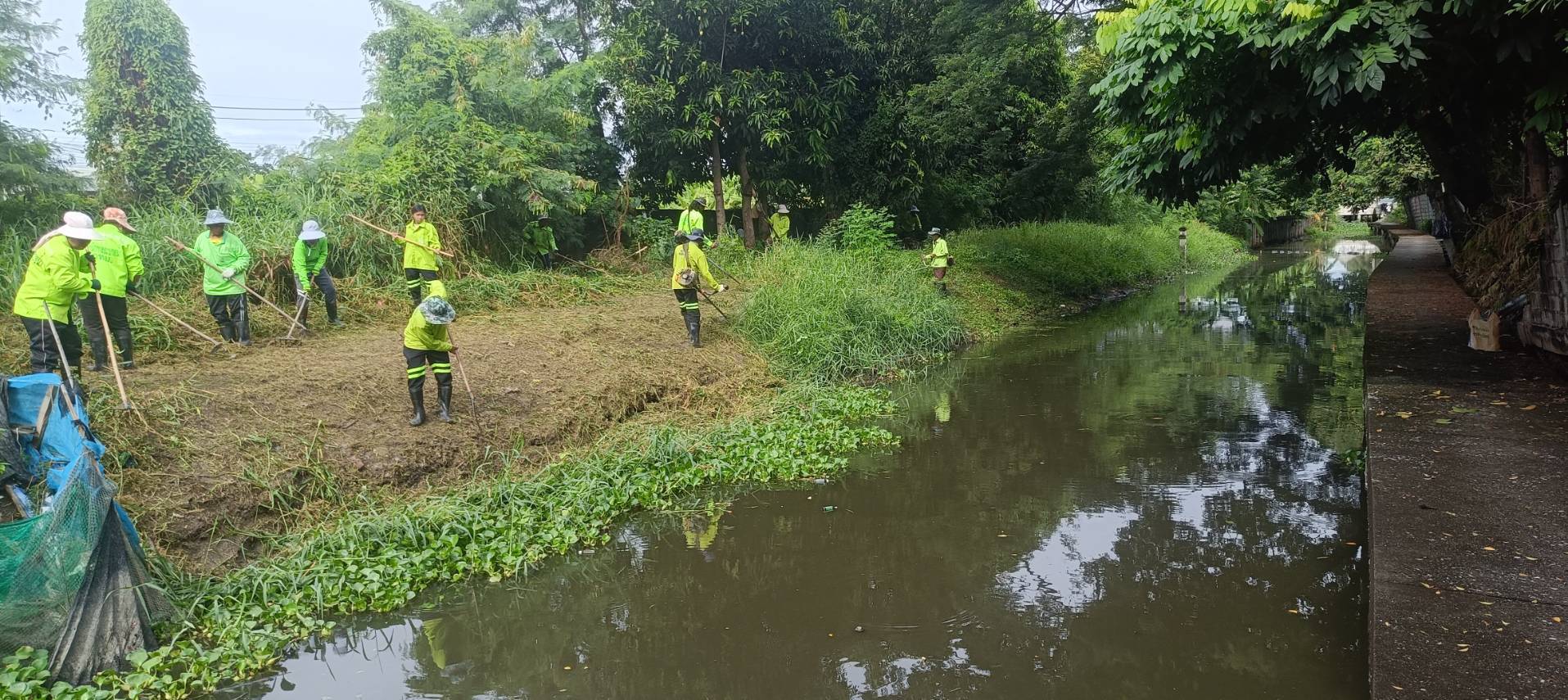 หน่วยงานคลองบึงหนองบอนพื้นที่ 2 กลุ่มงาน 3 กองระบบคลองสำนักการระบายน้ำจัดเจ้าหน้าที่จำนวน 20 คนพร้อมรถบรรทุกทะเบียน54-7650ดำเนินการจัดเก็บขยะวัชพืชตัดหญ้าคลองมะขามเทศซอยเฉลิมพระเกียรติร 9/55ช่วงวัดแก้วพิทักษ์เจริญธรรมเขตประเวศ
