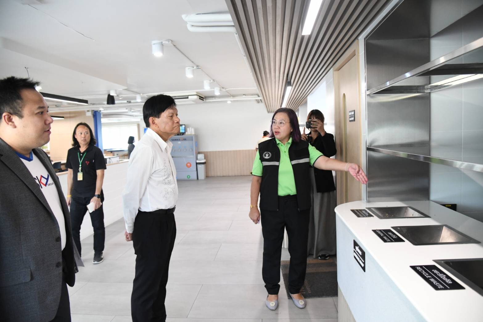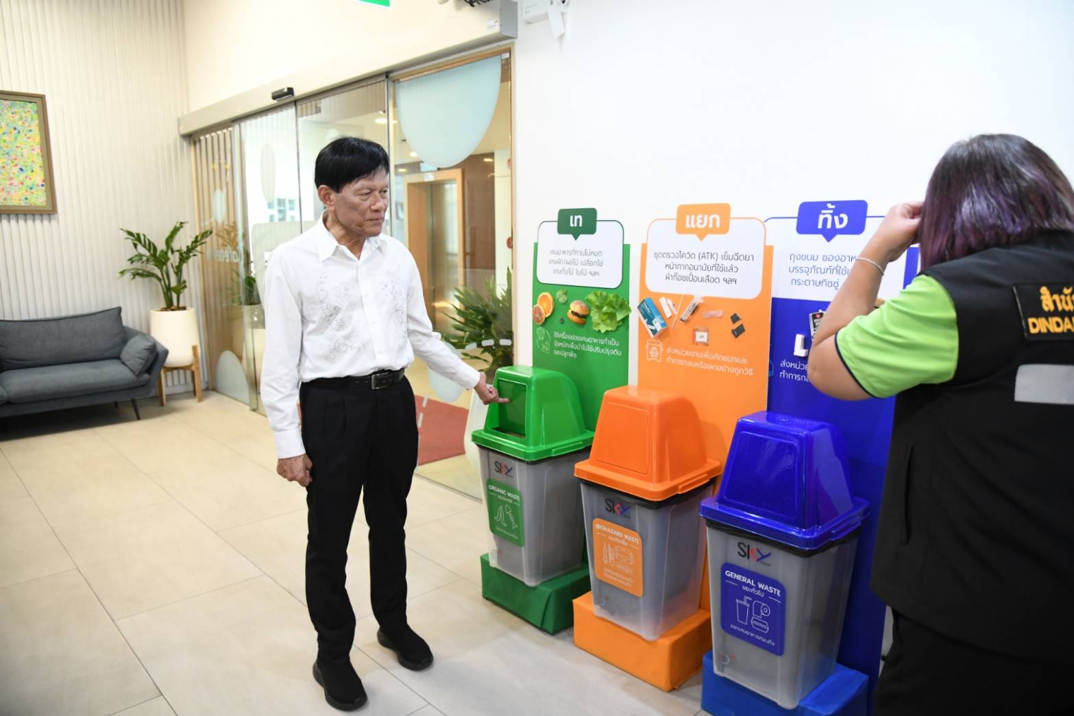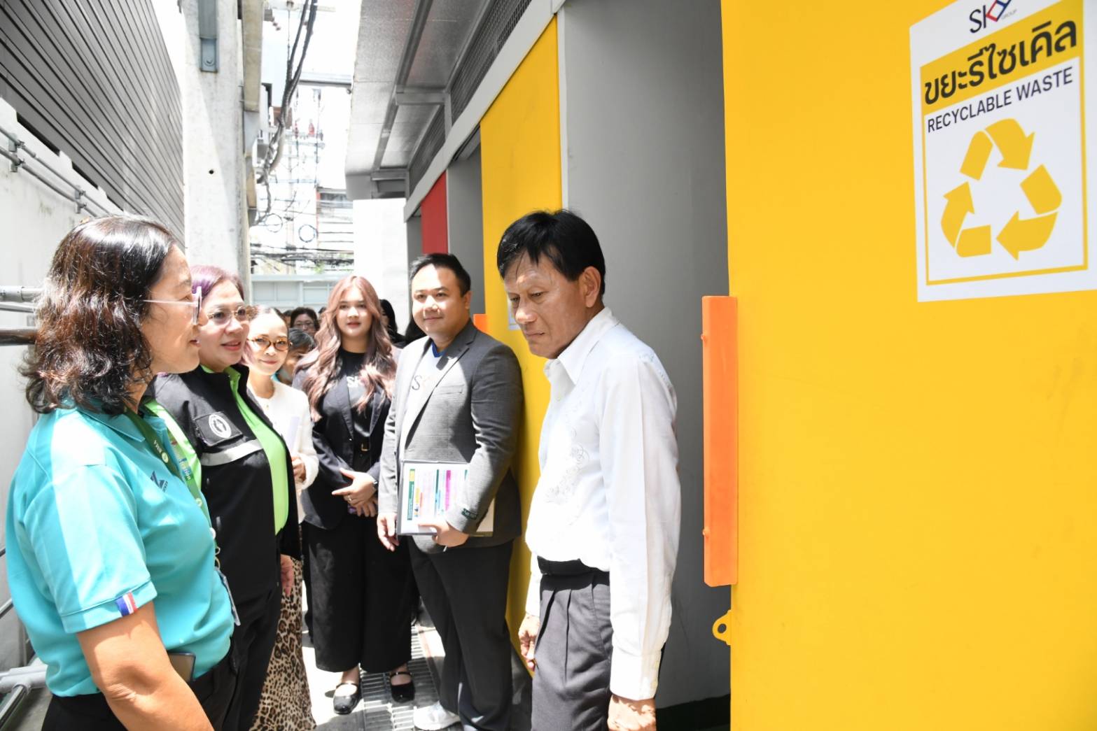 เยี่ยมชมต้นแบบการคัดแยกขยะ อาคาร เอ.เอ. แคปปิตอล ซอยรัชดาภิเษก 3 มีพนักงาน 500 คน เข้าร่วมโครงการคัดแยกขยะ ตั้งแต่ปี 2567 วิธีการคัดแยกขยะ โดยจำแนกตามประเภทของขยะ ดังนี้ 1.ขยะอินทรีย์ ตั้งวางถังรองรับเศษอาหารบริเวณศูนย์อาหาร แม่บ้านเก็บรวบรวมไว้ให้เกษตรกรมารับไปเลี้ยงปลา 2.ขยะรีไซเคิล ตั้งวางถังรองรับขยะรีไซเคิลทุกชั้นของอาคาร แม่บ้านเก็บรวบรวมไว้ที่จุดพักขยะ ประสาน Waste Buy Delivery เข้ามารับซื้อเดือนละ 1 ครั้ง ติดป้ายรณรงค์การตัดแยกขยะตามจุดต่าง ๆ ของอาคาร ประชาสัมพันธ์ผ่านช่องทางแอปพลิเคชันของบริษัททางทีวีออนไลน์ แต่งตั้งคณะทำงานด้านสิ่งแวดล้อม จัดประชุมกำหนดนโยบายและแนวทางดำเนินการ 3.ขยะทั่วไป ตั้งวางถังรองรับขยะทั่วไปทุกชั้นของอาคาร แม่บ้านเก็บรวบรวมไปไว้ที่จุดพักขยะ เขตฯ จัดเก็บ 4.ขยะอันตราย ตั้งวางถังรองรับขยะอันตราย เมื่อมีปริมาณมากจะแจ้งเขตฯ จัดเก็บไปกำจัดอย่างถูกวิธี สำหรับปริมาณขยะก่อนคัดแยกและหลังคัดแยก ดังนี้ ขยะทั่วไปก่อนคัดแยก 200-300 กิโลกรัม/วัน หลังคัดแยก 100-200 กิโลกรัม/วัน ขยะรีไซเคิลก่อนคัดแยก 100 กิโลกรัม/เดือน หลังคัดแยก 300-400 กิโลกรัม/เดือน ขยะอินทรีย์หลังคัดแยก 10-15 กิโลกรัม/วัน ขยะอันตรายหลังคัดแยก 3-5 กิโลกรัม/เดือน ทั้งนี้ รองผู้ว่าราชการกรุงเทพมหานคร ได้เยี่ยมชมการคัดแยกเศษอาหารบริเวณศูนย์อาหาร ชั้น 4 พร้อมทั้งให้คำแนะนำในการคัดแยกขยะประเภทต่าง ๆ เพื่อให้การจัดเก็บขยะมีประสิทธิภาพมากยิ่งขึ้น โดยเฉพาะขยะทั่วไปที่สามารถคัดแยกออกมาได้อีก จะส่งผลให้ค่าธรรมเนียมในจัดการมูลฝอยที่จะต้องชำระในแต่ละเดือนลดลง จากกลุ่มที่ 3 มาอยู่ในกลุ่มที่ 2 ซึ่งปริมาณขยะที่คัดแยกจะมีผลต่ออัตราค่าธรรมเนียมในการจัดการมูลฝอยฉบับใหม่ โดยจะมีผลบังคับใช้ในเดือนตุลาคม 2568 พร้อมทั้งมอบหมายให้เขตฯ ลงพื้นที่ตามชุมชนต่าง ๆ เพื่อประชาสัมพันธ์เชิญชวนประชาชนลงทะเบียนผ่านแอปพลิเคชัน BKK WASTE PAY เข้าร่วมโครงการ “บ้านนี้ไม่เทรวม : แยกขยะลดค่าธรรมเนียม”