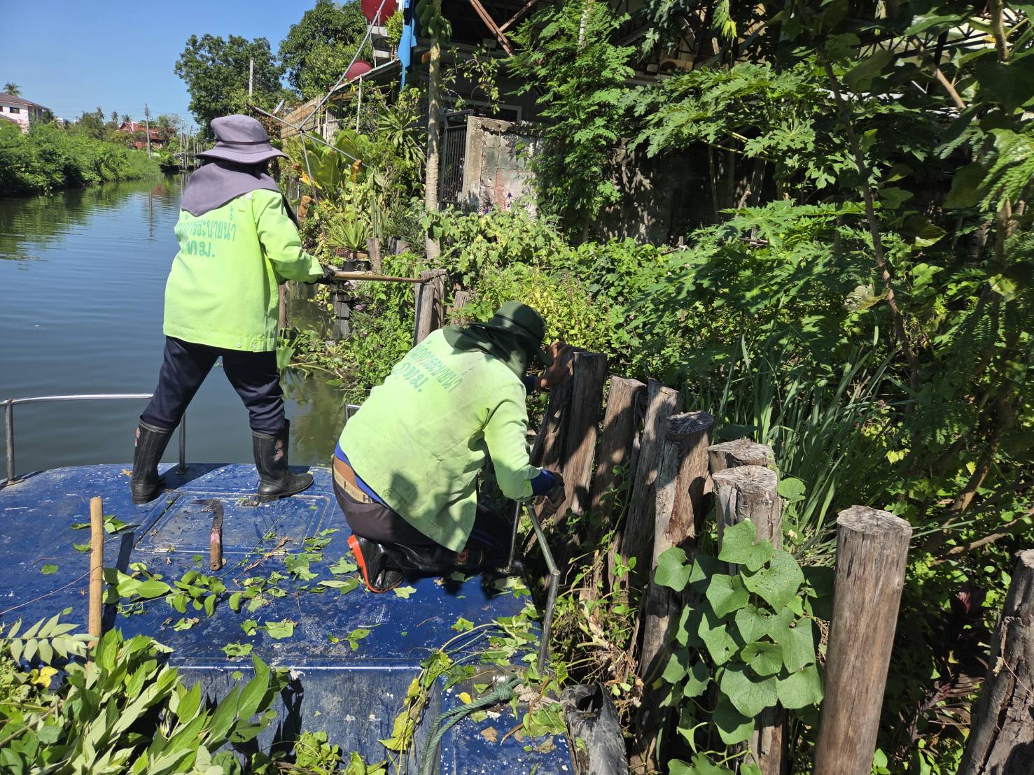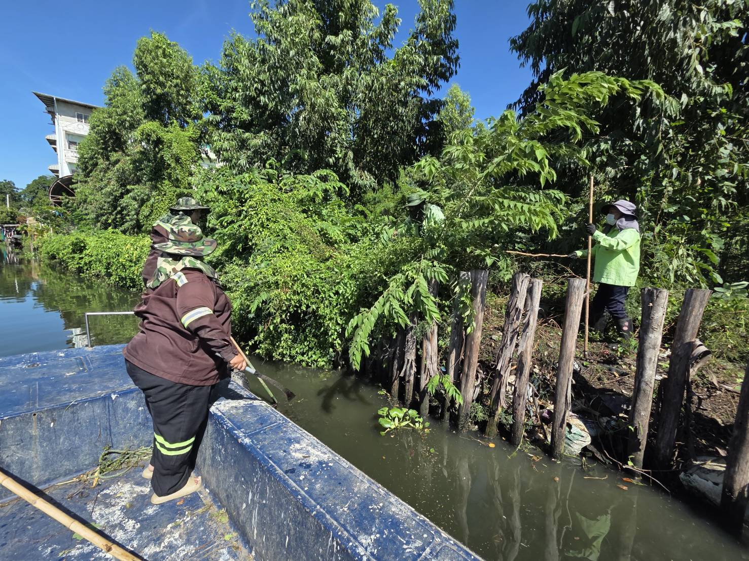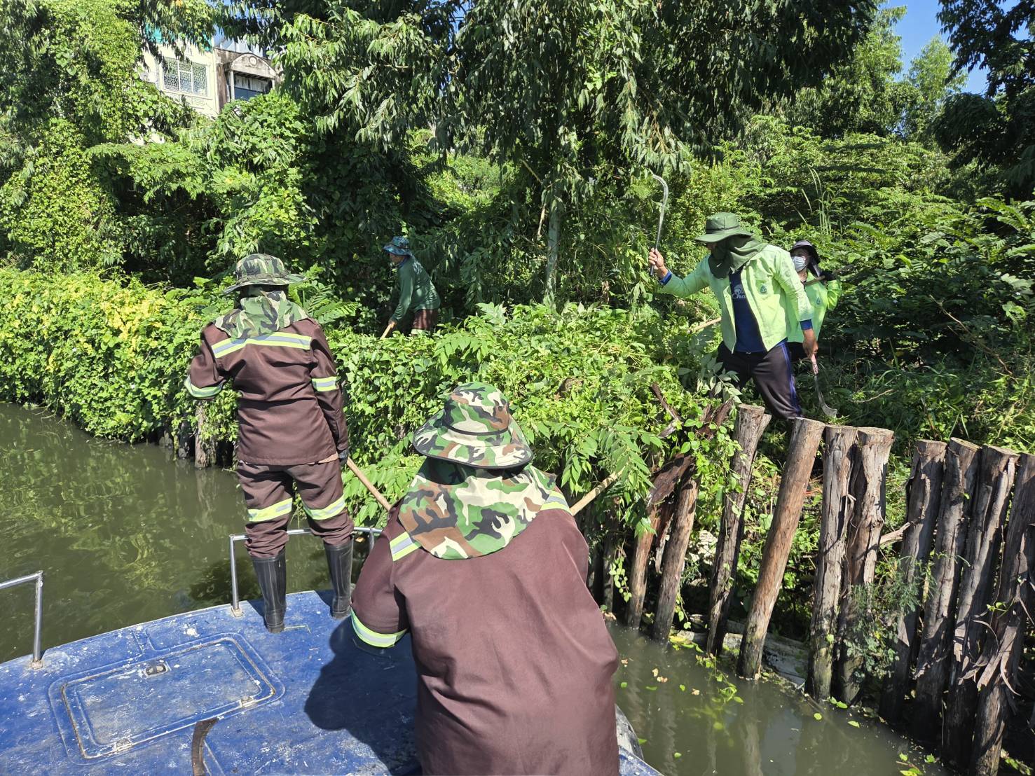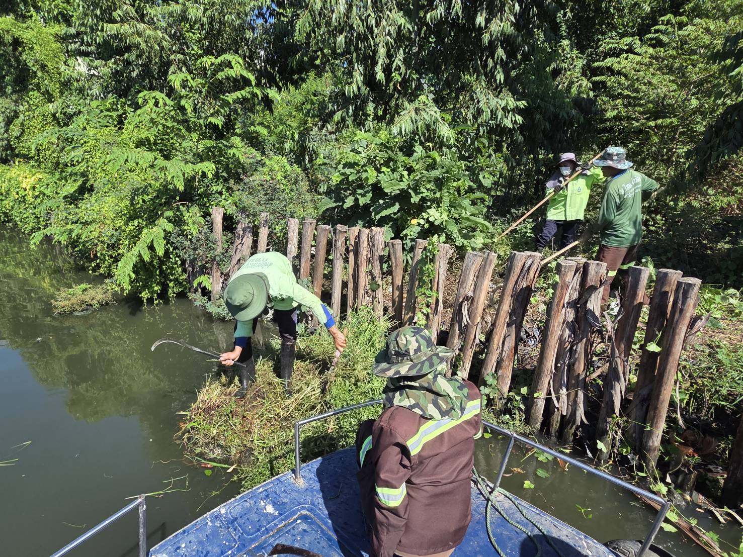 วันที่ 21 สิงหาคม 2568 หน่วยงานคลองบางอ้าย พื้นที่บำรุงรักษา ธนบุรี กลุ่มงานบำรุงรักษาคลอง 4 กองระบบคลอง เจ้าหน้าที่พร้อมเรือ เก็บขยะ 2 ลำ ออก ปฏิบัติงาน ตัดหญ้าและกิ่งไม้เก็บวัชพืช คลองหนองใหญ่ เขตบางแค