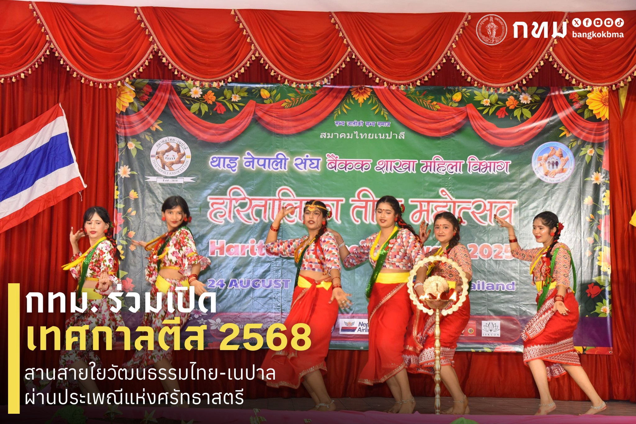 (24 ส.ค. 68) นายสุนทร สุนทรชาติ รองปลัดกรุงเทพมหานคร เป็นประธานในพิธีเปิดงานพร้อมกล่าวแสดงความยินดี ในงาน “เทศกาลตีส (Teej) ประจำปี 2568” ซึ่งจัดโดยสมาคมไทย-เนปาลี (ประเทศไทย) โดยมี นายวิชัย ลิมปู นายกสมาคมไทย-เนปาลี (ประเทศไทย) และผู้เกี่ยวข้อง ร่วมพิธี ณ สมาคมสกุลคูสงเคราะห์ ถนนพระรามที่ 4 เขตคลองเตย