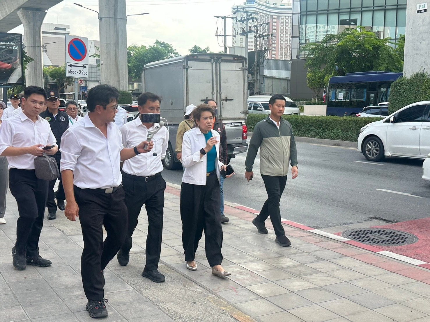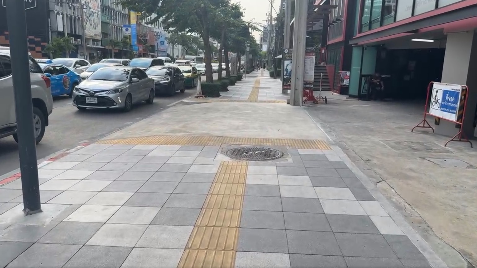 จากนั้น รองผู้ว่าฯ วิศณุ และคณะ เดินตรวจสำรวจงานทางเท้าที่ไปปรับปรุงใหม่อย่างไฉไล จากแยกรัชดา – ลาดพร้าว ไปยังห้าแยกลาดพร้าว พร้อมบอกเล่าแนวคิดและความตั้งใจในรายละเอียดที่ต้องการทำทางเท้าให้ดี และเป็น Universal Design อาทิ ช่วงจุดตัดของทางเท้ากับทางเข้าอาคาร ได้ขอความร่วมมือเจ้าของอาคารให้ปรับปรุงทางเข้าอาคารให้เสมอกับทางเท้า หรือมีทางลาดให้วีลแชร์เดินทางได้ หรือทางเท้าบางช่วงมีการขยายจุดจอดรถเข้ามาเพื่อรับส่งผู้โดยสาร ไม่ให้กระทบกับเลนที่รถวิ่ง