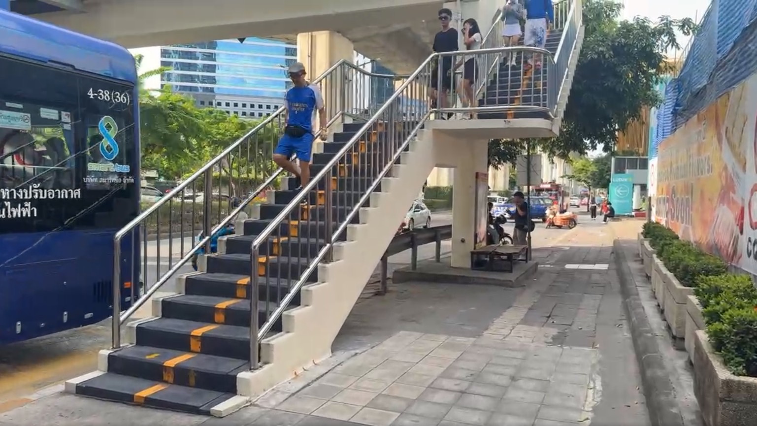 เมื่อคณะเดินตรวจทางเท้ามาถึงห้าแยกลาดพร้าว ได้เลี้ยวขวาหน้ายูเนียนมอลล์ สำรวจทางเท้าถนนพหลโยธินอีกเล็กน้อย แวะตรวจสะพานลอยหน้าโลตัสลาดพร้าว ที่ได้ทำการหั่นขาสะพานเสร็จแล้ว รองฯ ณุ อธิบายเพิ่มเติมว่าการหั่นขาสะพานลอย คือ กรณีที่บันไดสะพานลอยกีดขวางทางเท้าหรือทางสัญจร เช่น ทำให้วีลแชร์เข็นไม่ผ่าน เราใช้วิธีย้ายบันไดสะพานให้มาอยู่ในแนวเดียวกัน เพื่อให้เกิดพื้นที่ทางเท้าเพิ่มขึ้น ซึ่งตอนนี้เส้นถนนพหลโยธินเสร็จครบ 5 จุดแล้ว