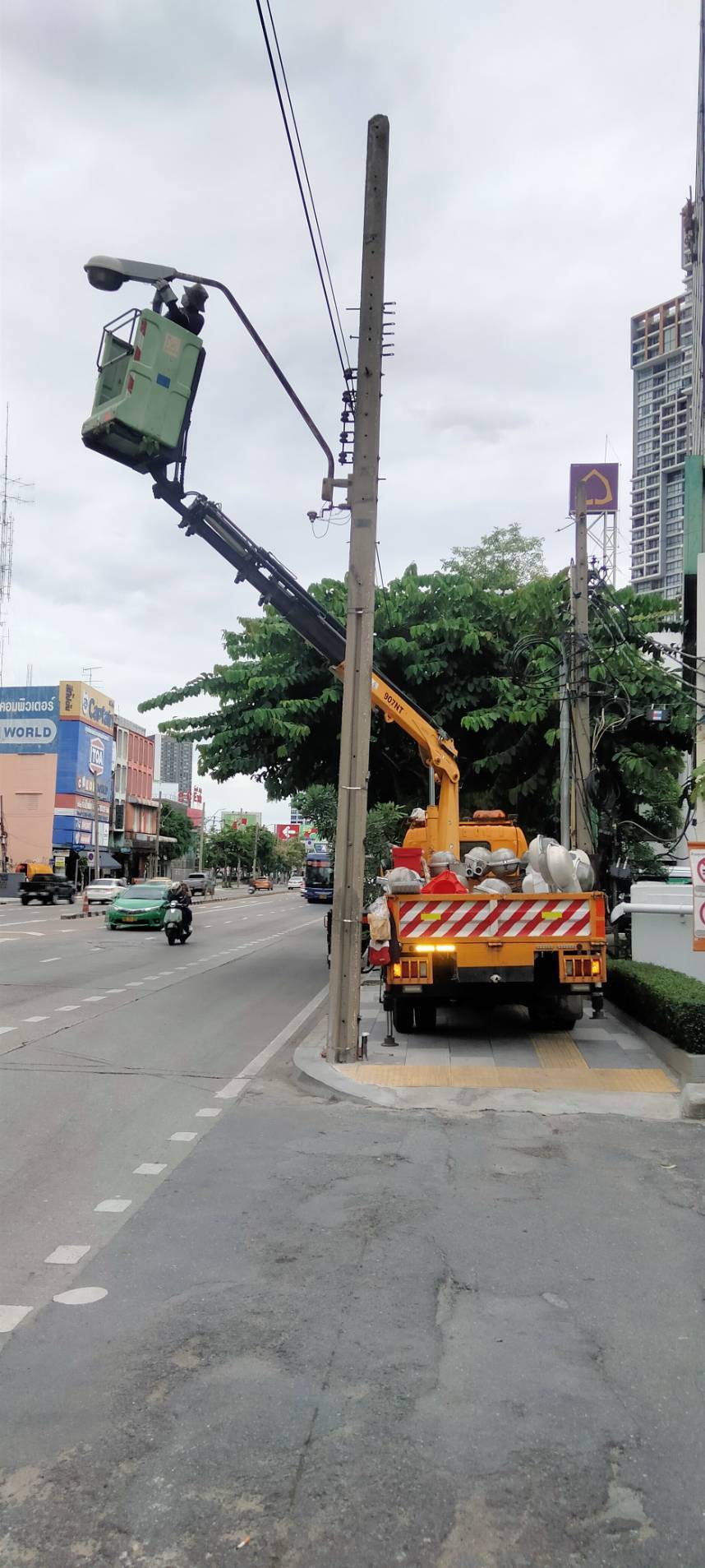 นายธวัชชัย นภาศักดิ์ศรี ผู้อำนวยการสำนักการโยธา (สนย.) กทม. กล่าวถึงสาเหตุที่การแก้ไขปัญหาไฟฟ้าส่องสว่างล่าช้า เนื่องจากถนนลาดพร้าวอยู่ในโครงการปรับปรุงระบบไฟฟ้า โดย กฟน. ได้เปลี่ยนระบบจากสายไฟฟ้าอากาศเป็นสายไฟฟ้าใต้ดิน ตั้งแต่บริเวณห้าแยกลาดพร้าวถึงถนนรัชดาฯ–ลาดพร้าว ซึ่งในระหว่างช่วงเปลี่ยนผ่านนี้อาจเกิดปัญหาความเสถียรของระบบไฟฟ้าเป็นบางครั้ง อีกทั้งโคมไฟฟ้าส่องสว่างเดิมยังใช้หลอดโซเดียมความดันสูง (High Pressure Sodium Lamp: HPS) ซึ่งมักพบปัญหาไฟฟ้าดับซ้ำ ๆ อย่างไรก็ตาม เพื่อบรรเทาความเดือดร้อนของประชาชน สนย. ได้เร่งรัดซ่อมแซมในจุดที่ไฟดับชั่วคราว โดยเปลี่ยนเป็นโคมไฟ LED พร้อมอุปกรณ์ประกอบที่มีความเสถียรและประหยัดพลังงานมากกว่า ทั้งนี้ เป็นมาตรการแก้ไขระหว่างรอการหักเสาและติดตั้งเสาไฟถาวรใหม่ ซึ่งคาดว่า กฟน. จะดำเนินการแล้วเสร็จภายในปี 2568