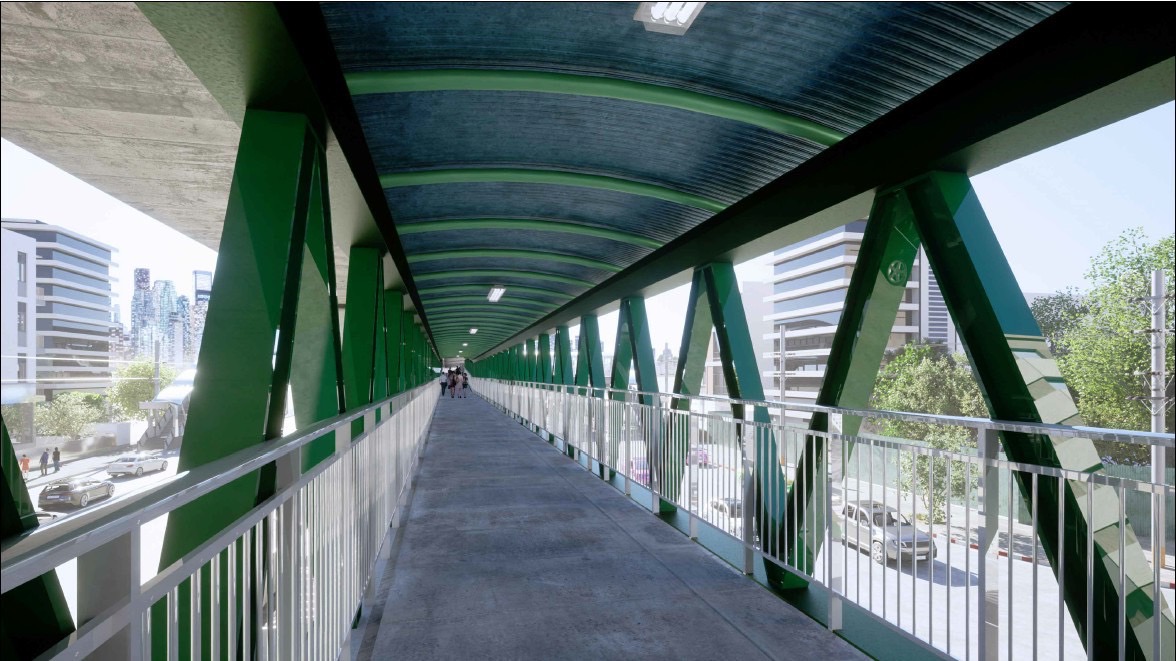 สำหรับทางเดินยกระดับ (Sky Walk) แห่งนี้ ก่อสร้างบริเวณถนนสาทรเหนือ ด้านหนึ่งเชื่อมต่อกับสถานีสุรศักดิ์ (S5) บริเวณชั้นจำหน่ายตั๋ว และอีกด้านหนึ่งเชื่อมต่อกับสะพานคนเดินข้ามถนนบริเวณหน้าโรงเรียนกรุงเทพคริสเตียน ความยาวประมาณ 110 เมตร โครงสร้างหลักจะเป็นโครงสร้างเหล็ก พร้อมการจัดทำราวกันตก หลังคาคลุม และไฟส่องสว่าง การก่อสร้างทั้งหมดจะเป็นไปตามมาตรฐานด้านวิศวกรรมและความปลอดภัย