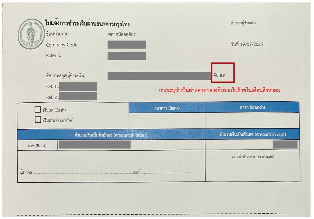 อย่างไรก็ตาม ในการประชุมคณะอนุกรรมการบริหารพื้นที่ตลาดนัดจตุจักร ครั้งที่ 1/2568 เมื่อวันที่ 10 ม.ค. 68 มีมติเห็นชอบให้จัดเก็บค่าธรรมเนียมการใช้สถานที่ทำการค้าตลาดนัดกลางคืนในคืนวันศุกร์ คืนวันเสาร์ และคืนวันอาทิตย์ โดย สงต. ได้ออกประกาศเมื่อวันที่ 20 ม.ค. 68 เรื่อง การจัดเก็บค่าธรรมเนียมการทำการค้าตลาดกลางคืน แจ้งผู้ค้าที่ประสงค์จะทำการค้าในเวลากลางคืนต้องชำระค่าธรรมเนียมการใช้สถานที่ทำการค้าเพิ่มเติมจากค่าเช่าในอัตราเหมาจ่ายแผงค้าละ 1,500 บาท/เดือน ทั้งนี้ การจัดเก็บค่าธรรมเนียมดังกล่าวจะรวมกับการชำระค่าเช่าแผงค้ารายเดือน ผ่านระบบธนาคาร (Bill–Payment) ซึ่งจะเข้าบัญชีเงินฝากธนาคารของสำนักงานตลาดนัดจตุจักรโดยตรงและออกใบเสร็จรับเงิน เพื่อยืนยันความถูกต้องทุกครั้ง