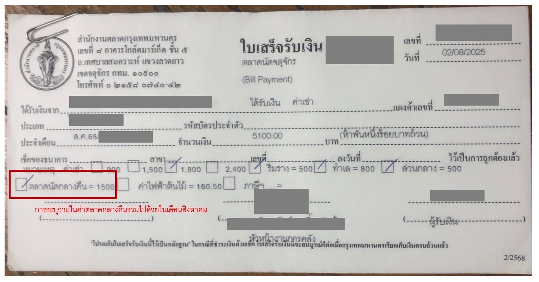 นายมีชัย ภัทรเปรมเจริญ ผู้อำนวยการสำนักงานตลาดกรุงเทพมหานคร (สงต.) กทม. กล่าวกรณีผู้ค้าตลาดนัดจตุจักรร้องเรียนหากขายเกินเวลาจะถูกเรียกเก็บค่าเช่าเพิ่มโดยไม่มีใบเสร็จว่า การจัดตลาดนัดกลางคืนและการจัดเก็บค่าธรรมเนียมมีหลักฐานและระเบียบที่สามารถตรวจสอบได้ โดยความเป็นมาตลาดนัดกลางคืนของตลาดนัดจตุจักรเริ่มจากคณะกรรมการควบคุมการจัดตลาดนัดกรุงเทพมหานคร (คตน.) ครั้งที่ 8/2562 เมื่อวันที่ 16 พ.ค. 62 มีมติที่ประชุมเห็นชอบให้จัดตลาดนัดกลางคืนในคืนวันศุกร์ คืนวันเสาร์ และคืนวันอาทิตย์ ภายในบริเวณพื้นที่ตลาดนัดจตุจักร ยกเว้นบนพื้นผิวจราจร และกองอำนวยการตลาดนัดจตุจักรได้รับมติของ คตน. เพื่อจำหน่ายสินค้าในคืนวันศุกร์ ตั้งแต่เวลา 19.00–24.00 น. ของวันรุ่งขึ้น คืนวันเสาร์ ตั้งแต่เวลา 19.00–24.00 น. และคืนวันอาทิตย์ ตั้งแต่เวลา 19.00–24.00 น. และกำหนดค่าธรรมเนียมการใช้สถานที่ทำการค้า ไม่ต่ำกว่าแผงค้าละ 450 บาทในคืนวันศุกร์ ไม่ต่ำกว่าแผงค้าละ 600 บาทในคืนวันเสาร์ และไม่ต่ำกว่าแผงค้าละ 800 บาทในคืนวันอาทิตย์ จนถึงเดือน มี.ค. 63 ได้งดการจัดตลาดนัดกลางคืน เนื่องจากสถานการณ์การแพร่ระบาดของโรคโควิด-19