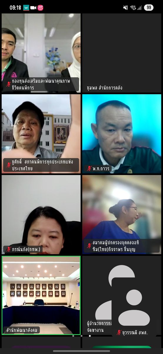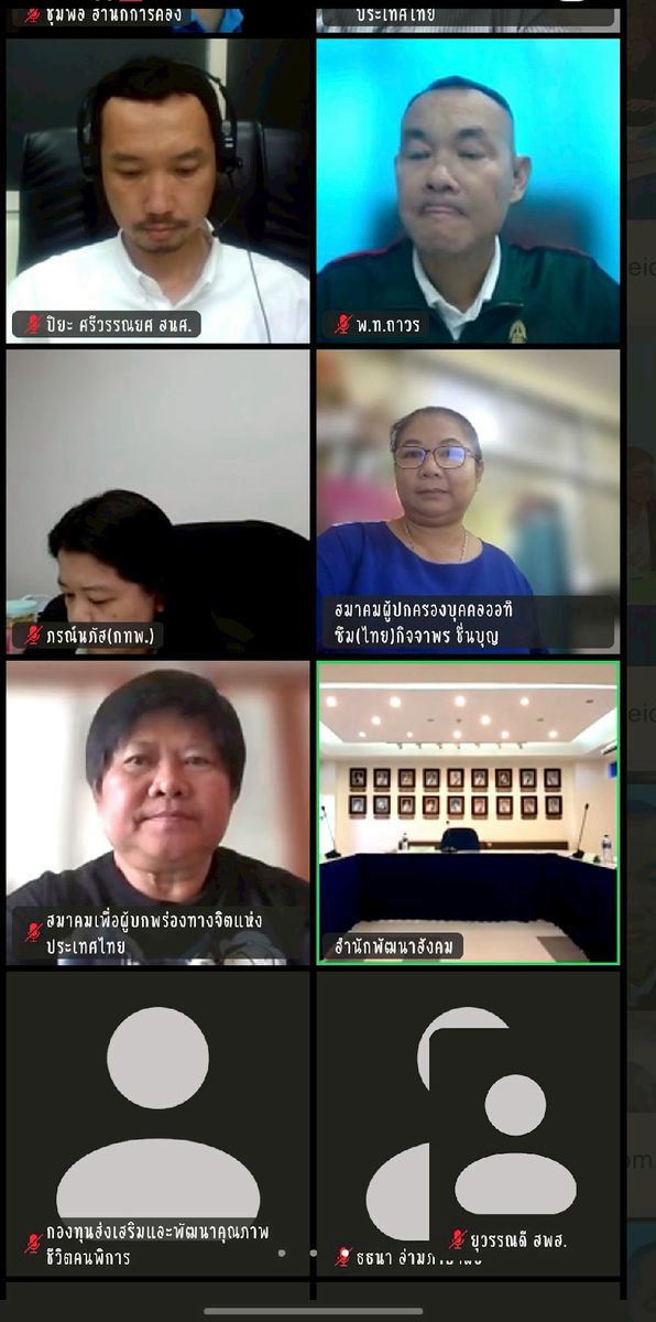 สำหรับการประชุมดังกล่าว มีนายธีรวีร์ วีรวรรณ รองผู้อำนวยการสำนักพัฒนาสังคม นางสาวภาสุรี เอี่ยมทิม ผู้อำนวยการสำนักงานสวัสดิการสังคม นางสาวรุ่งนภา ตรีแก้ว ผู้อำนวยการสำนักงานการส่งเสริมอาชีพ ผู้แทนจากองค์กรด้านคนพิการ และผู้เกี่ยวข้อง ร่วมประชุม ณ ห้องประชุมสำนักพัฒนาสังคม ชั้น 3 และร่วมประชุมผ่านสื่ออิเล็กทรอนิกส์