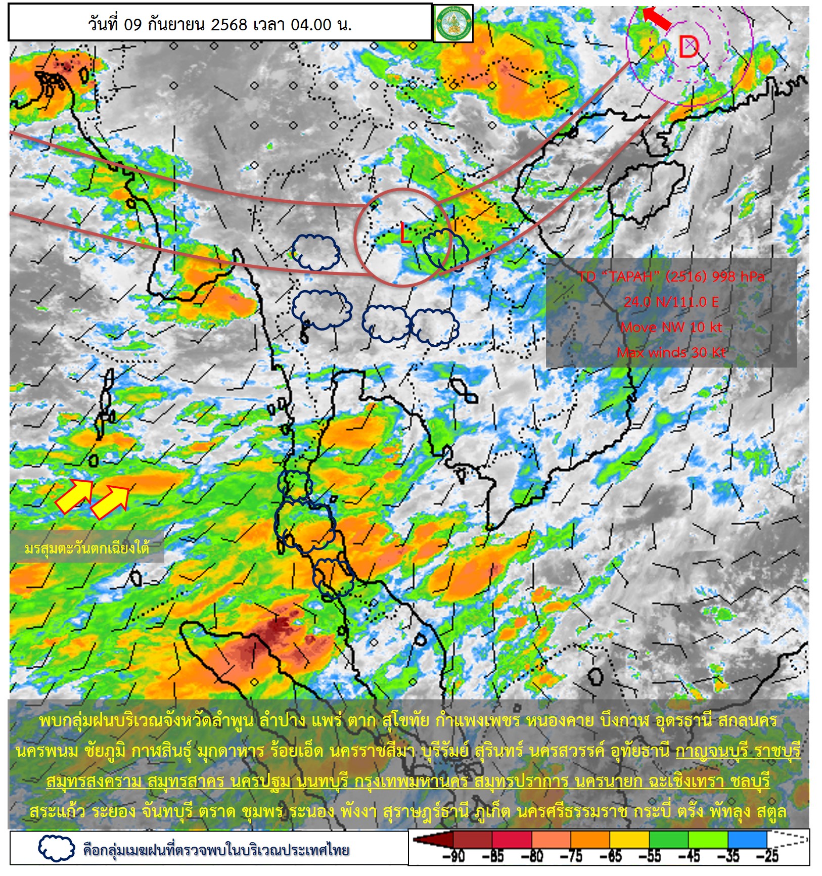 ผู้ว่าฯ ชัชชาติ กล่าวว่า ช่วงสุดสัปดาห์ที่ผ่านมาฝนตกหนักมาก หลายจุดเกิน 100 มม. แต่วันนี้สถานการณ์น่าจะดีขึ้น หากดูจากแผนที่อากาศของกรมอุตุนิยมวิทยา เห็นได้ว่า ร่องความกดอากาศต่ำที่ทำให้เกิดฝนนั้น ที่ผ่านมาอยู่ใกล้กรุงเทพฯ แต่ตอนนี้ขยับขึ้นสูงไปอยู่ที่ภาคเหนือตอนล่างและภาคกลางตอนบน ส่วนเช้านี้ พายุ “ตาปะฮ์” บริเวณประเทศจีนตอนใต้เคลื่อนตัวขึ้นฝั่ง ทำให้ดึงหย่อมความกดอากาศต่ำขึ้นไปทางทิศตะวันออกเฉียงเหนือด้วย แม้ยังมีฝนแต่ก็เบาลง ทำให้เราได้มีโอกาสพร่องน้ำในคลอง