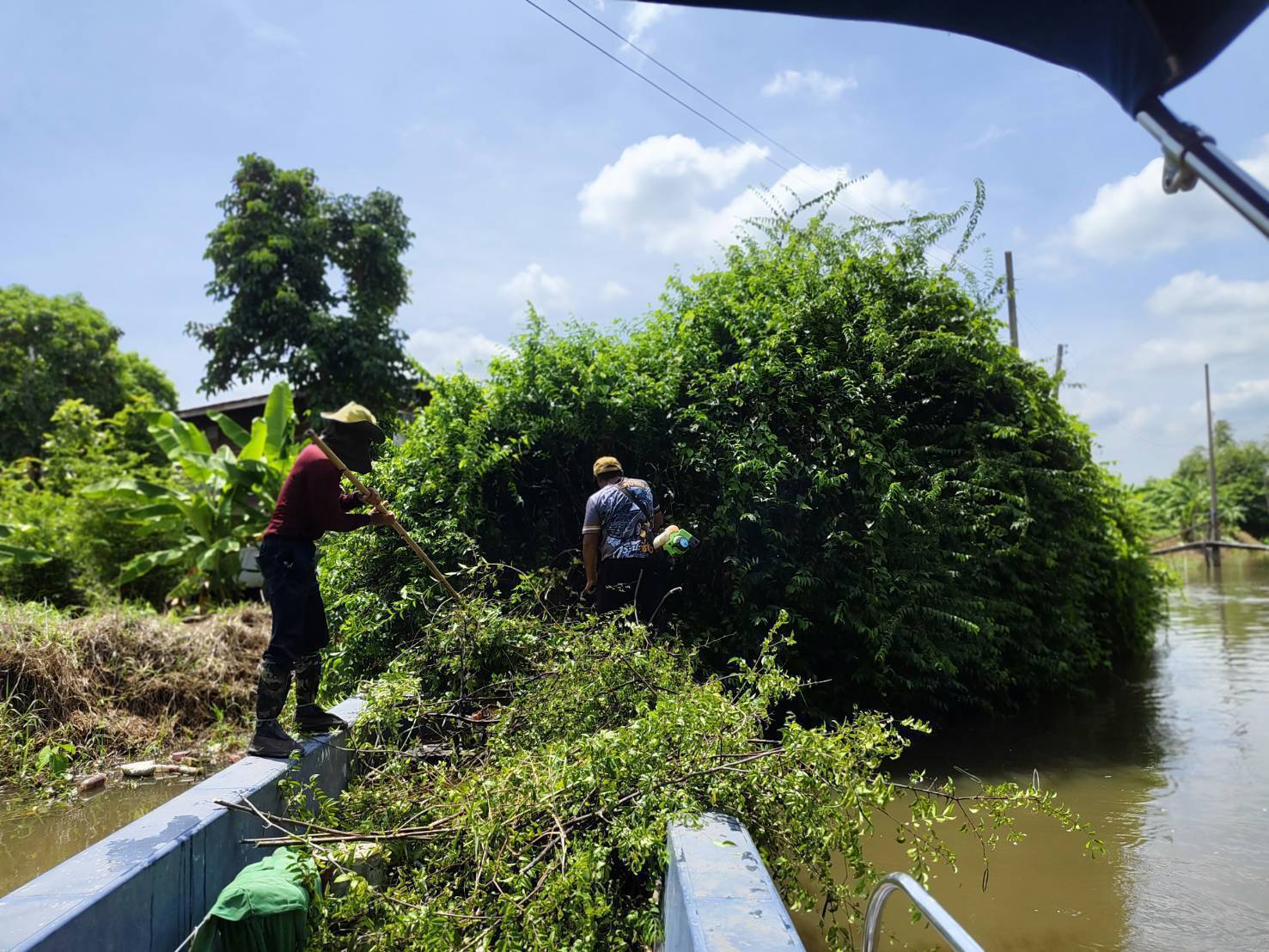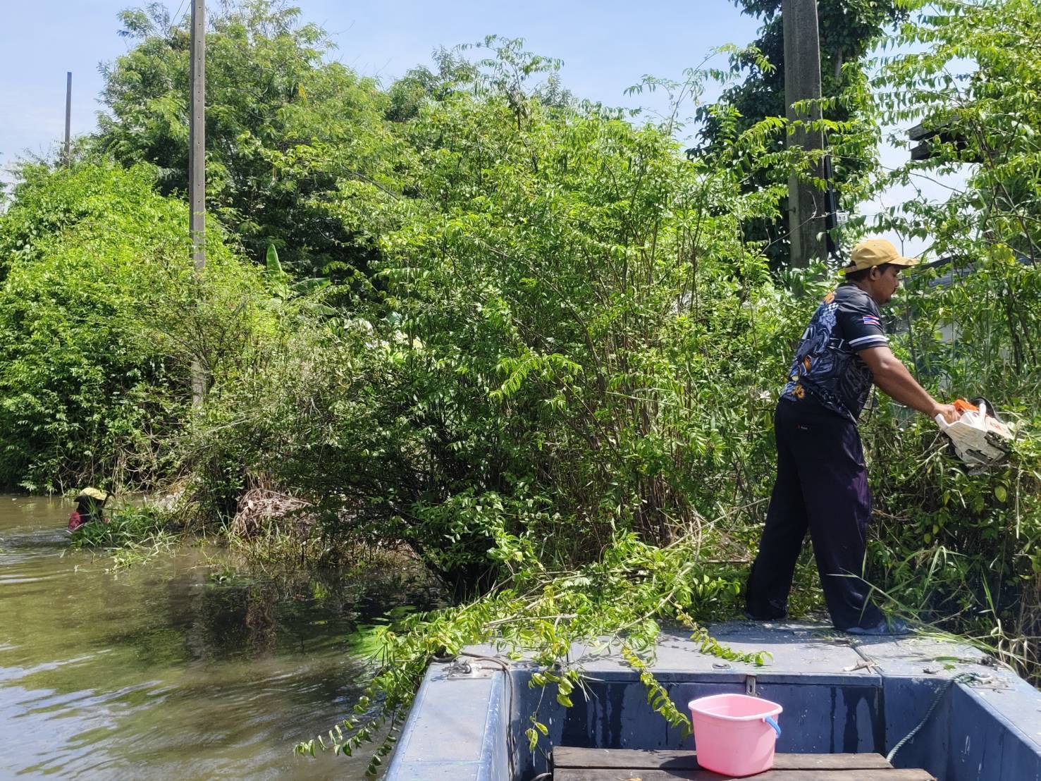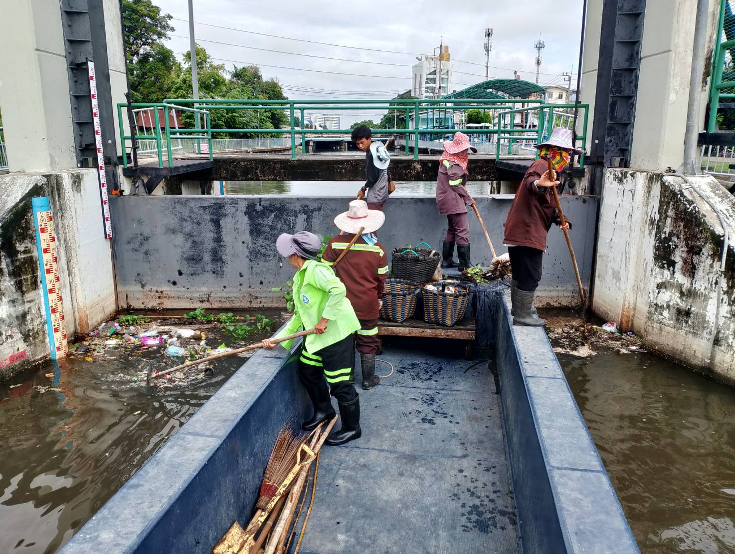 หน่วยงานคลองลำบึงขวางพื้นที่บำรุงรักษา๑กลุ่มงานบำรุงรักษาคลอง๓กองระบบคลอง สำนักการระบายน้ำ จัดเก็บขยะและวัชพืชคลองลำบึงขวางคลองสามประเวศคลองสี่ประเวศ เขตมีนบุรี