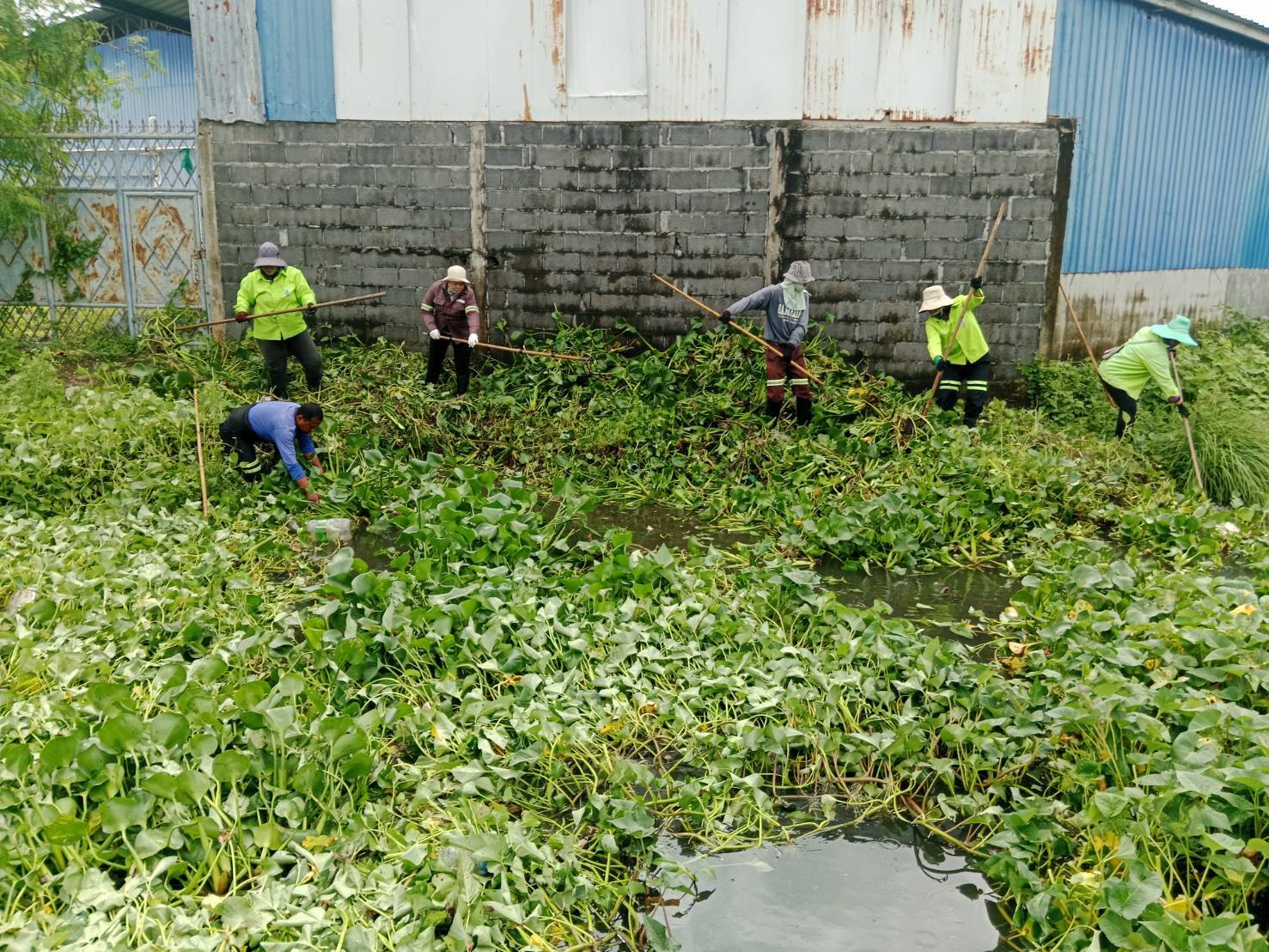 หน่วยงานคลองสนามชัย พื้นที่บำรุงรักษาธนบุรี กลุ่มงานบำรุงรักษาคลอง4 กองระบบคลอง ออกปฎิบัติงานเก็บขยะและวัชพืชคลองสนามชัย ช่วงเทียนทะเลซอย22 พื้นที่เขตบางขุนเทียน