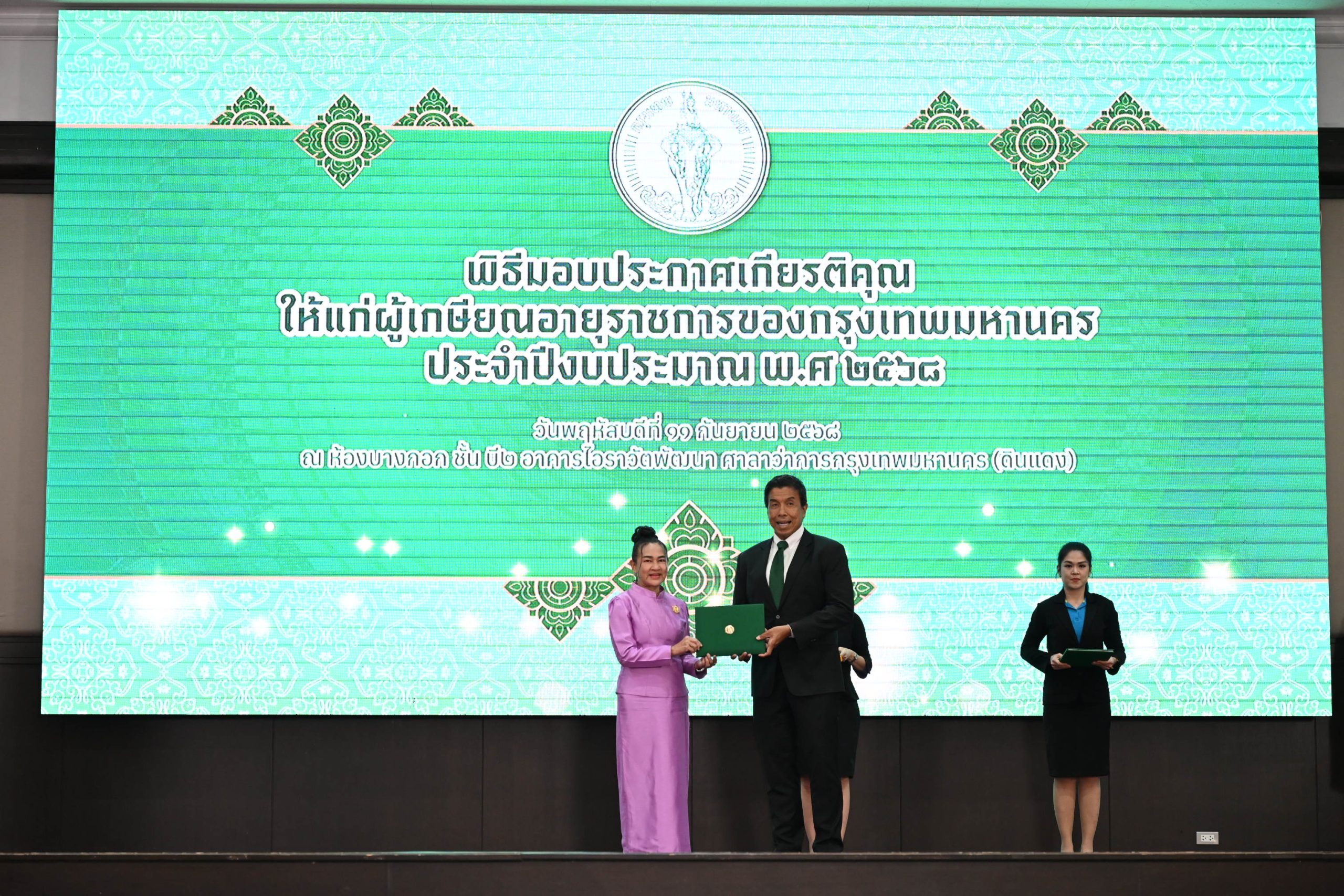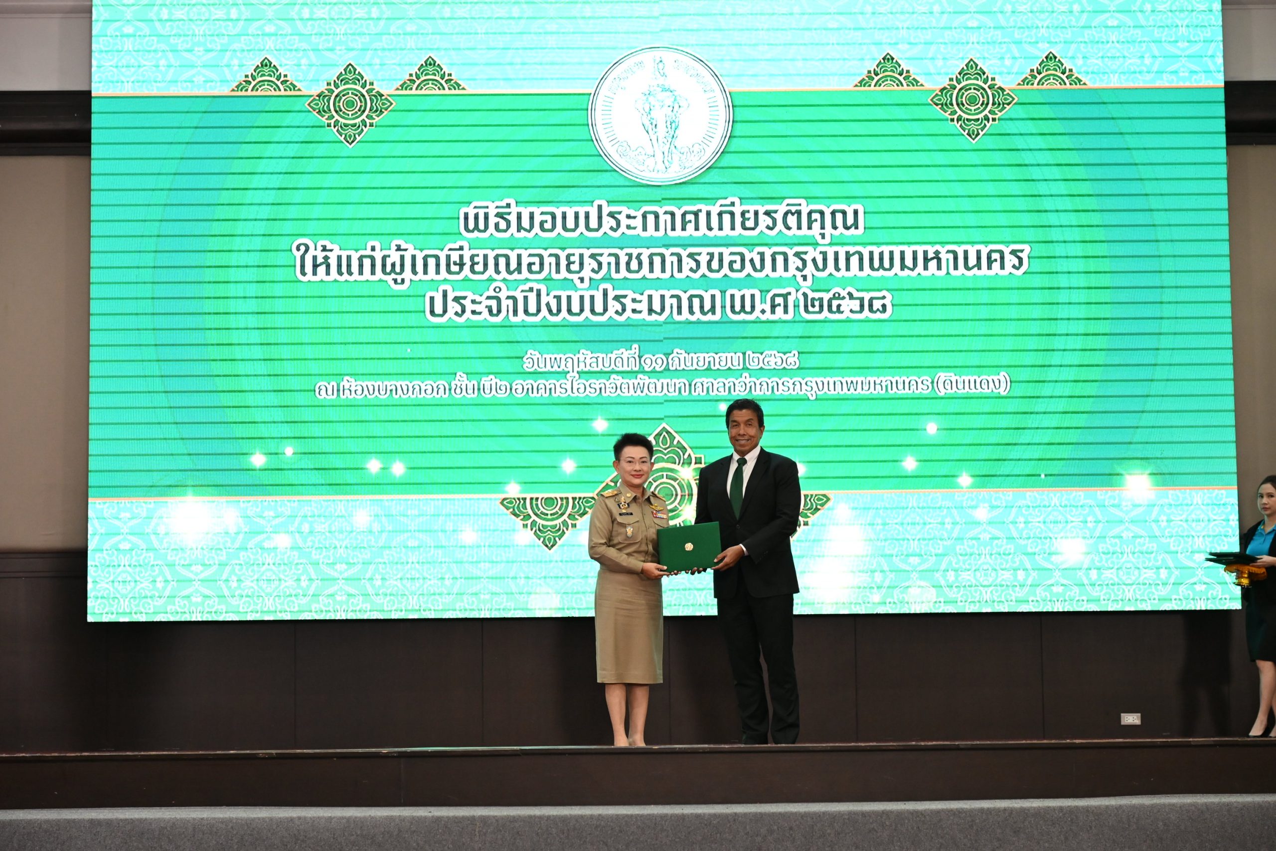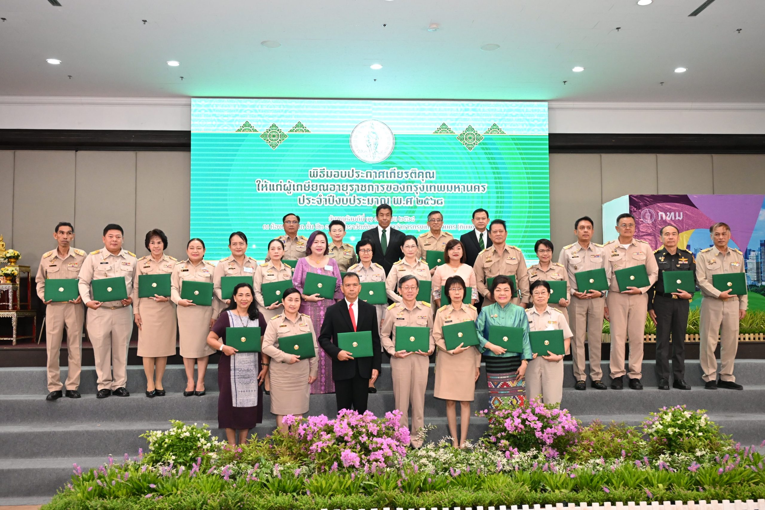 กรุงเทพมหานคร โดย สำนักงานการเจ้าหน้าที่ จัดพิธีมอบประกาศเกียรติคุณให้แก่ผู้ที่เกษียณอายุราชการประจำปีงบประมาณ พ.ศ. 2568 ขึ้น ด้วยความระลึกถึงและเพื่อเป็นเกียรติแก่ข้าราชการกรุงเทพมหานครสามัญ ข้าราชการครูและบุคลากรทางการศึกษากรุงเทพมหานคร และลูกจ้างประจำกรุงเทพมหานครที่ปฏิบัติงานในโรงเรียน ที่ปฏิบัติหน้าที่จนครบเกษียณอายุราชการด้วยความซื่อสัตย์ สุจริต ตั้งใจทุ่มเทแรงกาย แรงใจ และสติปัญญา ความสามารถ ช่วยกันพัฒนางานของกรุงเทพมหานครให้เจริญก้าวหน้าตลอดระยะเวลาที่รับราชการ