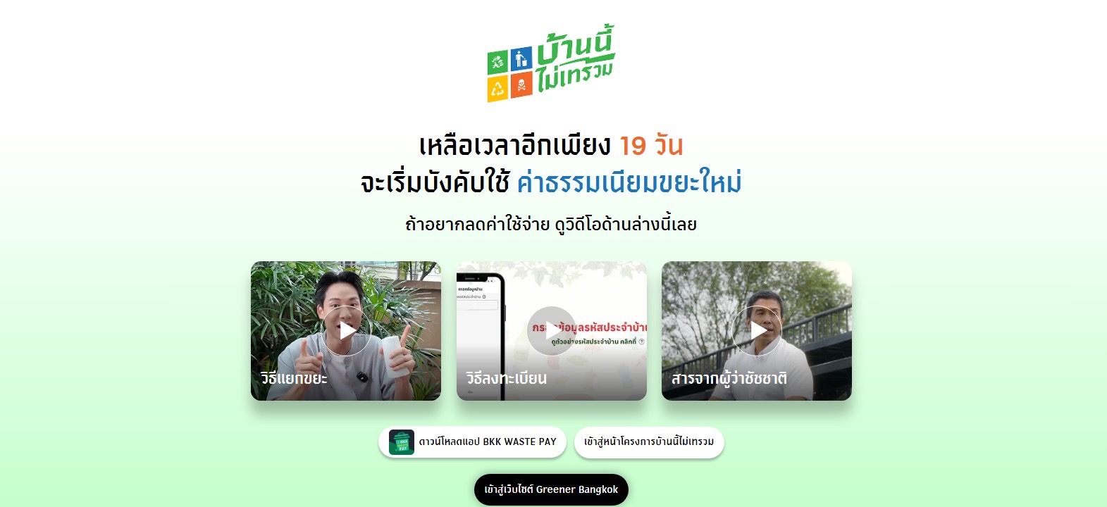 ที่สำคัญในเวลานี้ เว็บไซต์ Greener Bangkok เป็นแหล่งข้อมูลที่สะดวกและเป็นประโยชน์สำหรับการเข้าร่วม #โครงการบ้านนี้ไม่เทรวม ทั้งวิธีการแยกขยะอย่างถูกต้อง แนวทางจัดการขยะของ กทม. ตั้งแต่ต้นทางถึงปลายทาง อีกด้วย