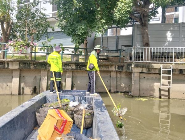 พื้นที่ 2 กลุ่มงาน1กรบ.หน่วยงานดุสิตเรือพร้อมเจ้าหน้าที่ดำเนินการตักขยะกำจัดวัชพืช คลองสามเสน เขตดุสิต พร้อม ติดตั้งบันไดทางขึ้นขยะหน่วยงานดุสิตครับ