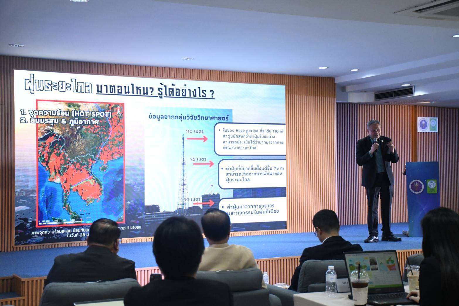 ที่ปรึกษาฯ พรพรหม กล่าวว่า กิจกรรมวันนี้ เราจะได้เรียนรู้ผลกระทบจากภาคเกษตรและการเผาในที่โล่งต่อ PM2.5 ในกรุงเทพฯ โดยมีการนำเสนอและแลกเปลี่ยนความคิดเห็นในหัวข้อสำคัญ อาทิ การวิเคราะห์ การเคลื่อนที่ของฝุ่นข้ามแดนเข้าสู่พื้นที่กรุงเทพฯ ความสัมพันธ์ระหว่างฤดูกาลเพาะปลูกพืชเศรษฐกิจ เช่น ข้าว อ้อย ข้าวโพด กับการเผาในที่โล่ง รวมถึงอุตสาหกรรมอ้อยและน้ำตาลส่งผลต่อการสะสมของฝุ่น PM2.5 อย่างไร นอกจากนี้จะได้รู้ถึงผลกระทบจากภาคอุตสาหกรรมด้วย เวลาที่พูดถึงฝุ่น PM2.5 หลายคนมักจะนึกถึงรถยนต์ แต่แหล่งที่มีความสำคัญอีกแหล่ง ซึ่งเป็นหัวข้อการนำเสนอในวันนี้ คือภาคอุตสาหกรรม และการเผาในที่โล่ง ที่ก่อให้เกิดฝุ่น PM2.5 ส่งผลกระทบต่อคนกรุงเทพฯ อย่างไรก็ตาม เมื่อวันที่ 16 กันยายน 2568 เว็บไซต์ ราชกิจจาณุเบกษา ประกาศคณะกรรมการสิ่งแวดล้อมแห่งชาติ เรื่อง กำหนดให้ท้องที่เขตกรุงเทพมหานคร (กทม.) “เขตควบคุมมลพิษ” พ.ศ. 2568 เพื่อเพิ่มอำนาจและความสามารถของกรุงเทพฯ ในการจัดการและแก้ไขปัญหาฝุ่นละออง PM2.5 มากขึ้น ซึ่งกรุงเทพมหานครได้ประสานกรมโรงงานอุตสาหกรรม ตรวจสอบและควบคุมสถานประกอบการที่ก่อให้เกิดปัญหาฝุ่น PM2.5 โดยเฉพาะสถานประกอบการที่ใช้หม้อไอน้ำในการผลิต สำหรับการเผาในที่โล่งมาจากส่วนใด เพื่อจัดการแก้ไขปัญหา และหวังว่าการจัดเสวนาในวันนี้จะจุดประกายความร่วมมือ ที่ช่วยผลักดันให้กรุงเทพฯ ปราศจากฝุ่น สร้างคุณภาพชีวิตที่ดีให้กับคนกรุงเทพฯ