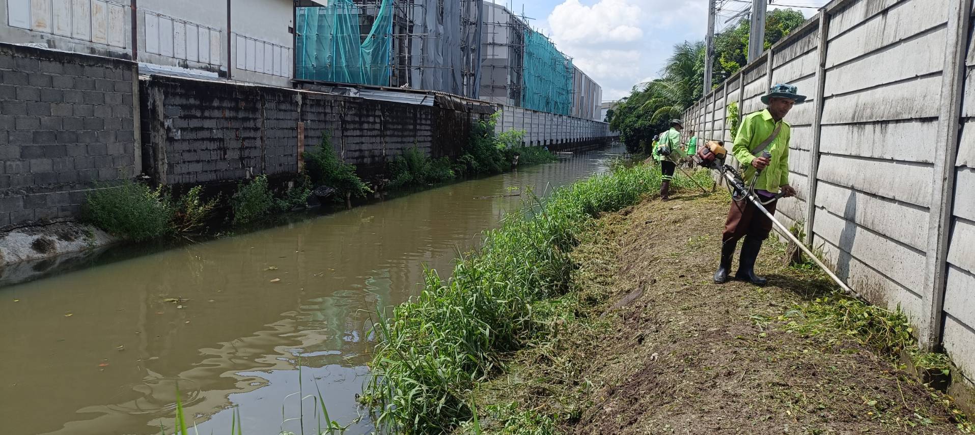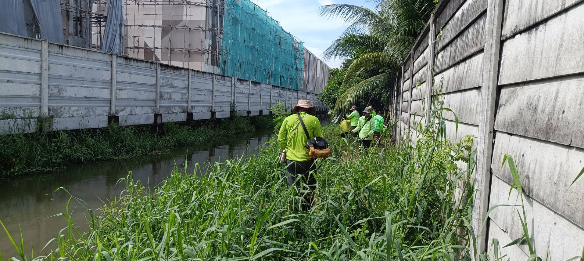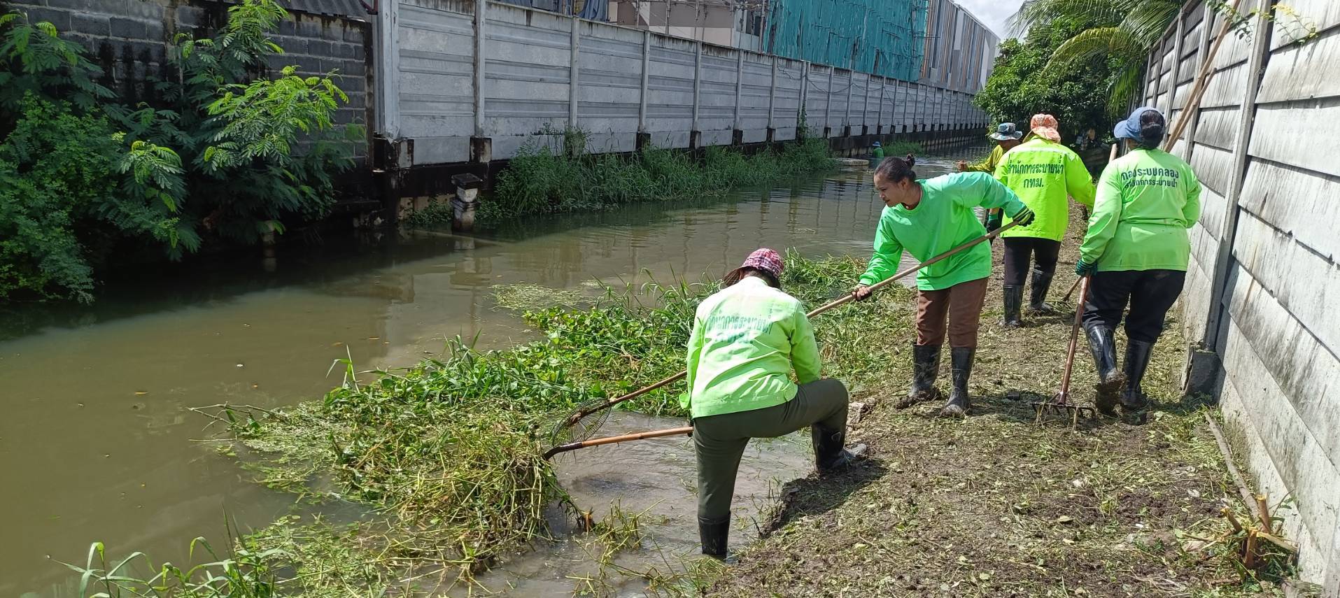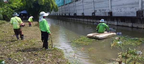 หน่วยงานคลองบึงหนองบอนพื้นที่ 2 กลุ่มงาน 3 กองระบบคลองสำนักการระบายน้ำจัดเจ้าหน้าที่จำนวน 15 คนพร้อมรถบรรทุกทะเบียน54-7650ดำเนินการจัดเก็บขยะวัชพืชคลองมะขามเทศซอยเฉลิมพระเกียรติร 9/65ช่วงตลาดราชพฤกษ์เขตประเวศ