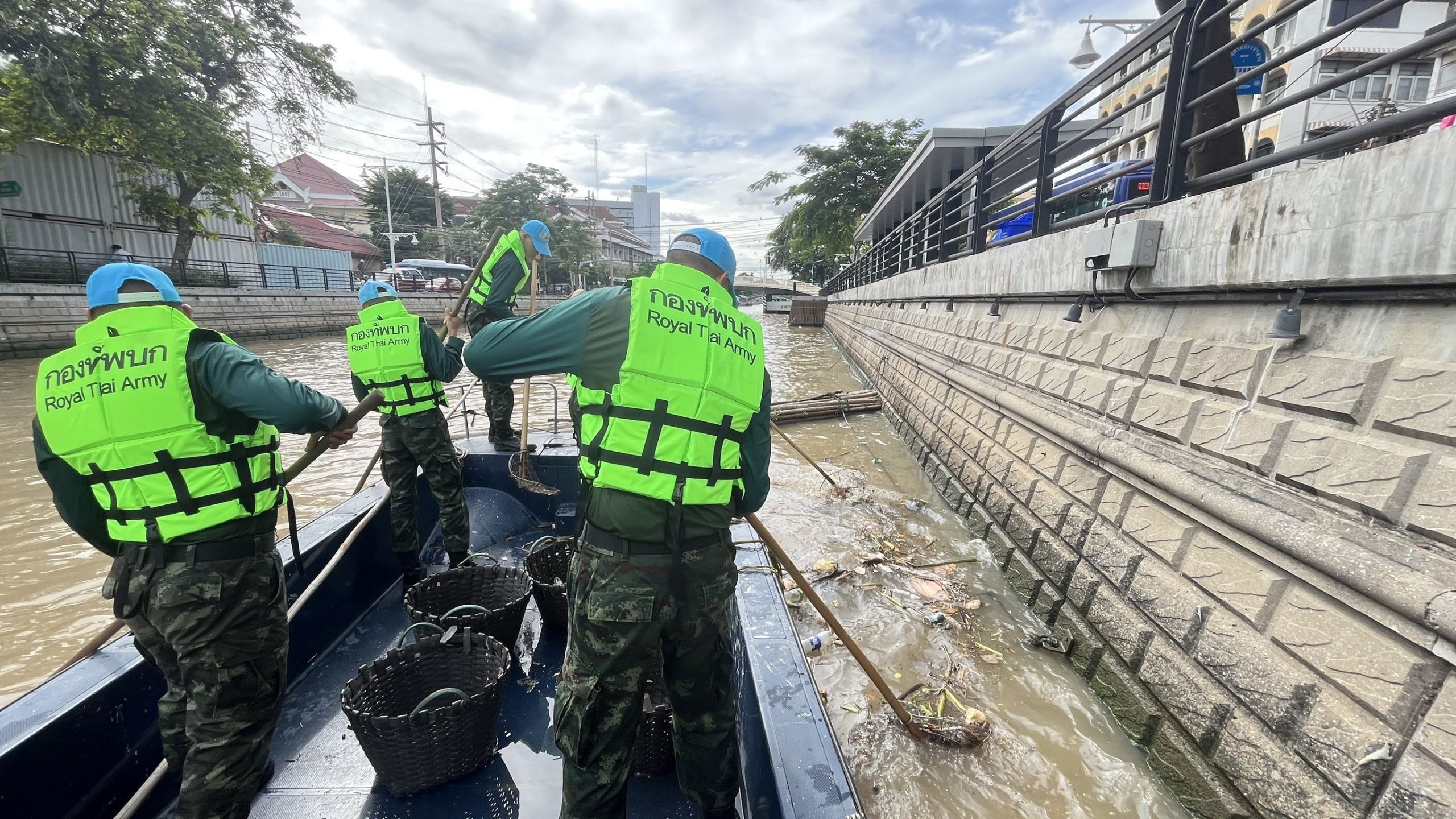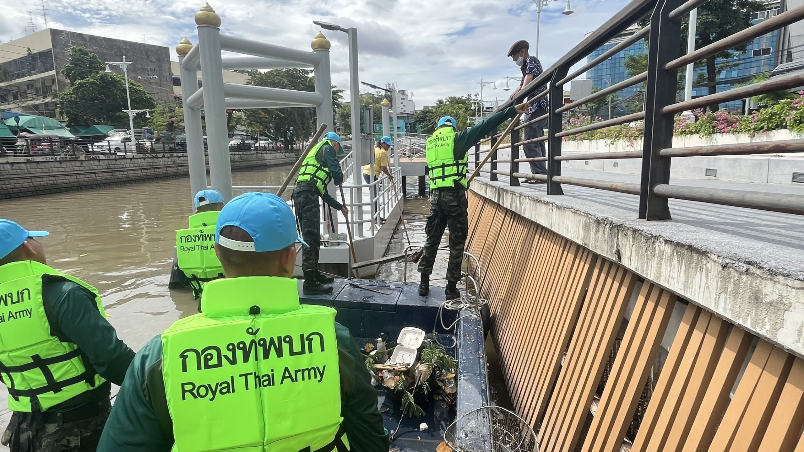 เจ้าหน้าที่พื้นที่บำรุงรักษาคลอง1กองระบบคลองสำนักการระบายน้ำคลองผดุงหน่วยงาน(เทเวศร์)ใด้ร่วมกับกองพันทหารราบหน่วยบันชาการรักษาดินแดนทำกิจกรรมจิตอาสาตักขยะและตัดต้นไม้จาก ปตร.เทเวศร์ตลอดช่วงสะพานมัฆวานถึงสี่แยกมหานาคตลอด2ฝั่งเขตดุสิตเขตพระนครป้อมปราบถึงแยกมหานาคปริมาณขยะและวัชพืช0.5ตันค่ะ