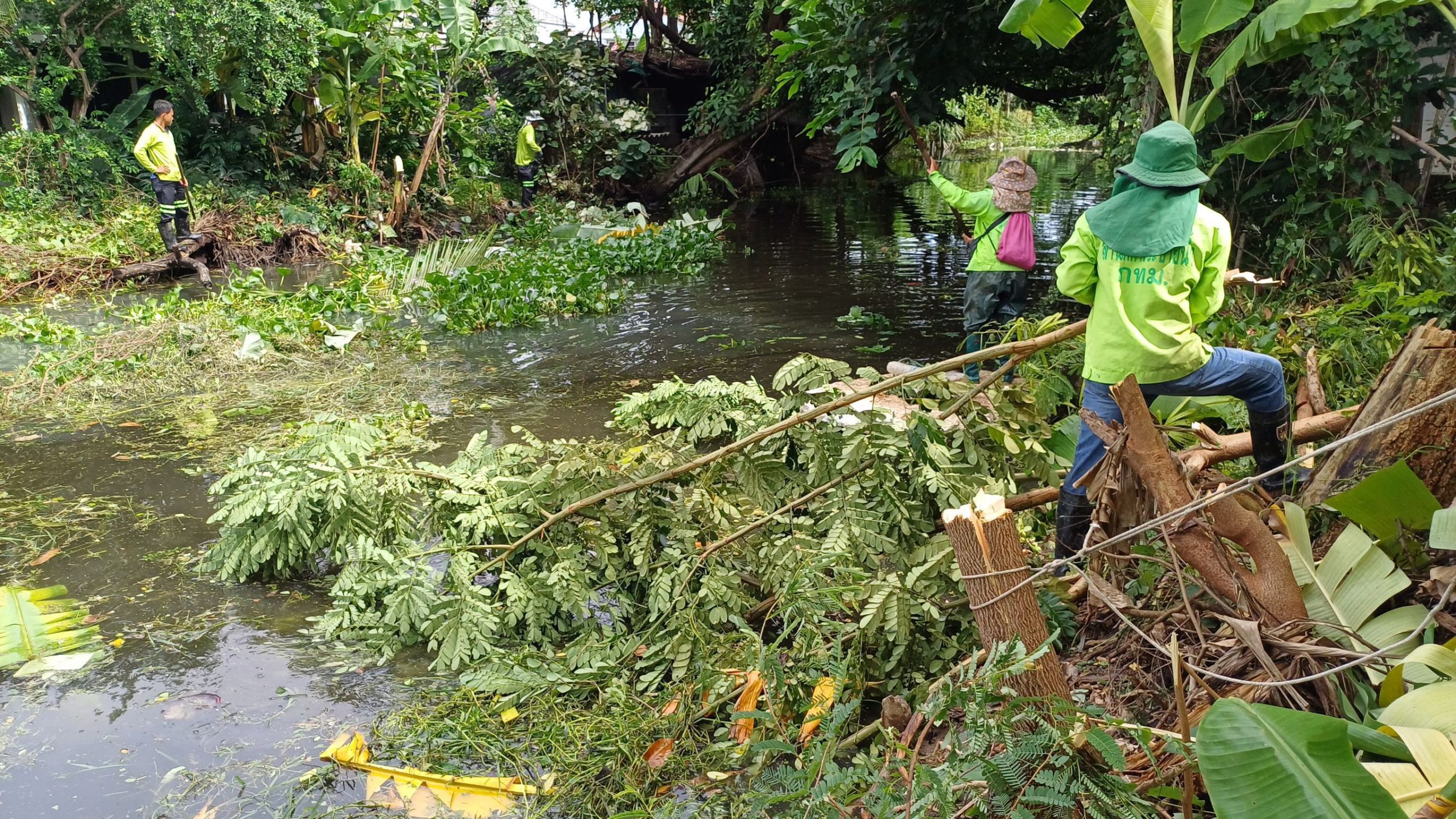 หน่วยเปิดทางน้ำไหล2 พื้นที่2 กลุ่มฯ3 กองระบบคลอง จัดเจ้าหน้าที่18คน รถบรรทุกจ้างเหมา ทะเบียน-53-9871 ดำเนินการเก็บขยะวัชพืชคลองปลัดเปรียง ซ.เฉลิมพระเกียรติ.ร9/30 ช่วงศูนย์บริการสาธารณสุข เขต.ประเวศ