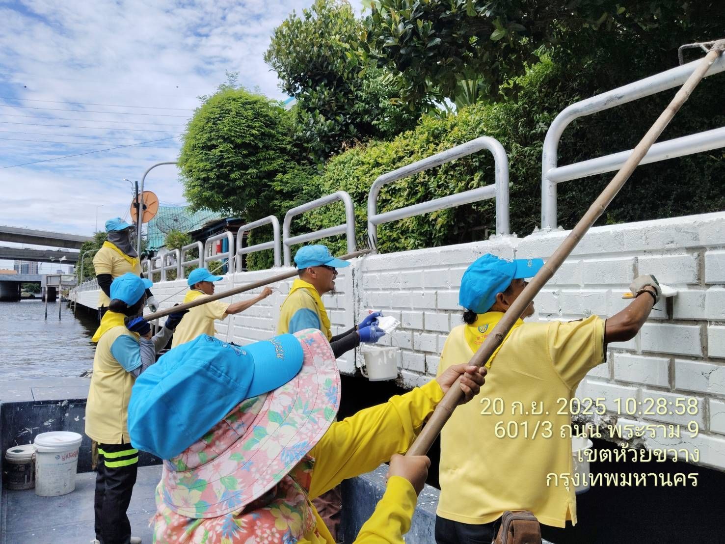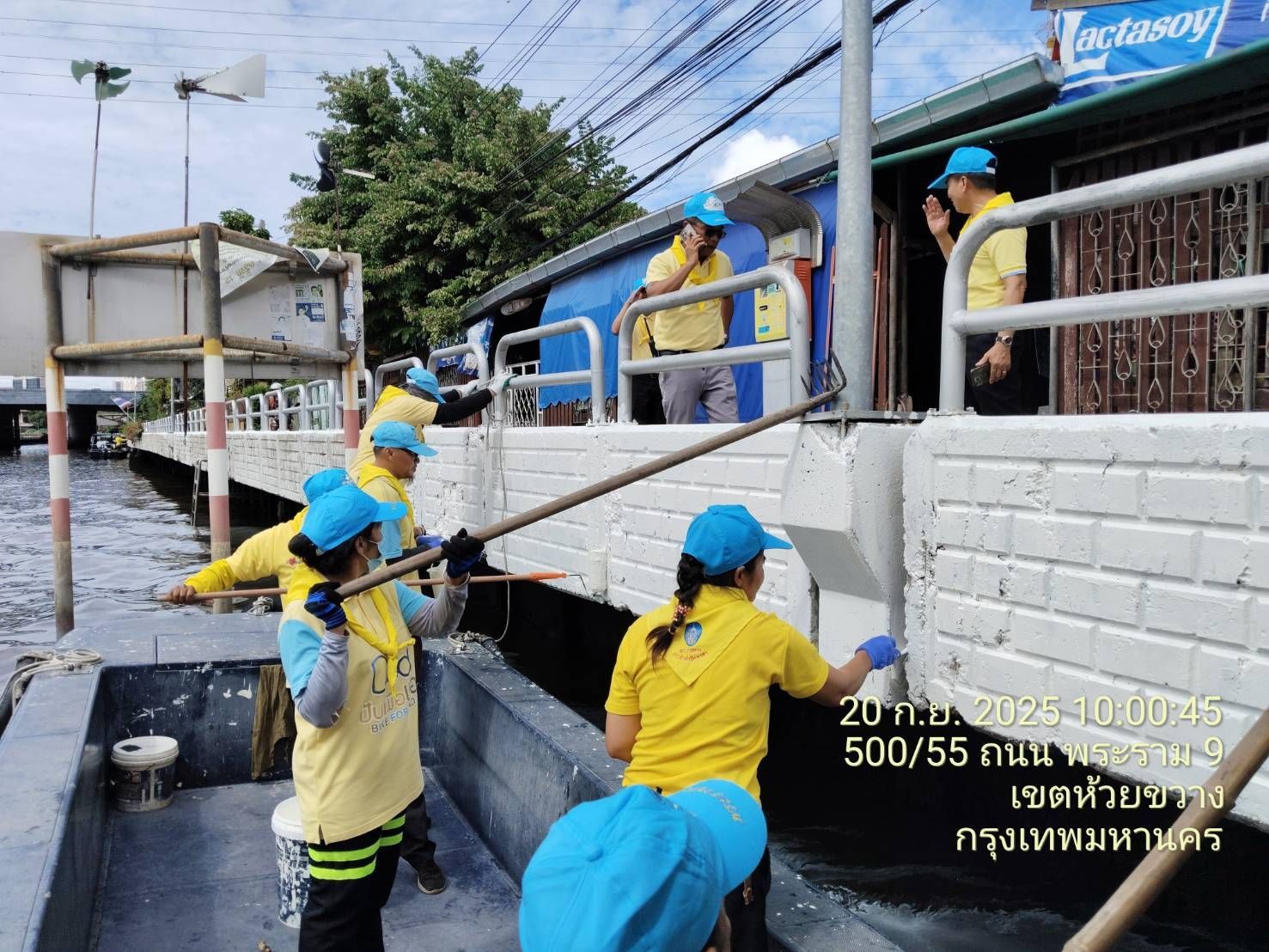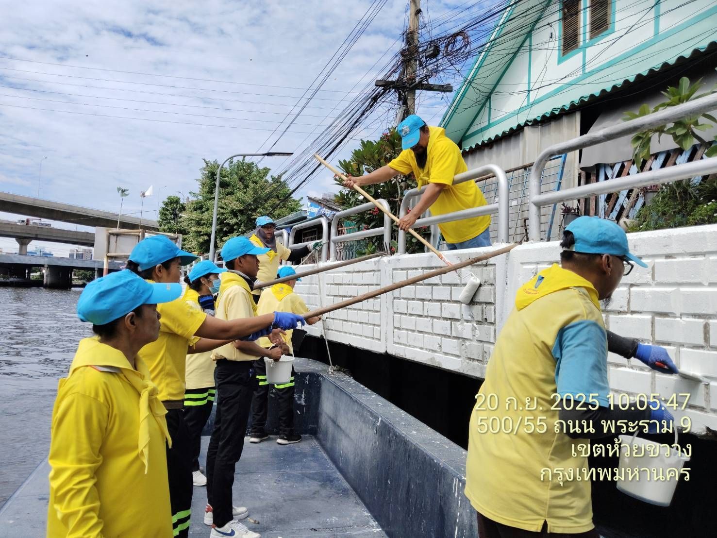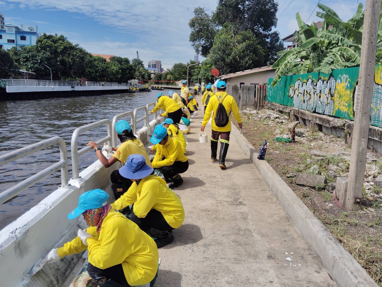 จิตอาสาพระราชทาน เราทำความดีด้วยหัวใจ  ทาสีผนังกันตก คลองแสนแสบ ช่วงอุโมงค์พระราม9 ถึงซอยเพชรพระราม8 เขตห้วยขวาง -เขตบางกะปิ