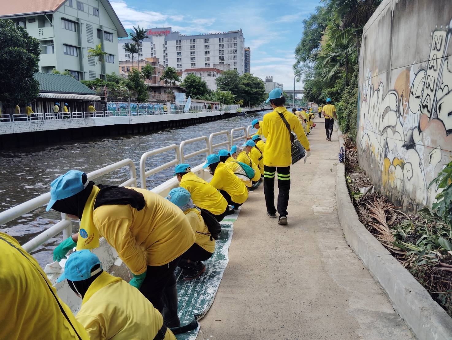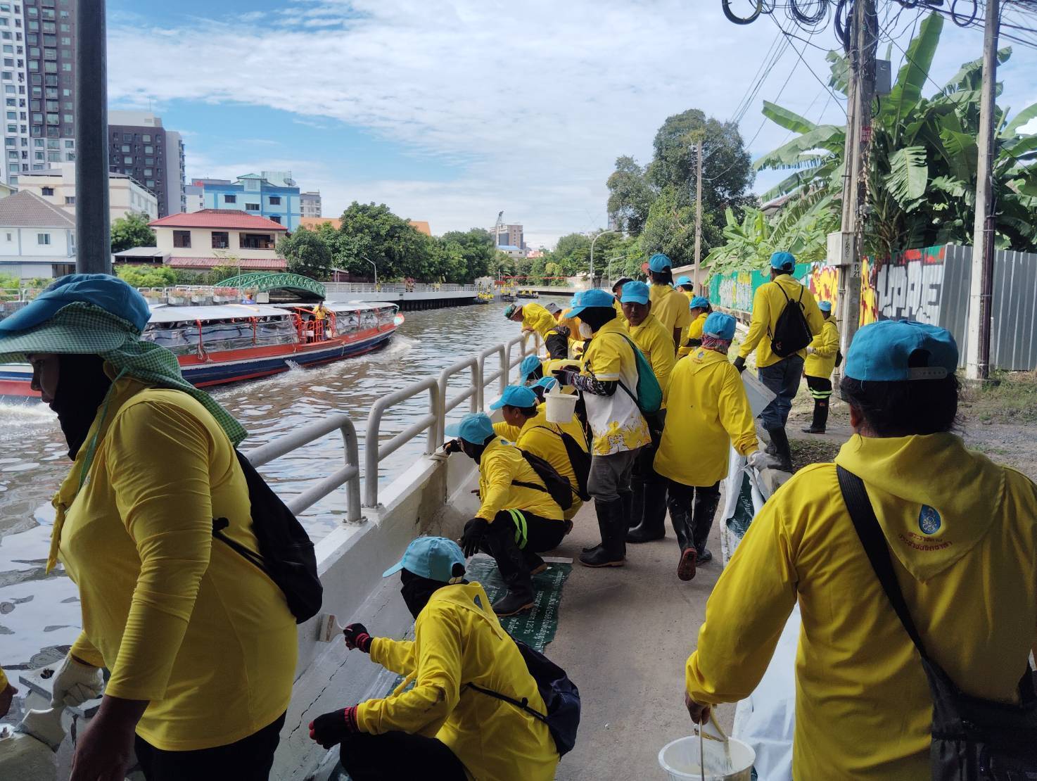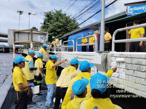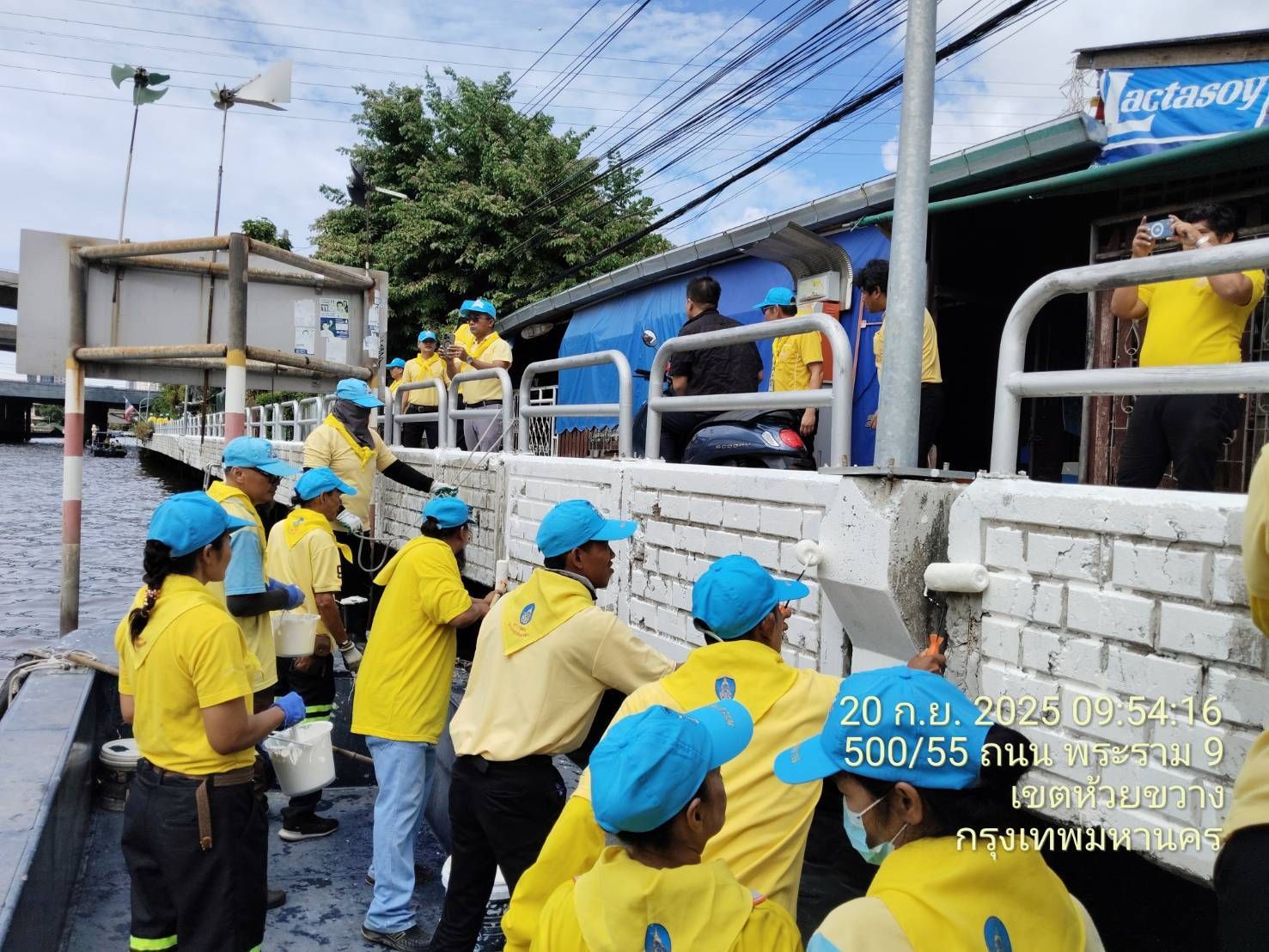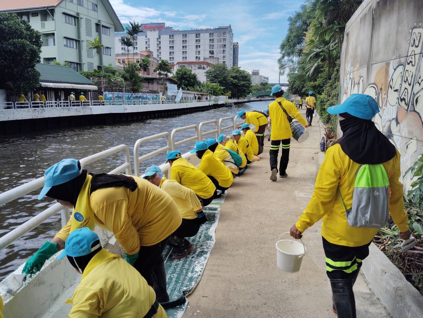 จิตอาสาพระราชทาน เราทำความดีด้วยหัวใจ  ทาสีผนังกันตก คลองแสนแสบ ช่วงอุโมงค์พระราม9 ถึงซอยเพชรพระราม8 เขตห้วยขวาง -เขตบางกะปิ