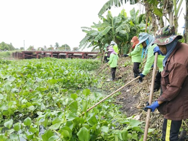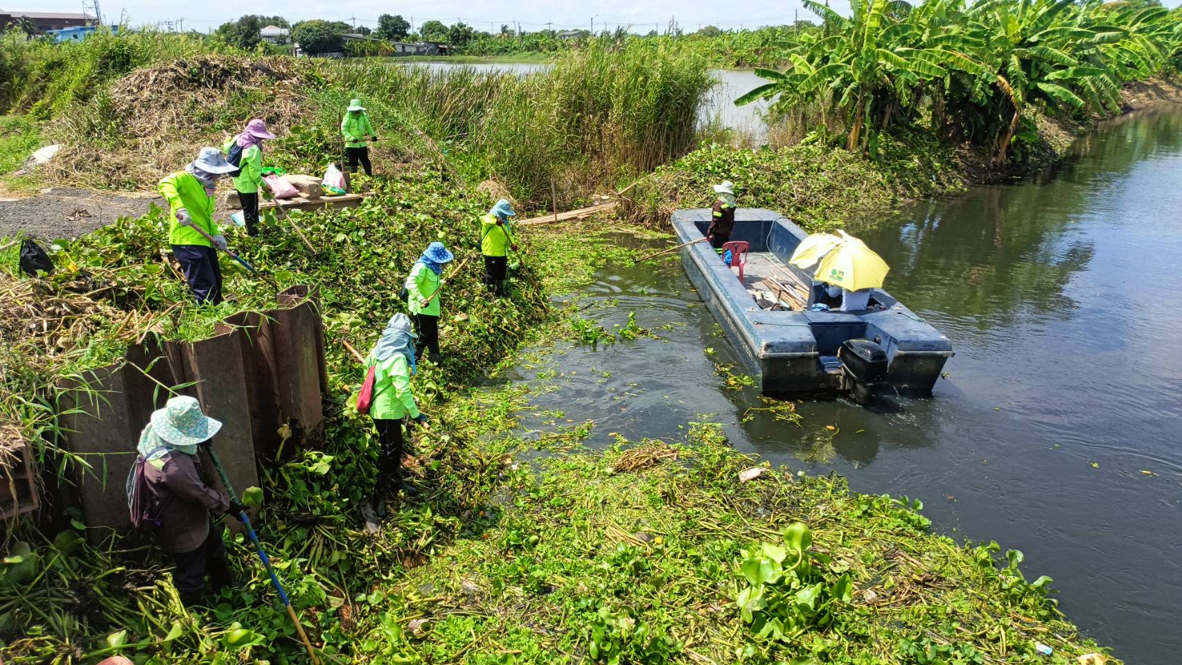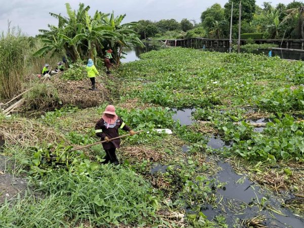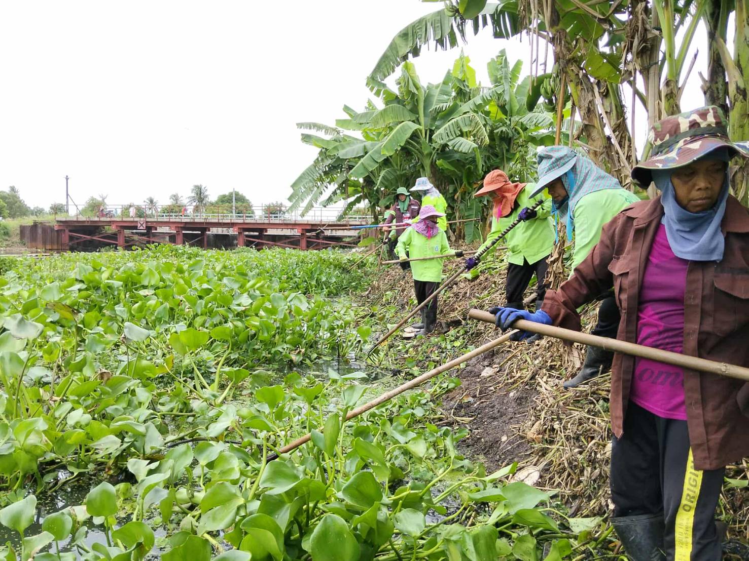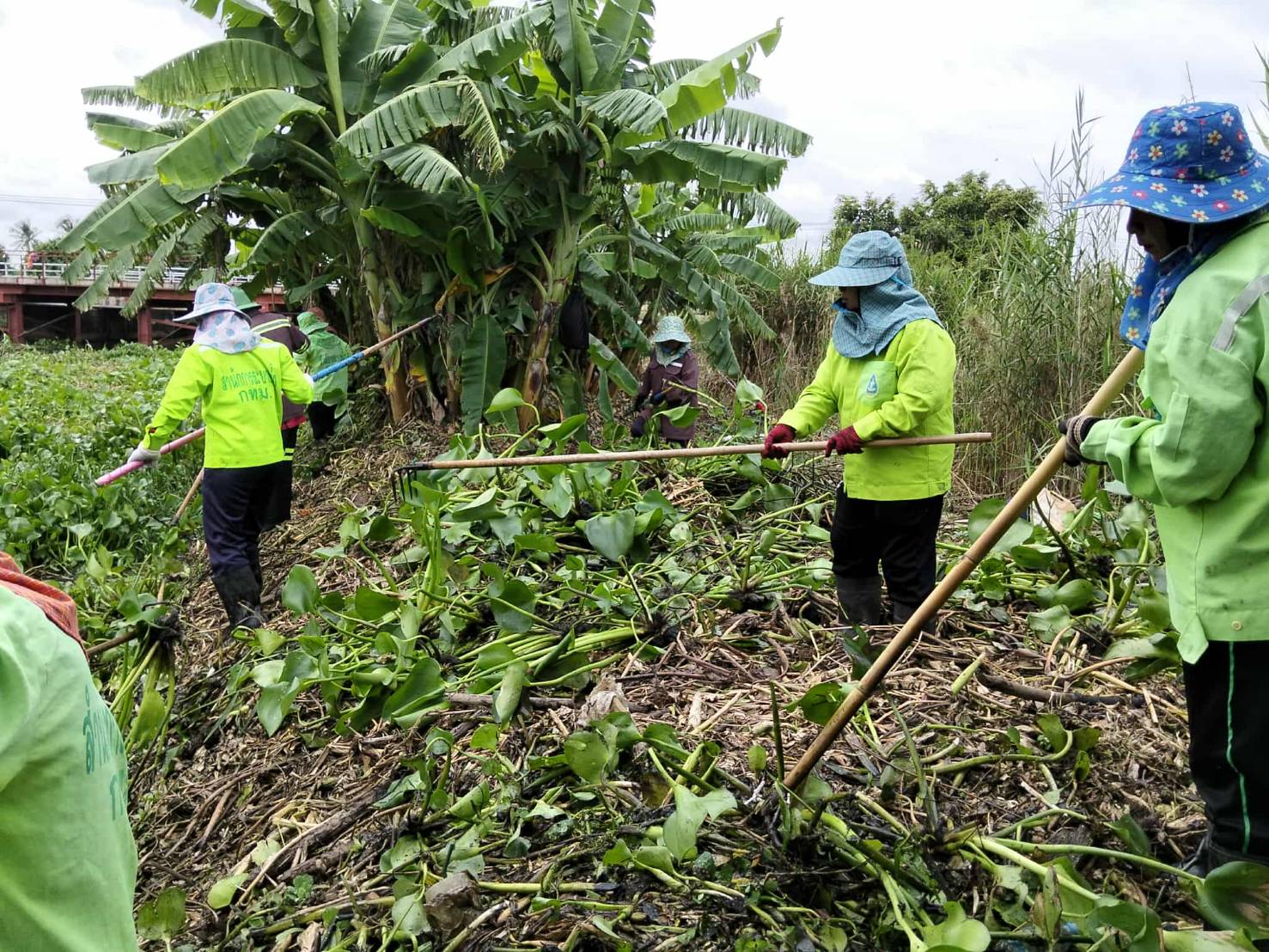 หน่วยงานคลองประเวศฯ5 พื้นที่2กลุ่มงานฯ3กองระบบคลองสำนักการระบายน้ำจัดเจ้าหน้าที่14 คนเรือ1ลำ จัดเก็บวัชพืชคลองทับยาว ช่วงสะพานรถไฟ เขตลาดกระบัง