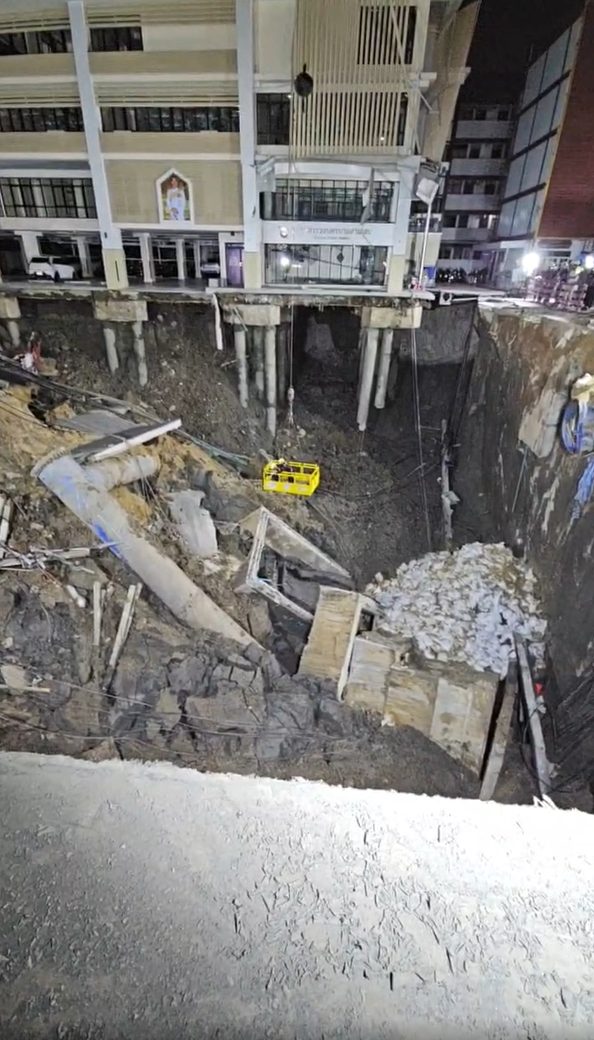 “ครั้งนี้ไม่เหมือนตึก สตง. ถล่ม เพราะไม่มีผู้ติดค้างให้เป็นห่วงเรื่องชีวิตและกู้ชีพ แต่คราวนี้เป็นการสู้กับธรรมชาติ สู้กับดิน น้ำ ทราย สู้กับช่องว่างที่เปิดให้ดินไหลลงไป และการหยุดความเสียหายที่เกิดขึ้น” ผู้ว่าฯ ชัชชาติ กล่าว