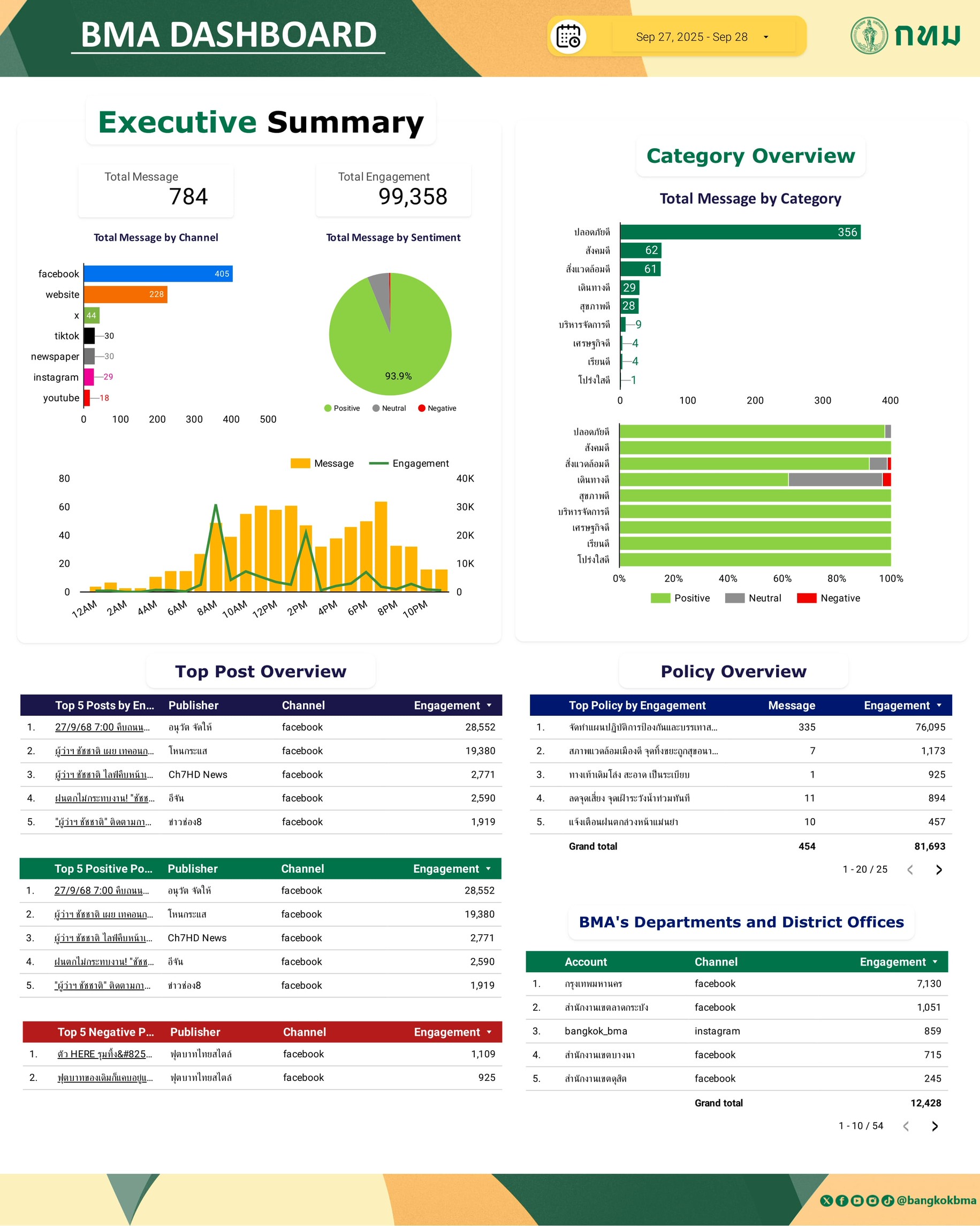 ภาพรวมการกล่าวถึงกรุงเทพมหานครในสื่อออนไลน์ วันที่ 28 ก.ย. 68