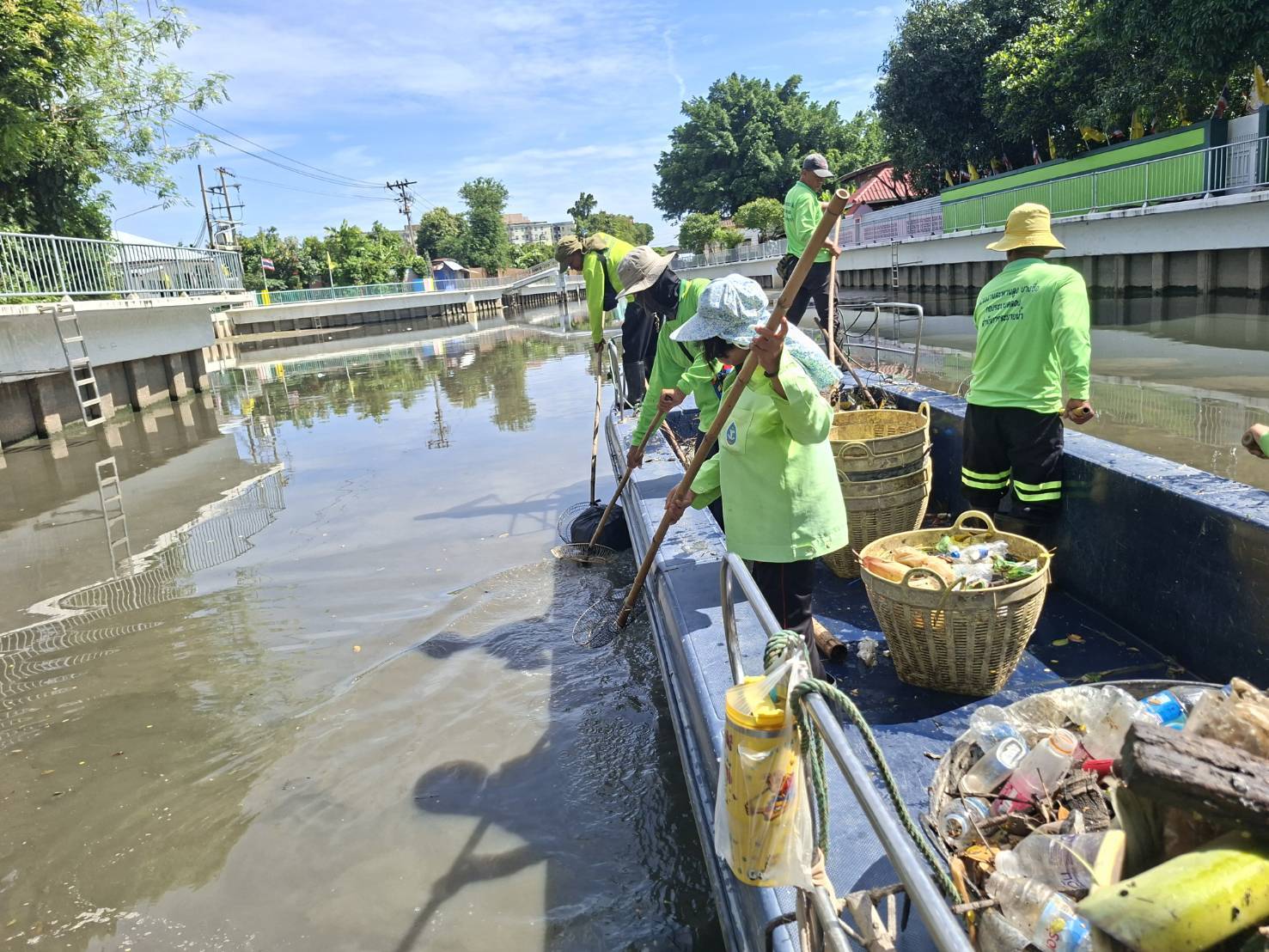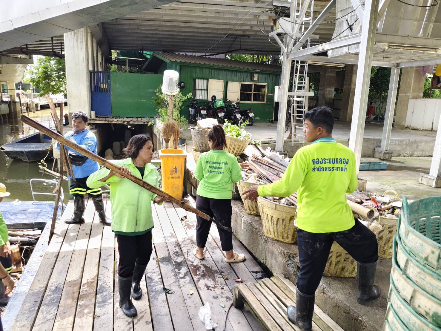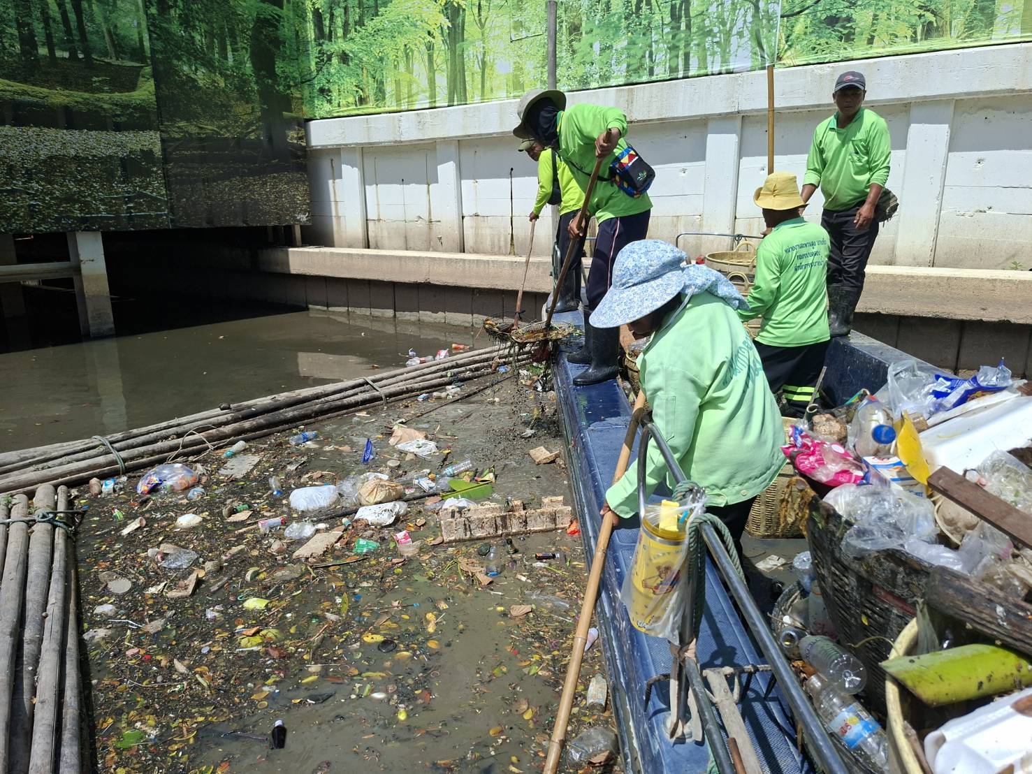 เจ้าหน้าที่ เก็บขยะและวัชพืชคลองเปรมประชากรช่วงชุมชนตึกแดงบางซื่อเขตบางซื่อถึงสะพานงามวงศ์วานเขตจตุจักร