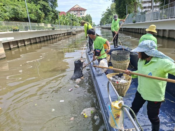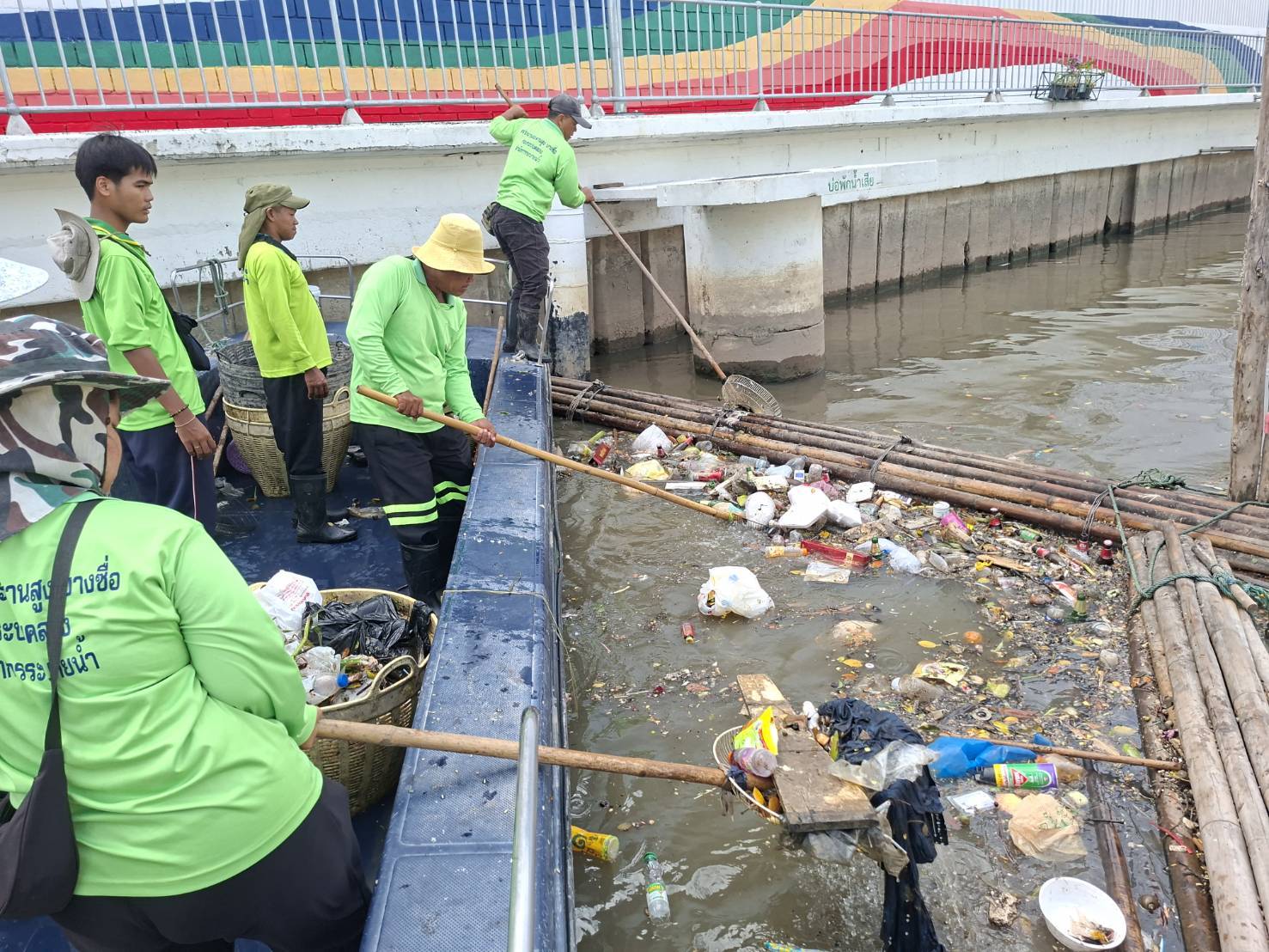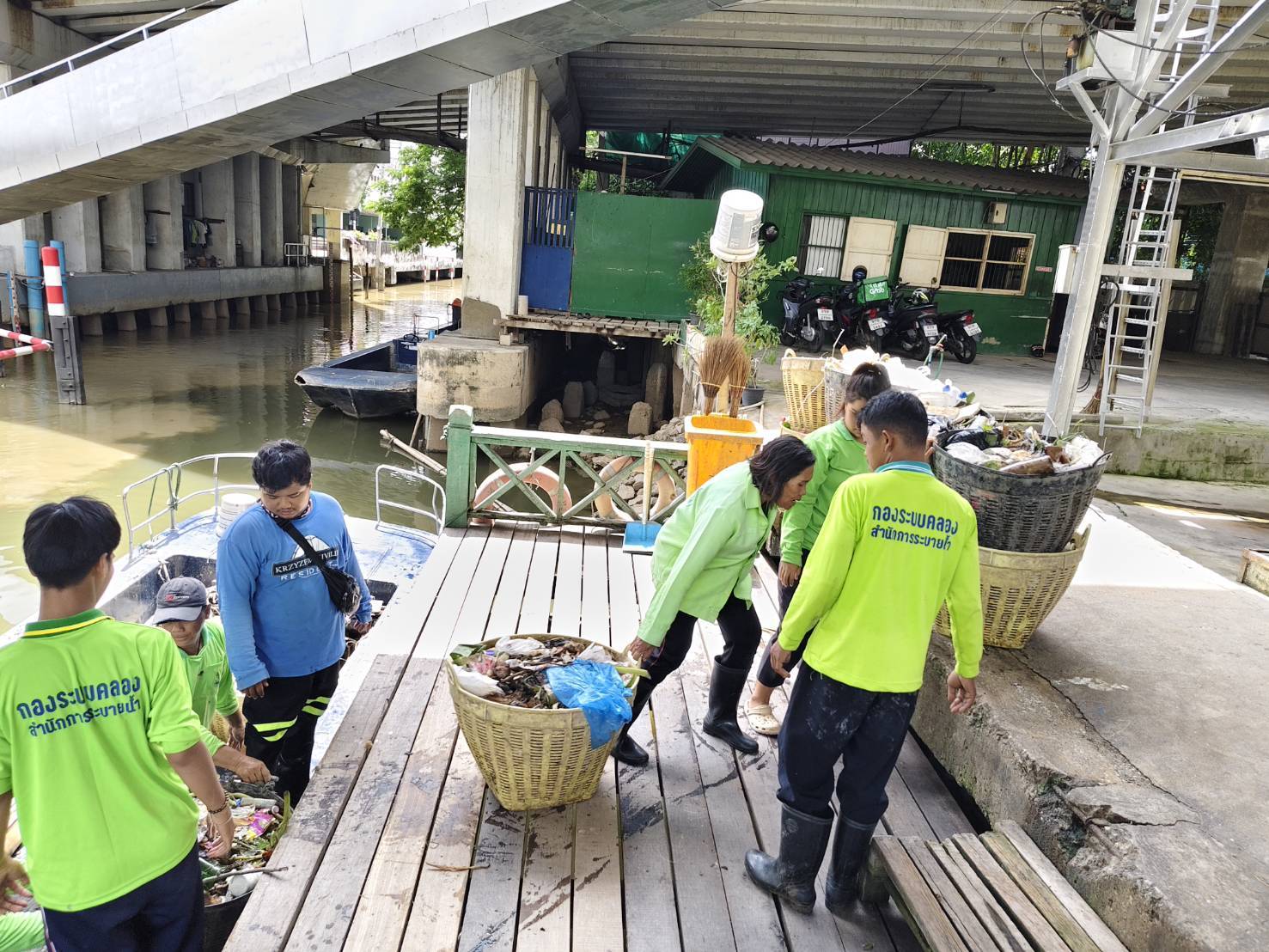 เจ้าหน้าที่ เก็บขยะและวัชพืชคลองเปรมประชากรช่วงชุมชนตึกแดงบางซื่อเขตบางซื่อถึงสะพานงามวงศ์วานเขตจตุจักร