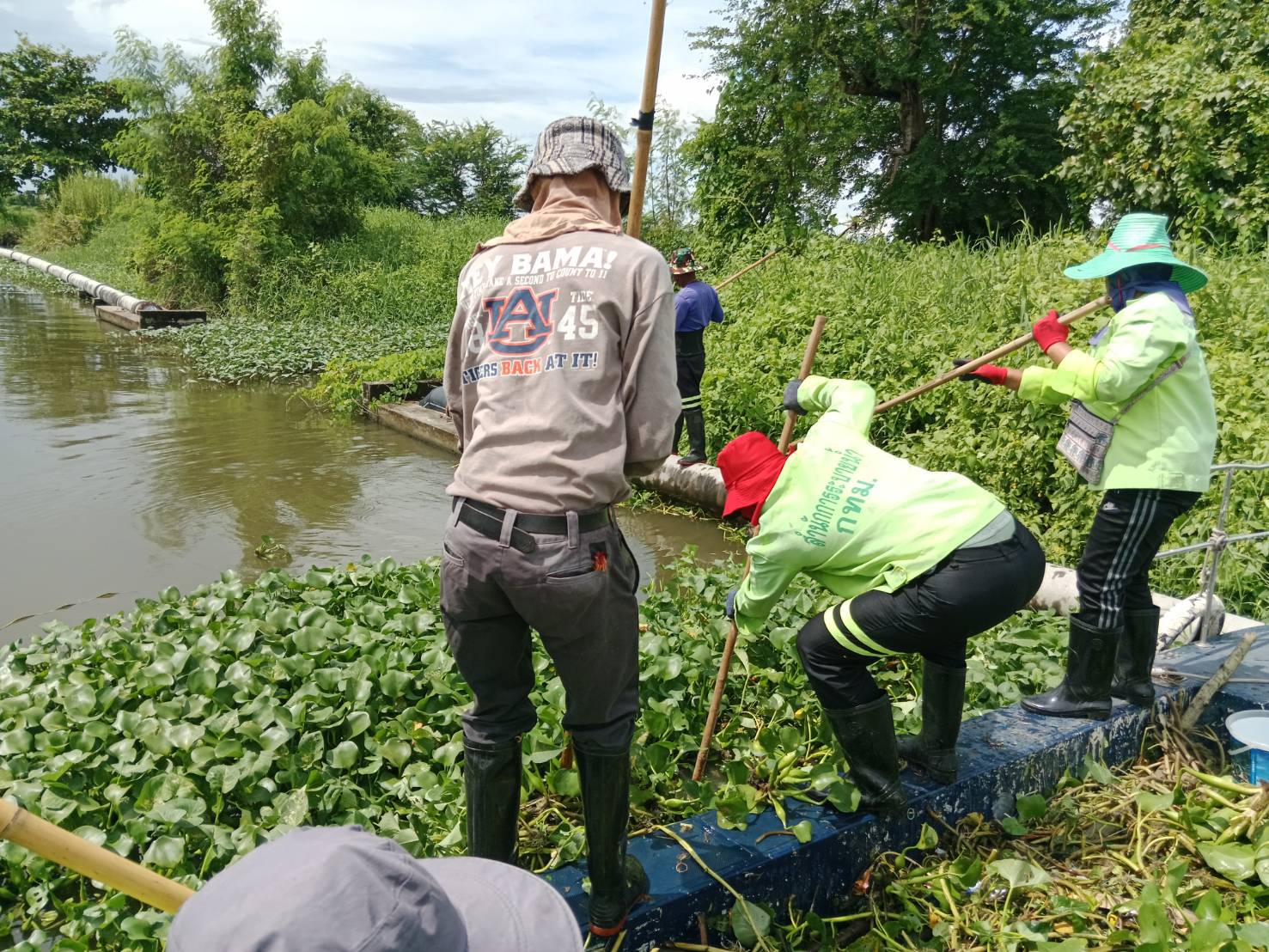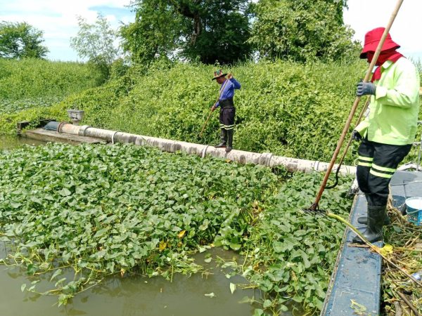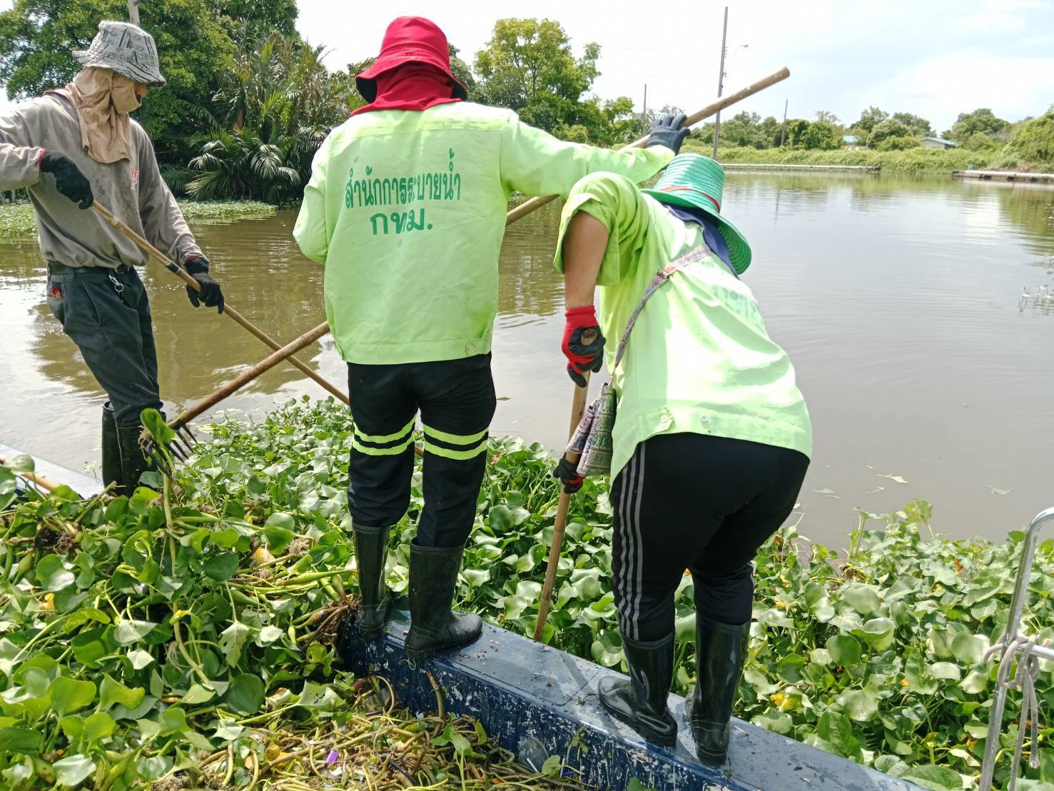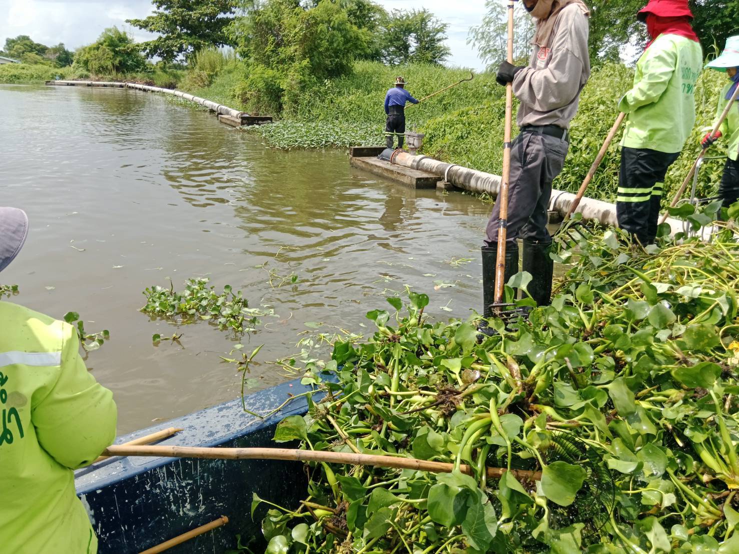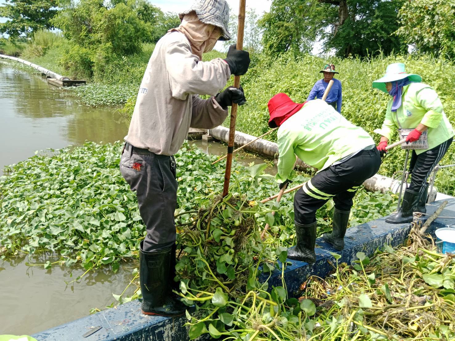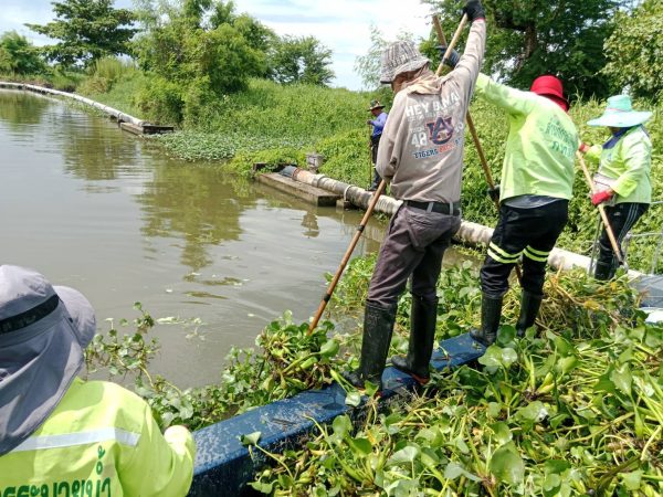 เจ้าหน้าที่ เก็บขยะและวัชพืช คลองหัวกระบือ ช่วงตัดคลองขุนราช พื้นที่เขตบางขุนเทียน