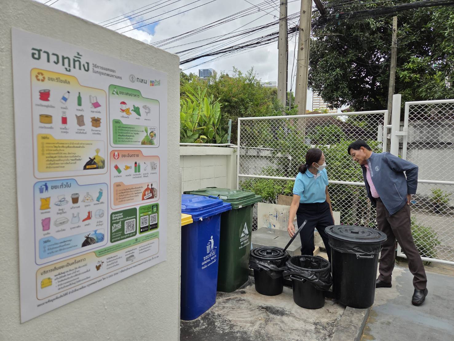 เยี่ยมชมต้นแบบการคัดแยกขยะ อาคารชุดพักอาศัยพาร์คพาวิลเลี่ยน ปากซอยอารีย์ 5 เหนือ พื้นที่ 9,913 ตารางเมตร อาคารความสูง 16 ชั้น จำนวน 75 ห้อง ผู้พักอาศัย 136 คน วิธีการคัดแยกขยะ โดยจำแนกตามประเภทของขยะ ดังนี้ 1.ขยะอินทรีย์ ประชาสัมพันธ์ให้ผู้พักอาศัยคัดแยกขยะเศษอาหาร แม่บ้านจะจัดเก็บรวบรวมขยะเศษอาหารมาไว้ที่บริเวณชั้น 1 เขตฯ จัดเก็บ 2.ขยะรีไซเคิล ประชาสัมพันธ์ให้ผู้พักอาศัยคัดแยกขยะรีไซเคิล แม่บ้านจะจัดเก็บรวบรวมขยะรีไซเคิล เมื่อได้ปริมาณมากพอจะนำไปจำหน่าย 3.ขยะทั่วไป ประชาสัมพันธ์ให้ผู้พักอาศัยคัดแยกขยะก่อนทิ้ง เพื่อเป็นการลดปริมาณขยะ เขตฯ จัดเก็บ 4.ขยะอันตราย มีพื้นที่สำหรับจัดเก็บขยะอันตรายโดยเฉพาะ ประสานเขตฯ จัดเก็บ สำหรับปริมาณขยะก่อนคัดแยกและหลังคัดแยก ดังนี้ ขยะทั่วไปก่อนคัดแยก 157 กิโลกรัม/วัน หลังคัดแยก 80 กิโลกรัม/วัน ขยะรีไซเคิลหลังคัดแยก 17 กิโลกรัม/วัน ขยะอินทรีย์หลังคัดแยก 60 กิโลกรัม/วัน ขยะอันตรายหลังคัดแยก 10 กิโลกรัม/ครั้ง ทั้งนี้ รองผู้ว่าราชการกรุงเทพมหานคร ได้ให้คำแนะนำในการคัดแยกขยะประเภทต่าง ๆ เพื่อให้จัดเก็บมีประสิทธิภาพมากยิ่งขึ้น ซึ่งปริมาณขยะที่คัดแยกจะมีผลต่ออัตราค่าธรรมเนียมในการจัดการมูลฝอยฉบับใหม่ พร้อมทั้งมอบหมายให้เขตฯ ลงพื้นที่ตามชุมชนต่าง ๆ อย่างต่อเนื่อง เพื่อประชาสัมพันธ์เชิญชวนประชาชนลงทะเบียนผ่านแอปพลิเคชัน BKK WASTE PAY เข้าร่วมโครงการ “บ้านนี้ไม่เทรวม : แยกขยะลดค่าธรรมเนียม” โดยจะมีผลบังคับใช้อัตราค่าธรรมเนียมใหม่ในเดือนตุลาคม 2568 นี้