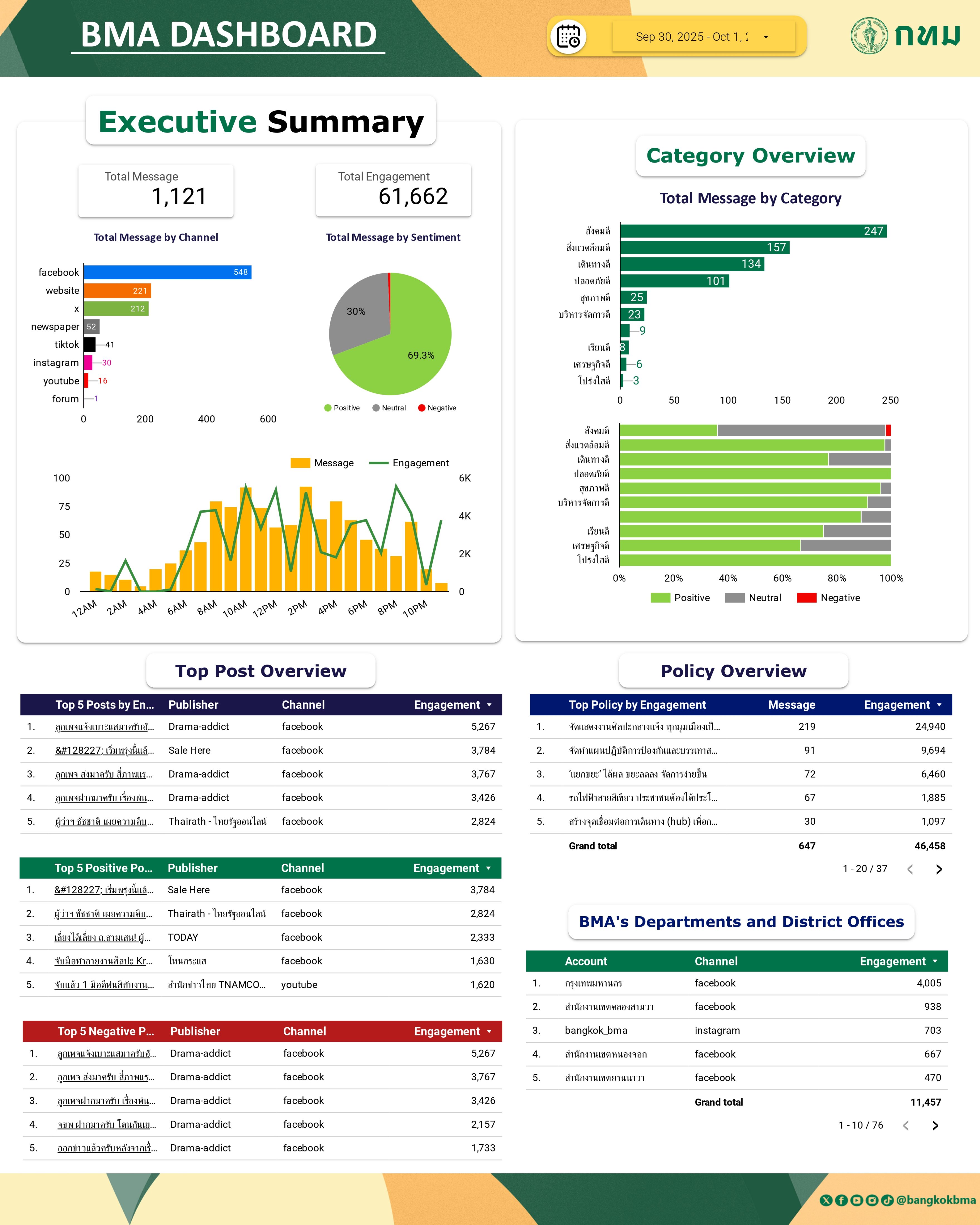 ภาพรวมการกล่าวถึงกรุงเทพมหานครในสื่อออนไลน์ วันที่ 1 ต.ค. 68