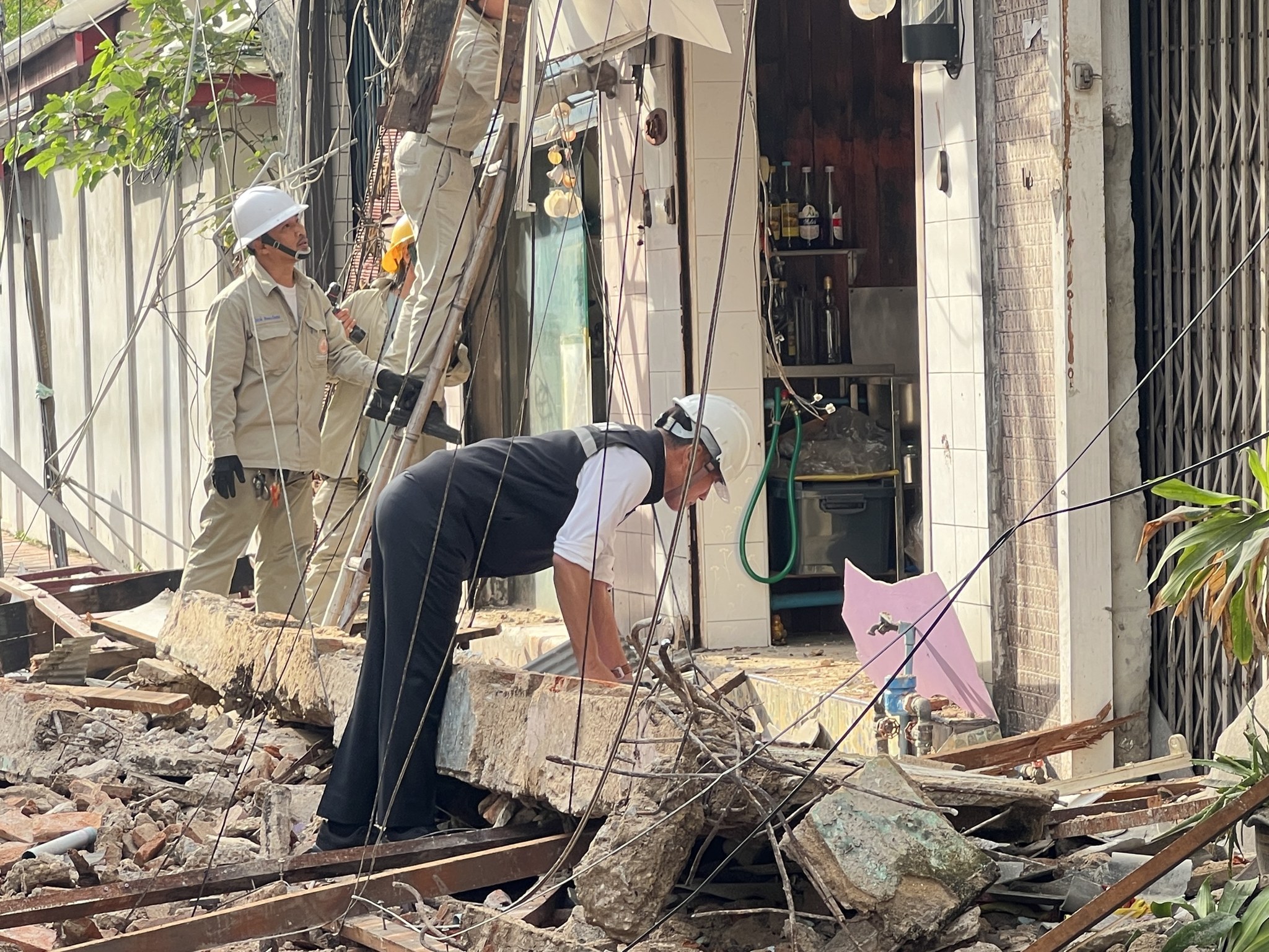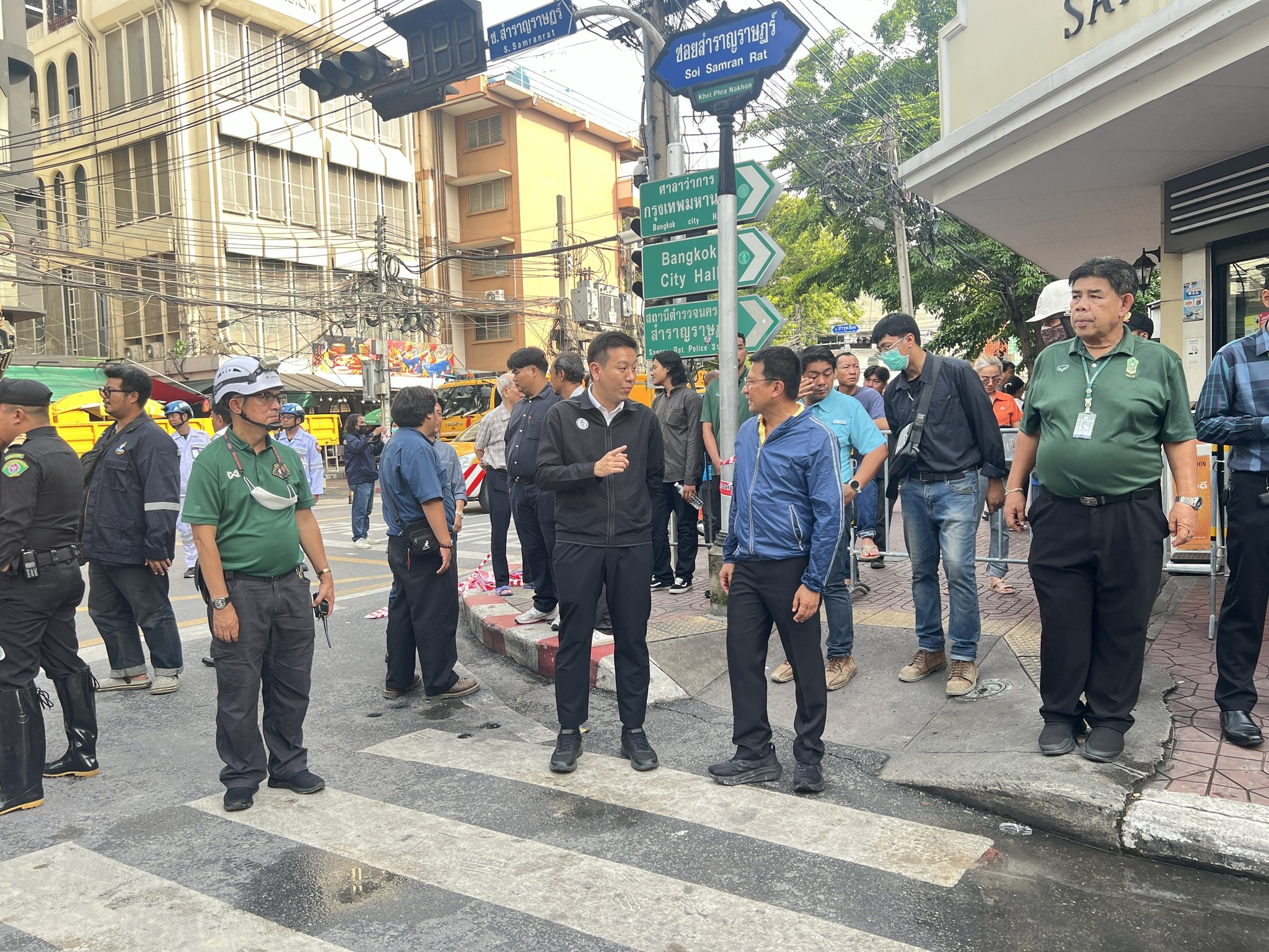 (1 ต.ค. 68) เวลา 15.50 น. นายชัชชาติ สิทธิพันธุ์ ผู้ว่าราชการกรุงเทพมหานคร พร้อมด้วยนายวิศณุ ทรัพย์สมพล และนายศานนท์ หวังสร้างบุญ รองผู้ว่าราชการกรุงเทพมหานคร ลงพื้นที่ตรวจสอบเหตุกันสาดทรุดตัว ปากซอยสำราญราษฎร์ เขตพระนคร ที่เกิดเหตุเวลาประมาณ 13.40 น. เบื้องต้นได้ปิดการจราจรภายในซอยดังกล่าว และกันประชาชนออกจากพื้นที่เกิดเหตุ เพื่อความปลอดภัย โดยมีนายโกศล สิงหนาท ผู้อำนวยการเขตพระนคร ร่วมกับ สถานีดับเพลิงและกู้ภัยภูเขาทอง สำนักเทศกิจ สน.สำราญราษฎร์ และหน่วยงานที่เกี่ยวข้อง ลงพื้นที่ดำเนินการตัดกระแสไฟและช่วยเหลือประชาชน ที่ติดอยู่ภายในบ้านเรือน จำนวน 5 ราย เรียบร้อยแล้ว พร้อมประกาศปิดจราจรและขอให้ประชาชนโปรดหลีกเลี่ยงเส้นทางดังกล่าว